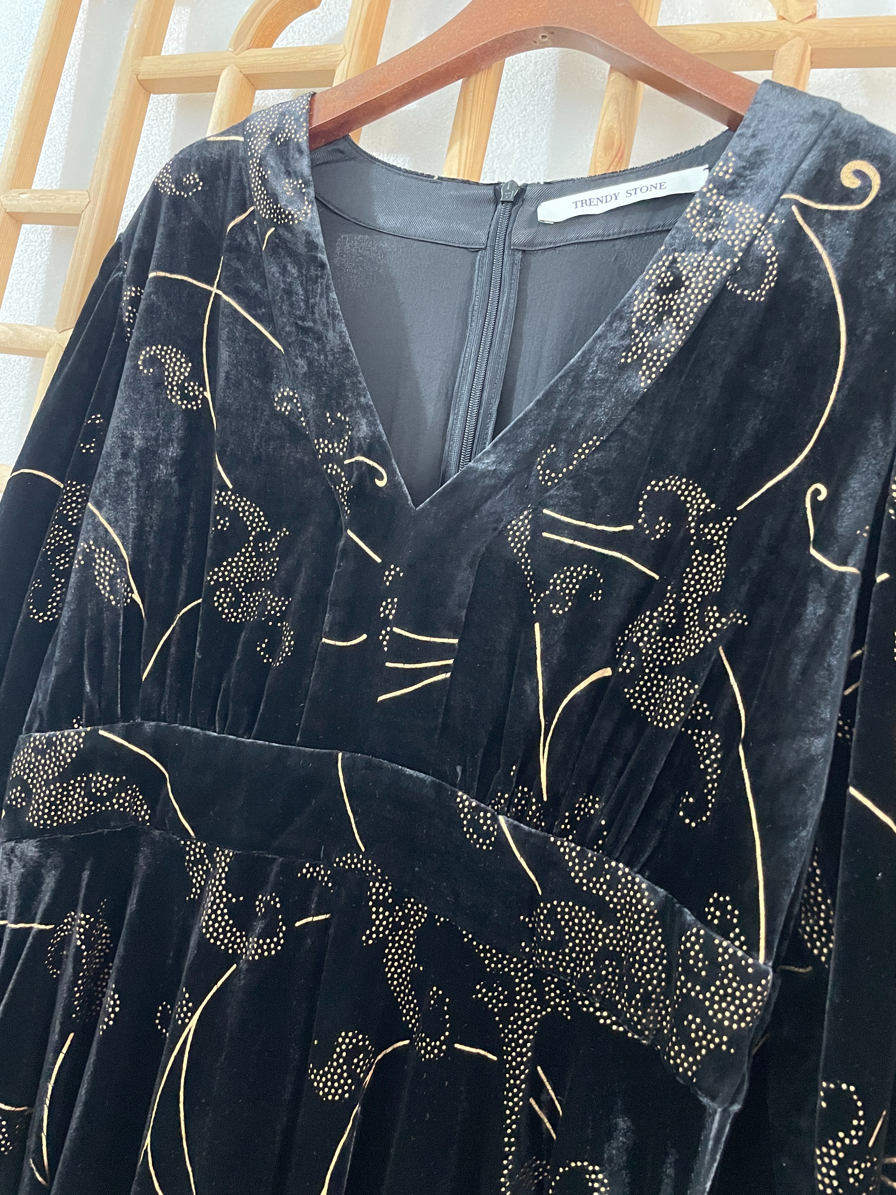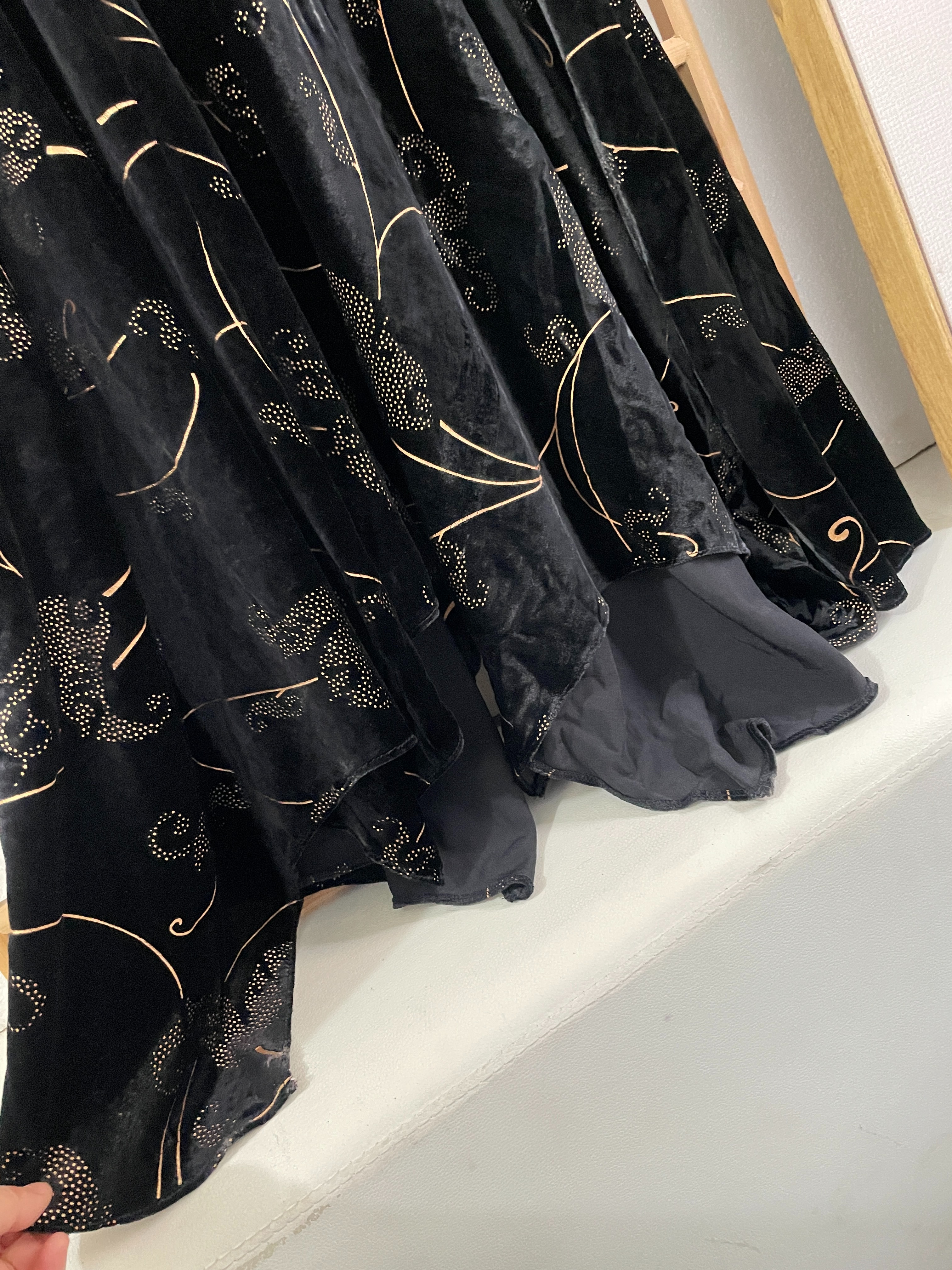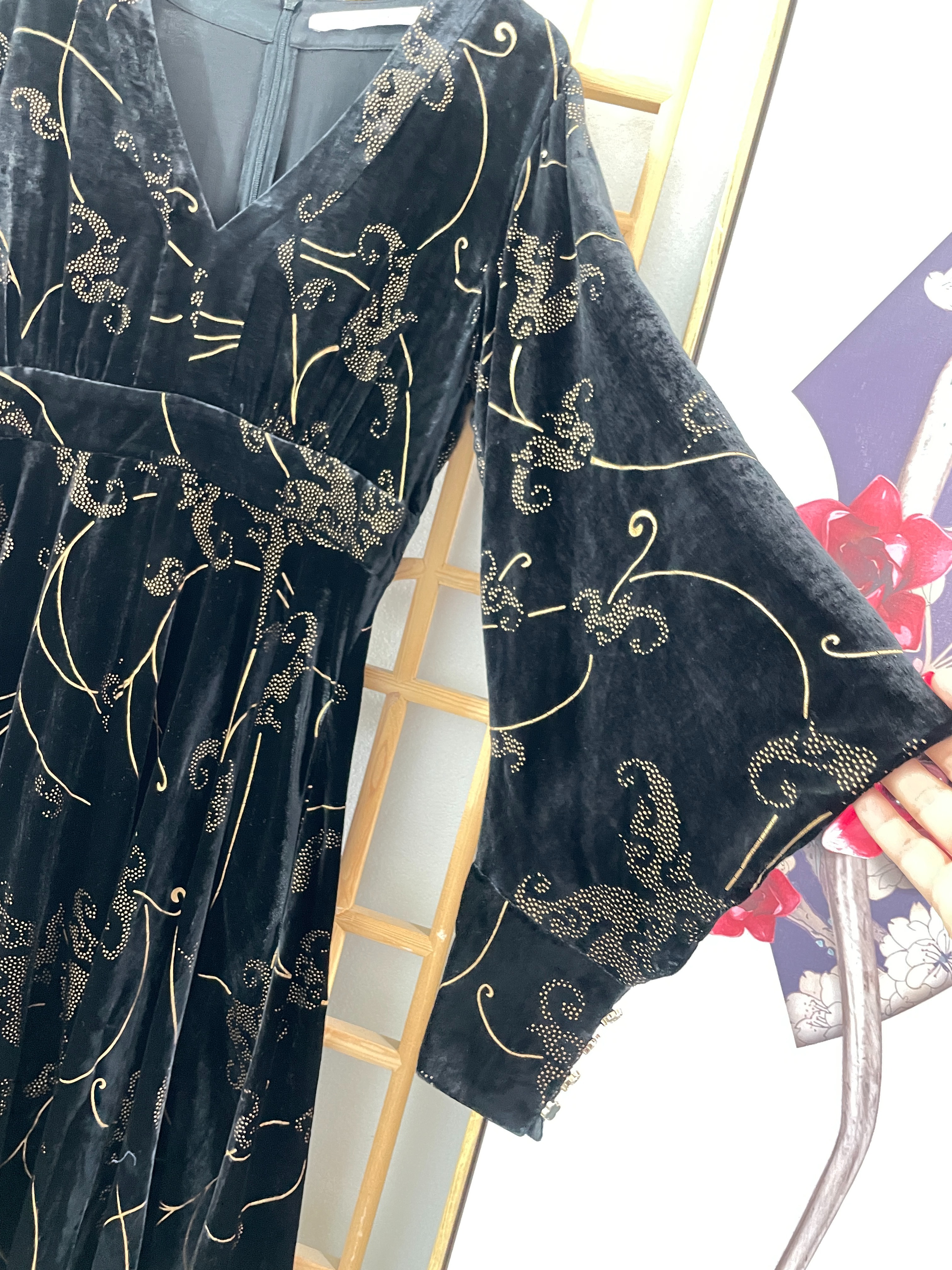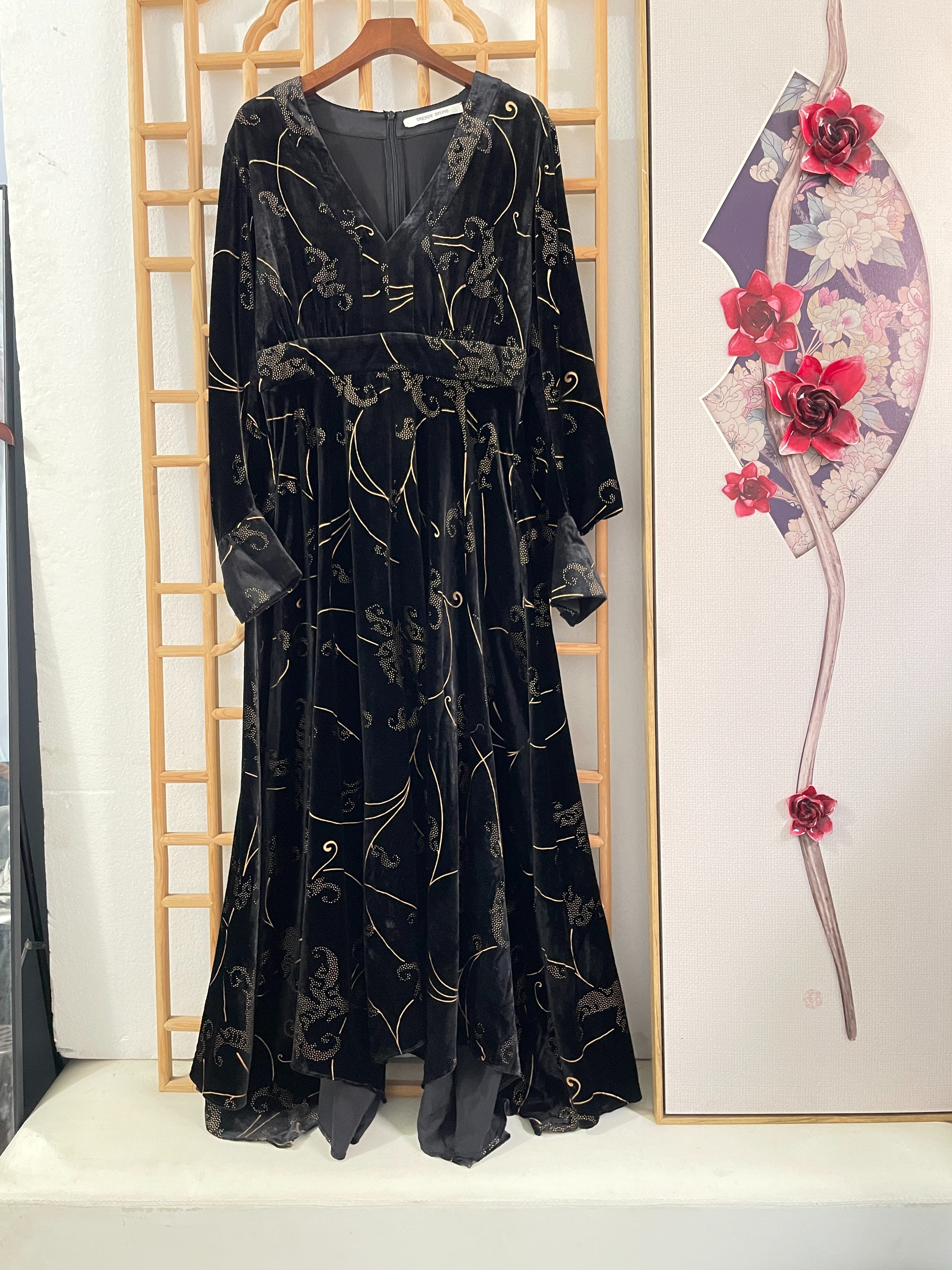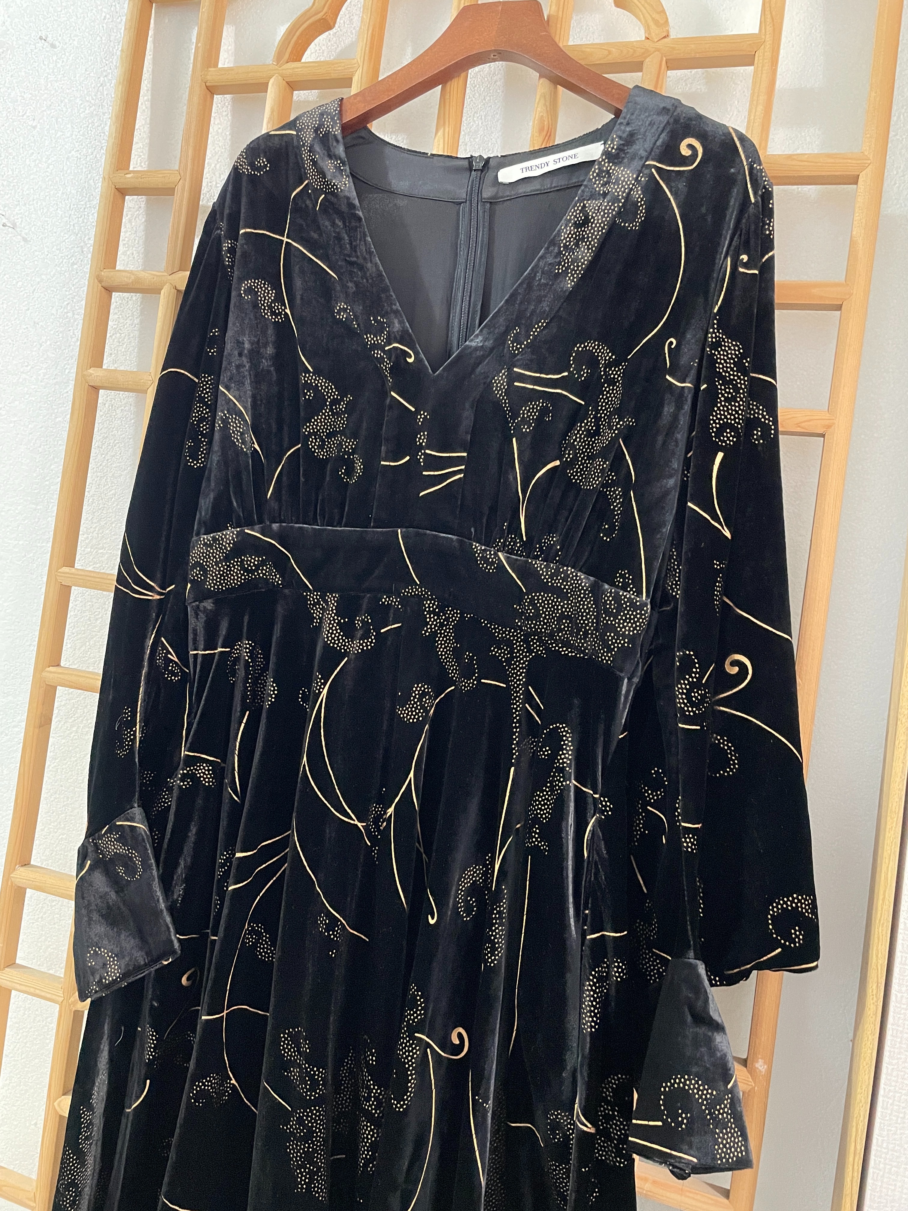 「断码清仓」超美下摆不规则烫金进口金丝绒裙秋冬连衣裙 L码 ZFYY284