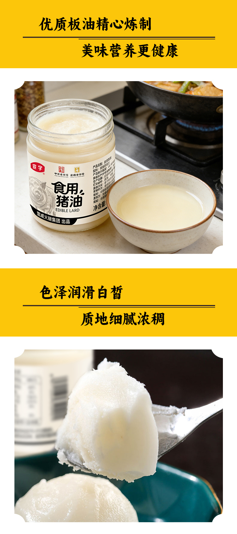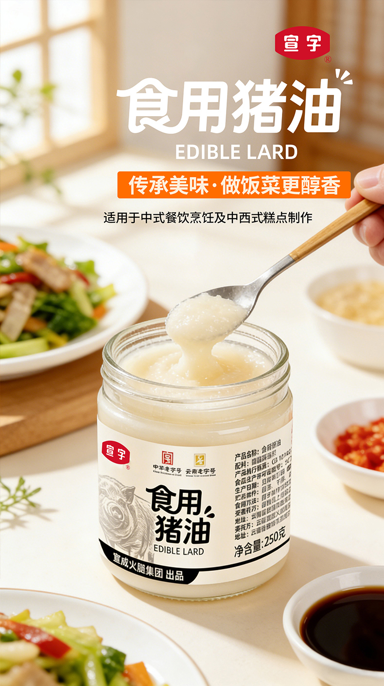 【配料干净】宣威火腿集团食用猪油250g/瓶炒菜拌面拌饭烘焙用油