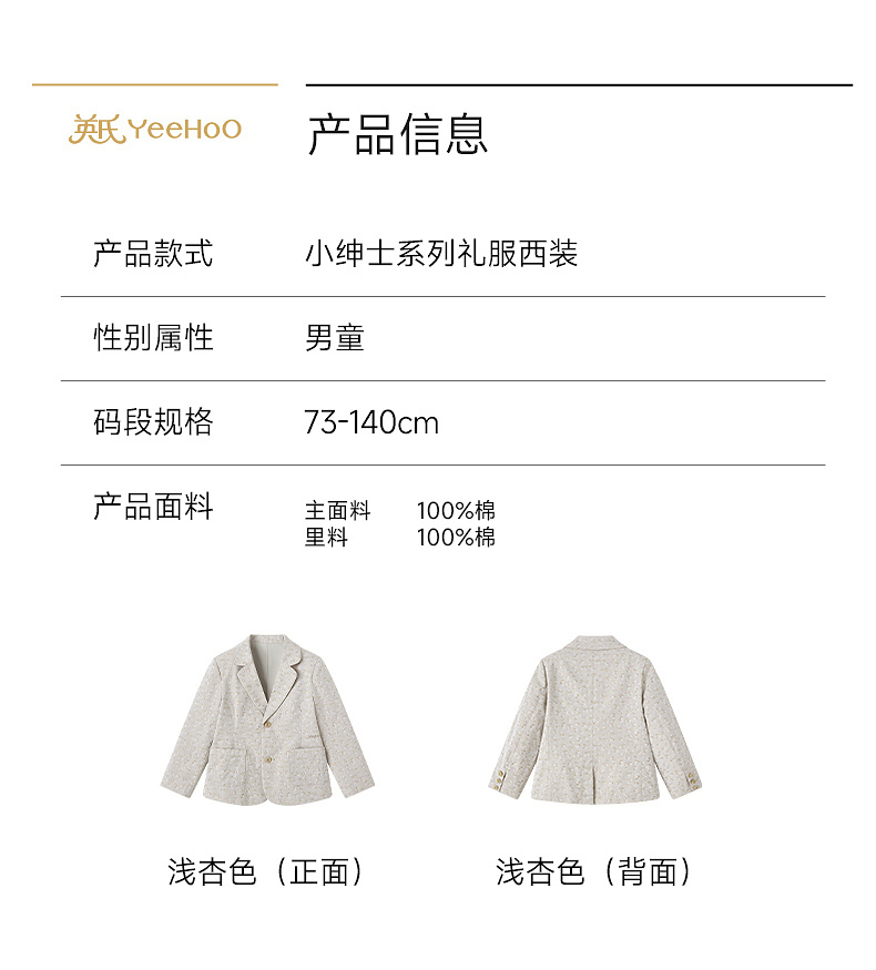 【高定系列】英氏儿童西装男童主持人礼服春秋纯棉西装帅气英伦