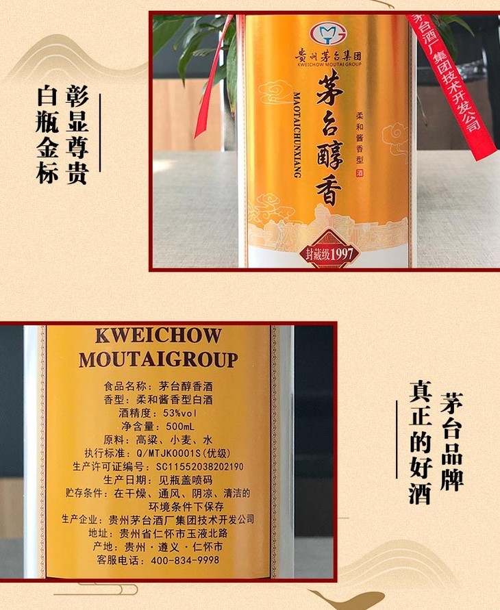 【推荐】茅台集团 醇香1997 53度柔和酱香 500ml*6瓶【整箱】