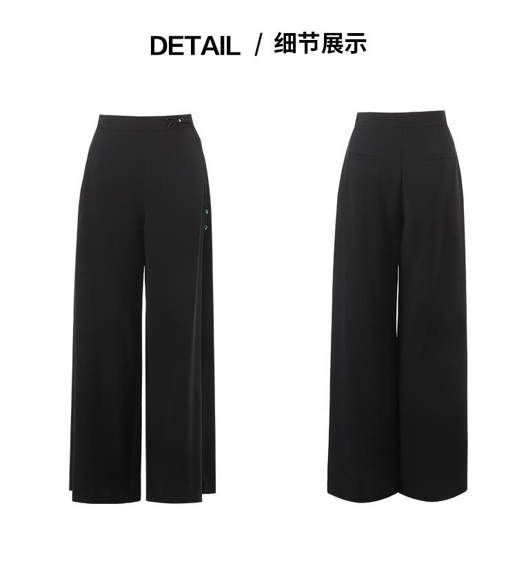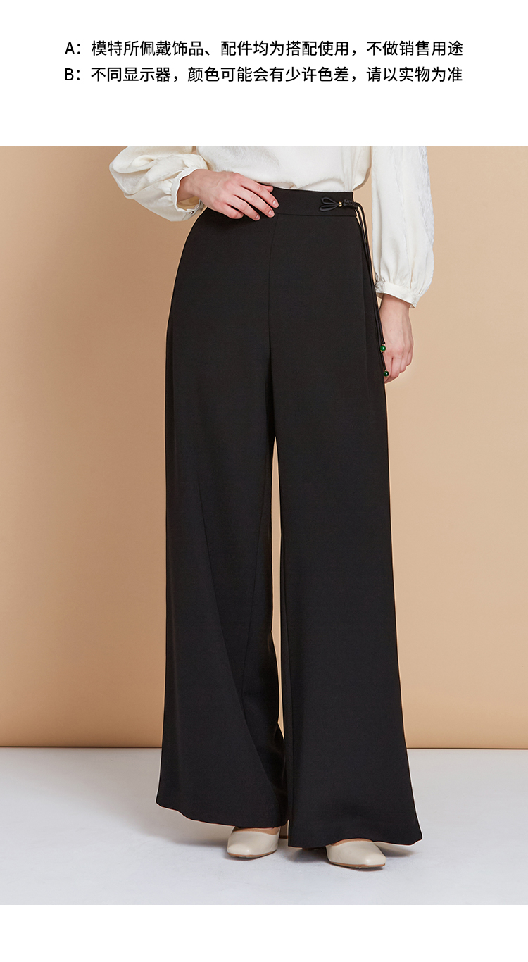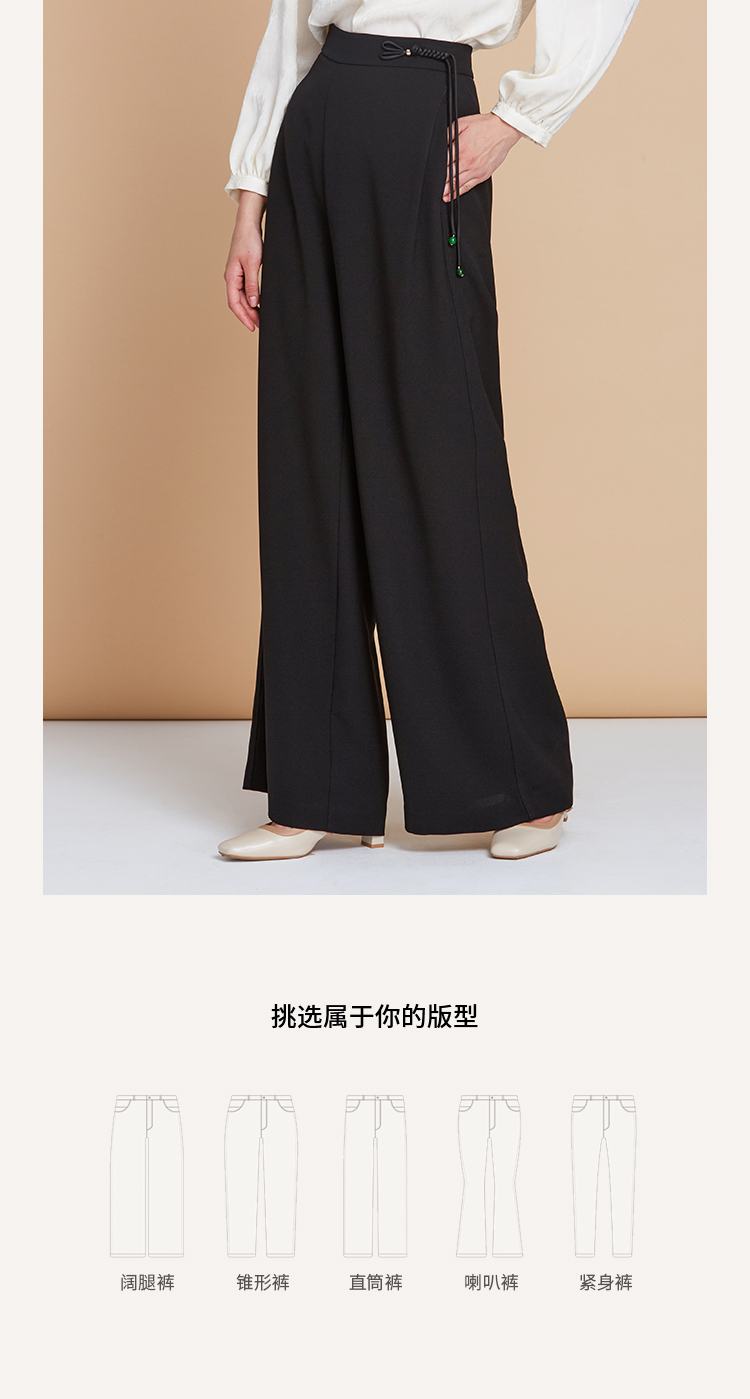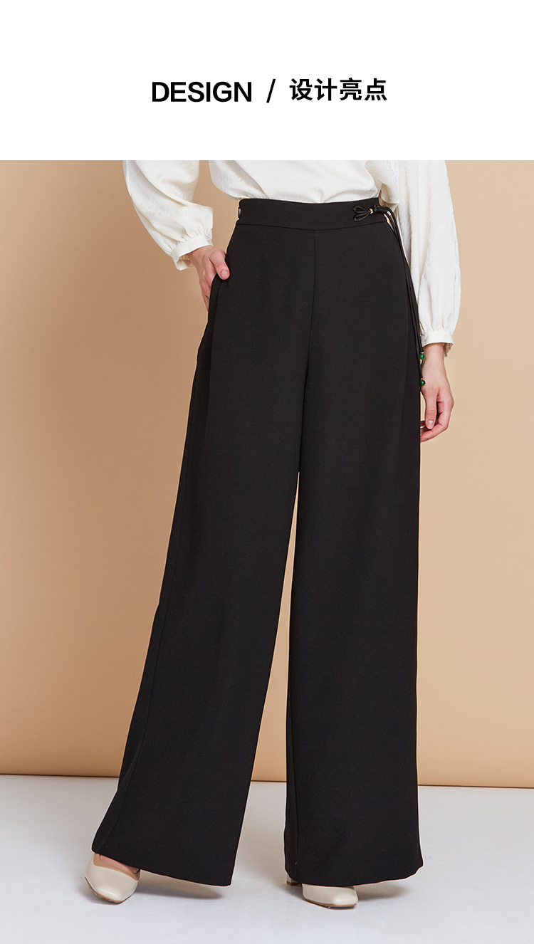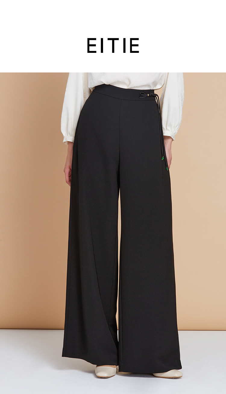 EITIE爱特爱中式盘扣高腰显瘦直筒阔腿垂坠休闲裤秋季新款C2505826