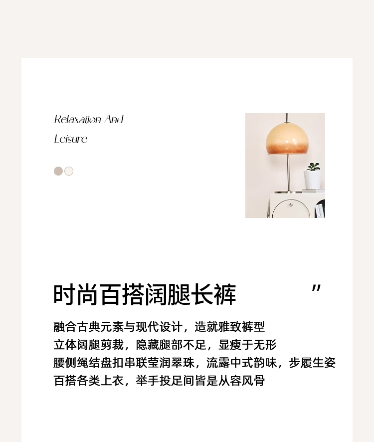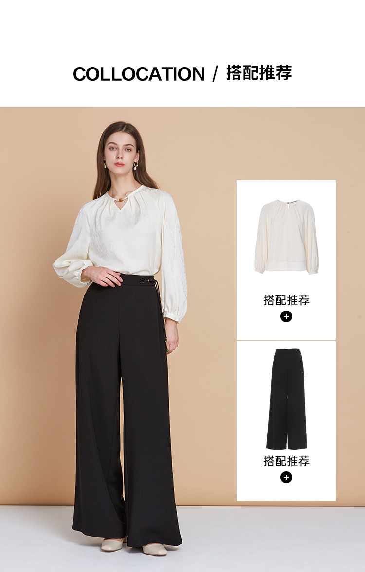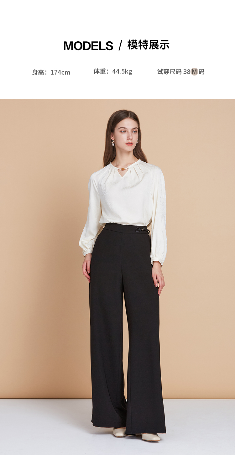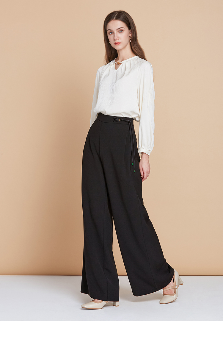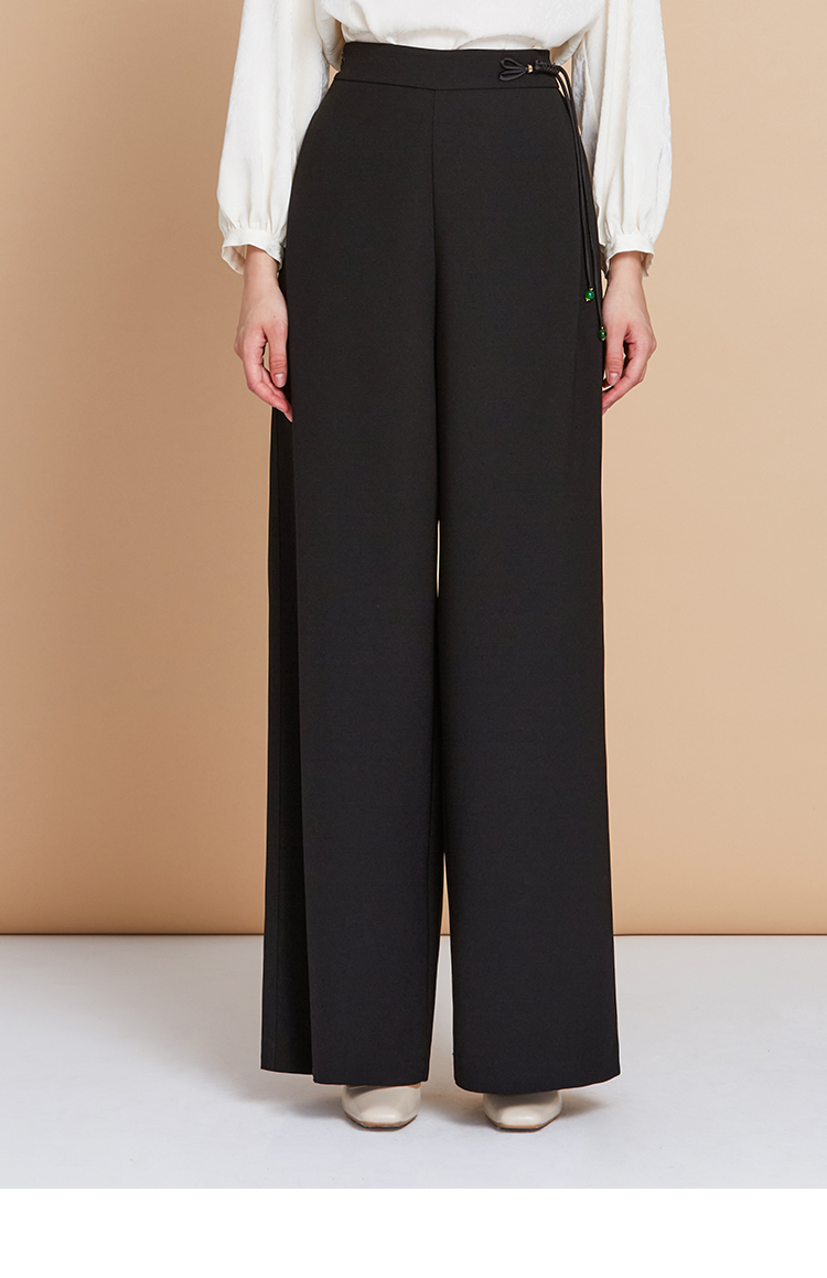EITIE爱特爱中式盘扣高腰显瘦直筒阔腿垂坠休闲裤秋季新款C2505826