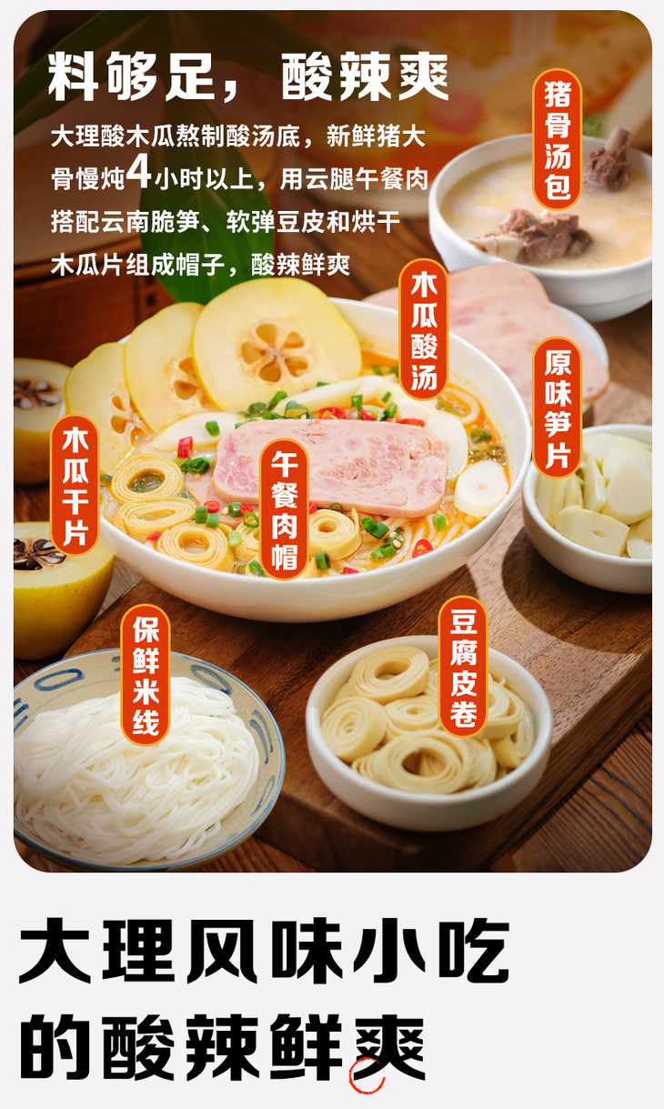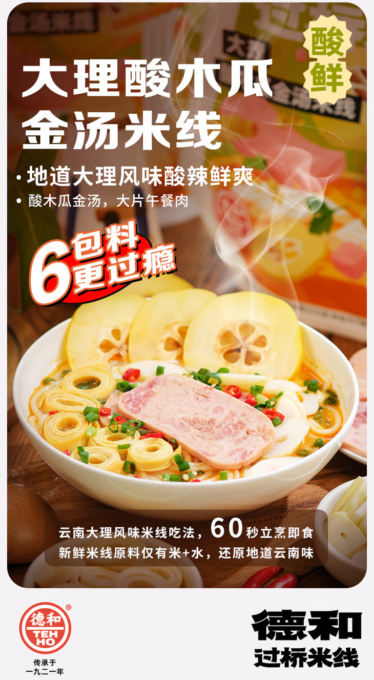 7种口味米线礼包 云南米线 昆明 大理 西双版纳 普洱 玉溪 蒙自 7种口味各1袋 德和云南特产过桥米线酸木瓜金汤米线保鲜粗米线多口味可选#米线