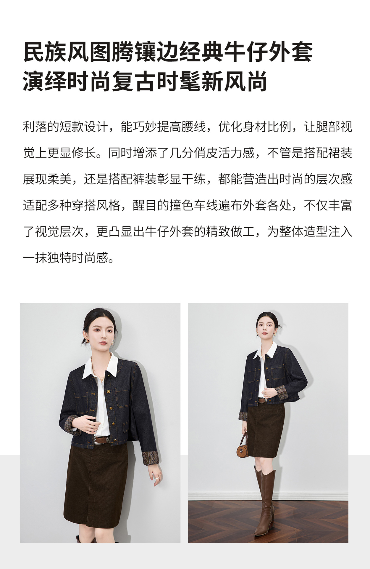 WL 2512709-复古拼接设计感牛仔外套短款民族风上衣 商品图2