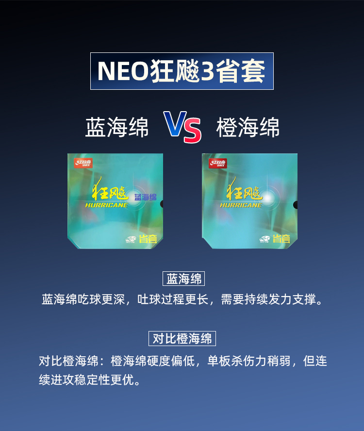 DHS红双喜蓝省蓝海绵尼傲NEO省套狂飚3尼奥省狂3粘性反胶乒乓球套胶