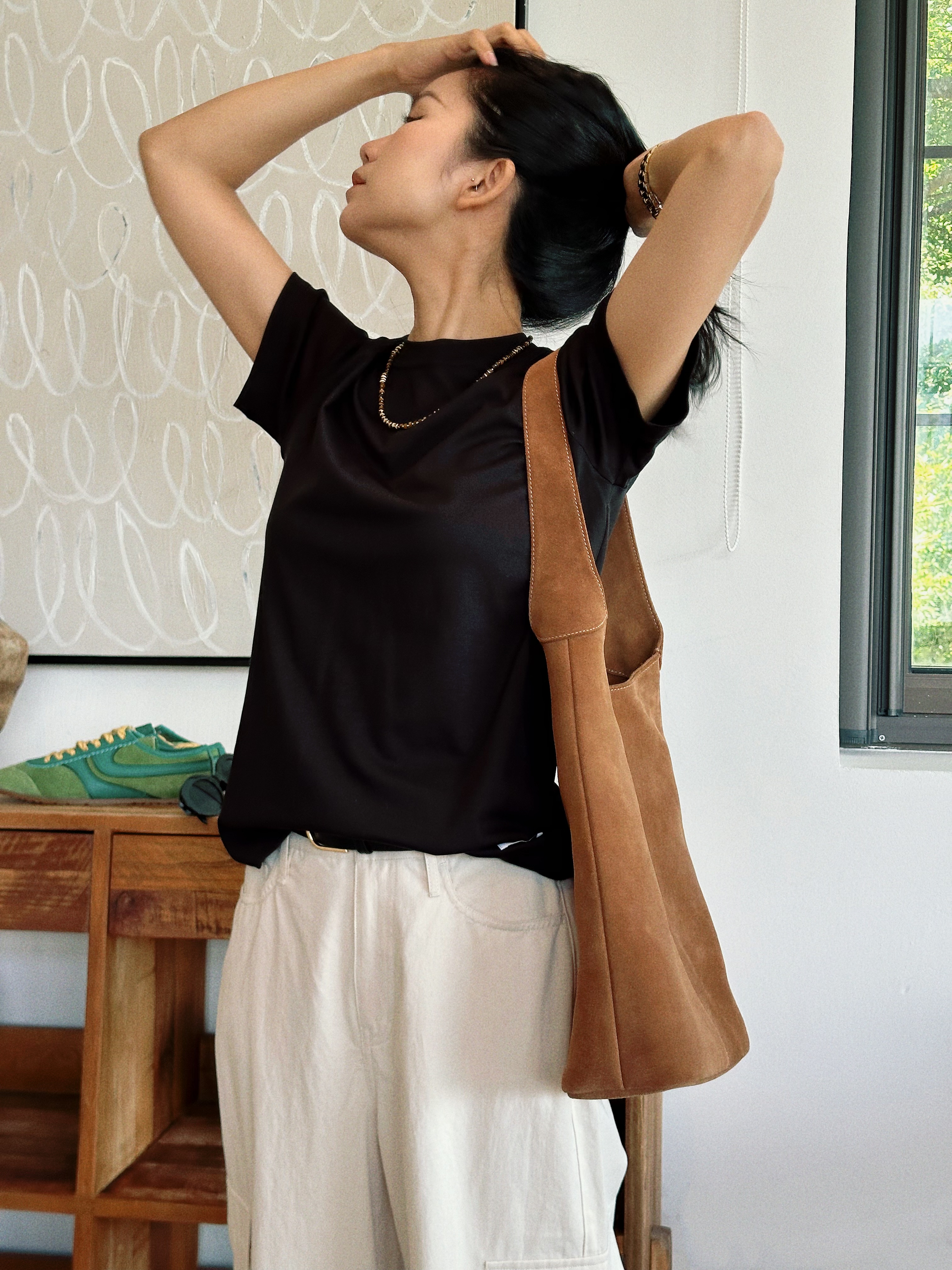 周末福利🧧【顺丰包邮】80649高货丝柔棉 (蚕丝跟棉的结合)基础款百搭宽松短袖T恤 100%棉112