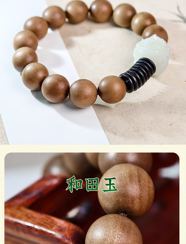 易祈吉祥五行补木系列老山檀香手链和田玉饰品送礼手串礼物