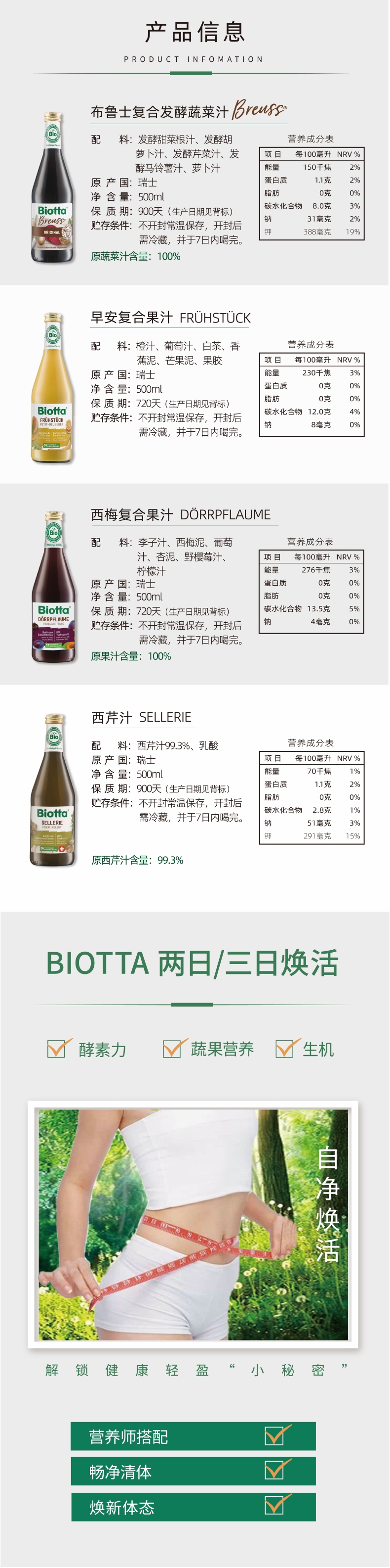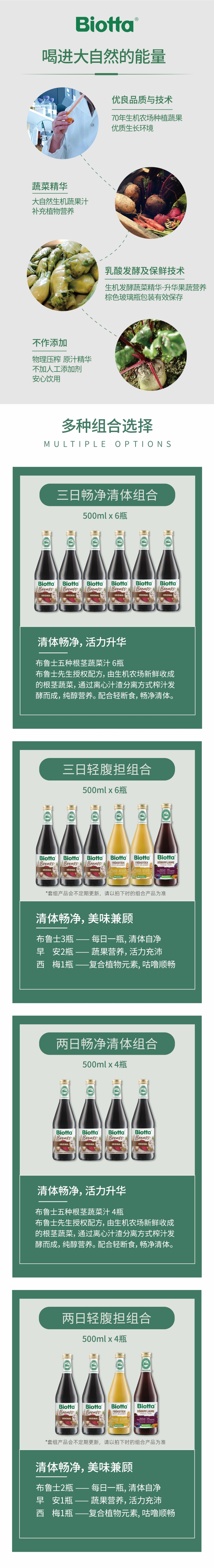 Biotta 两日/三日轻断食蔬果汁 | 500ml*4/6瓶套组 布鲁士配方 瑞士进口 自然农法种植 纸托环保包装