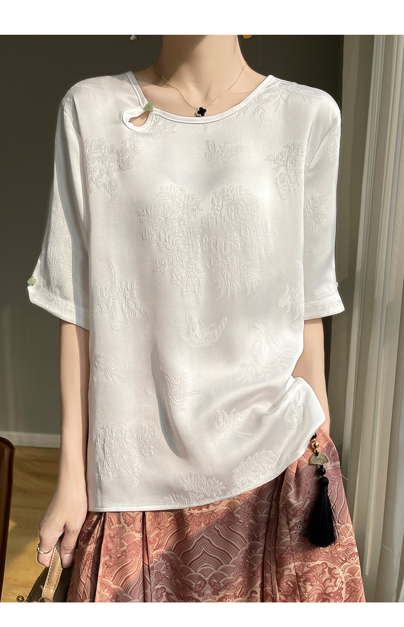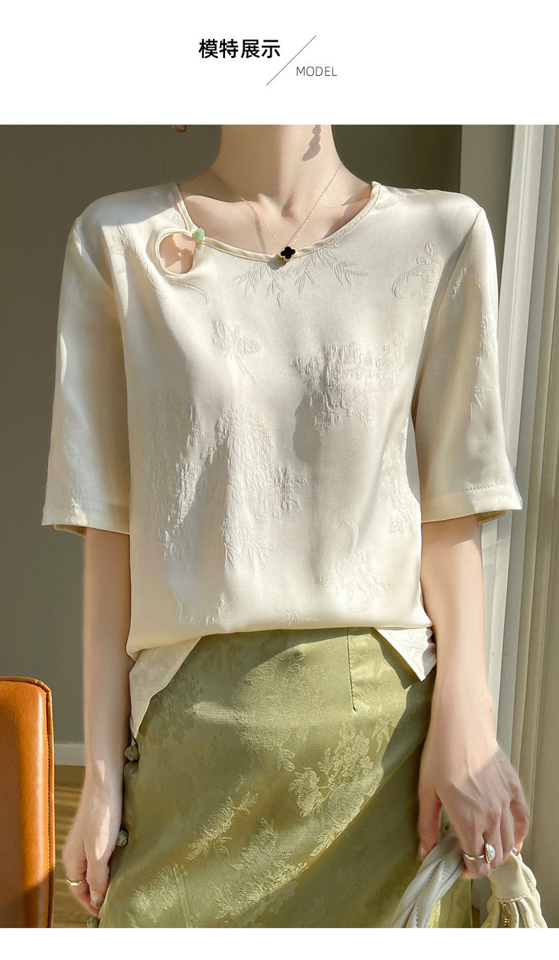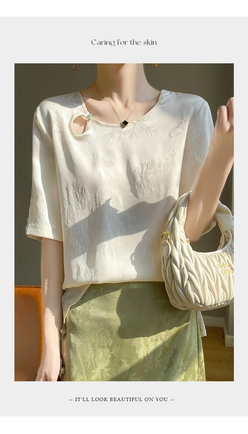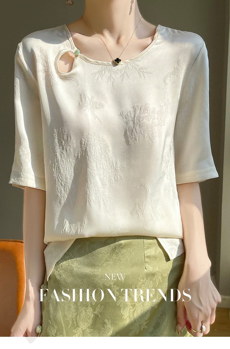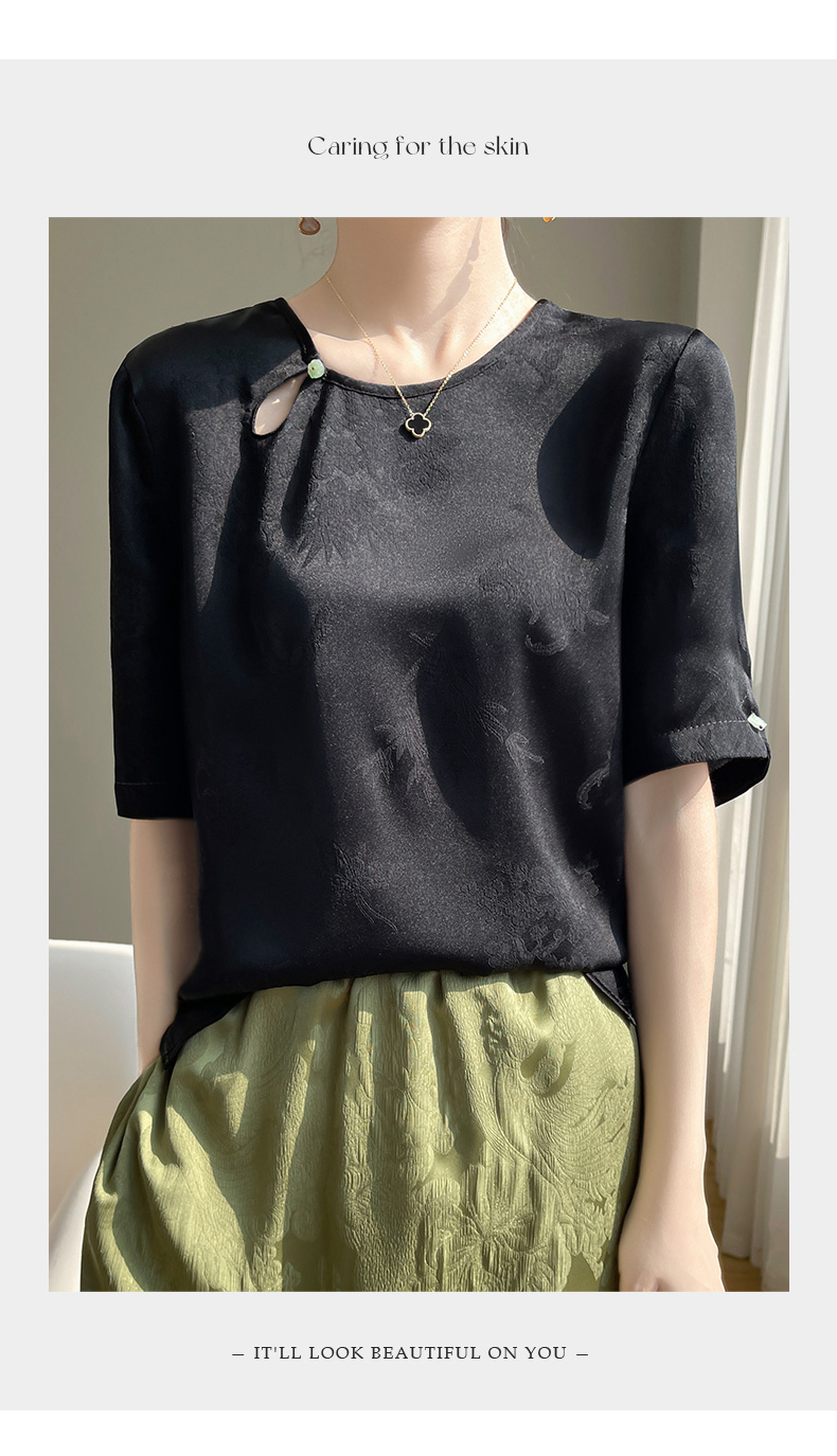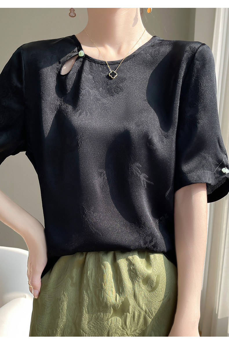 【新中式,百搭国风】【夏季必备】SIIJJEYY枝辑女士仿真丝丝滑缎面圆领半袖衬衫(3色可选)