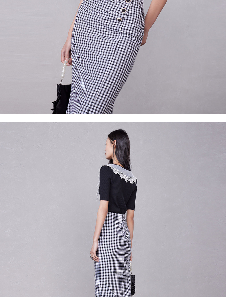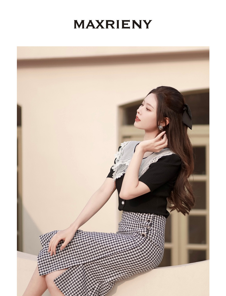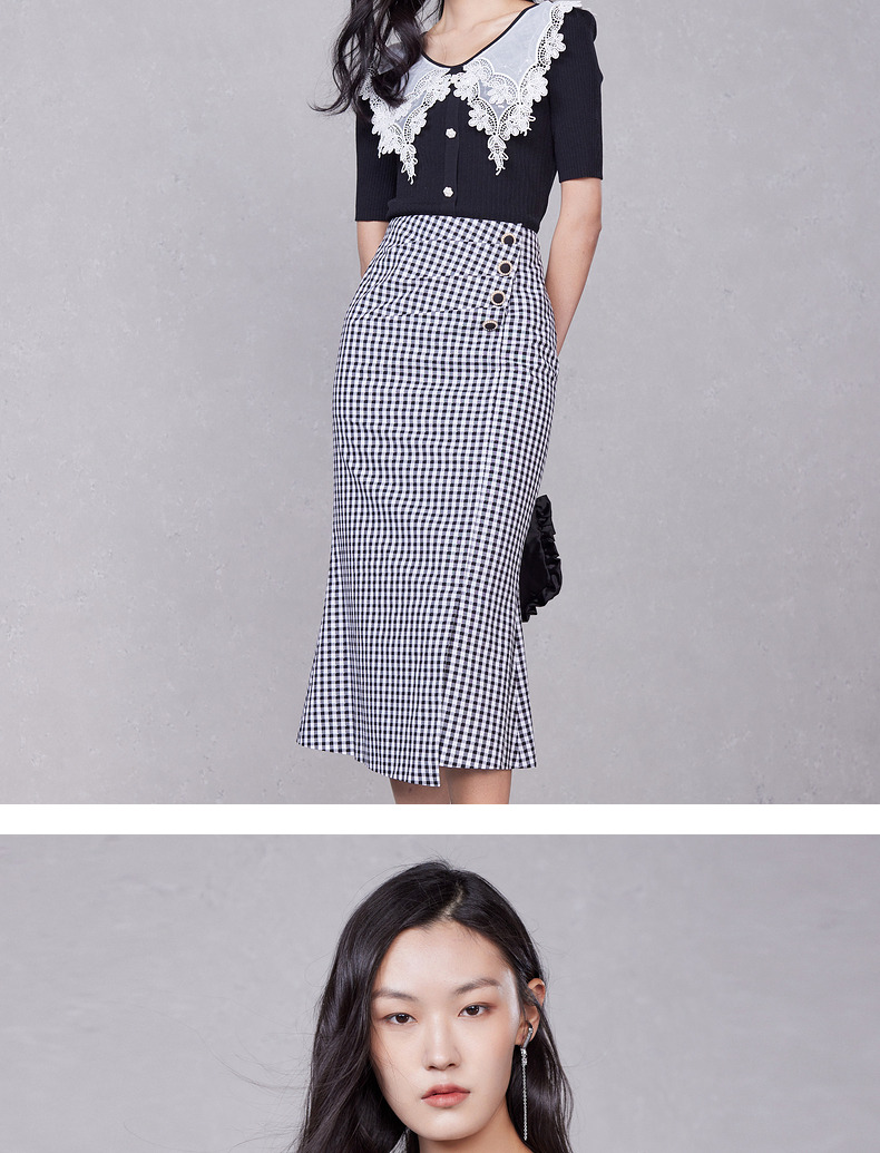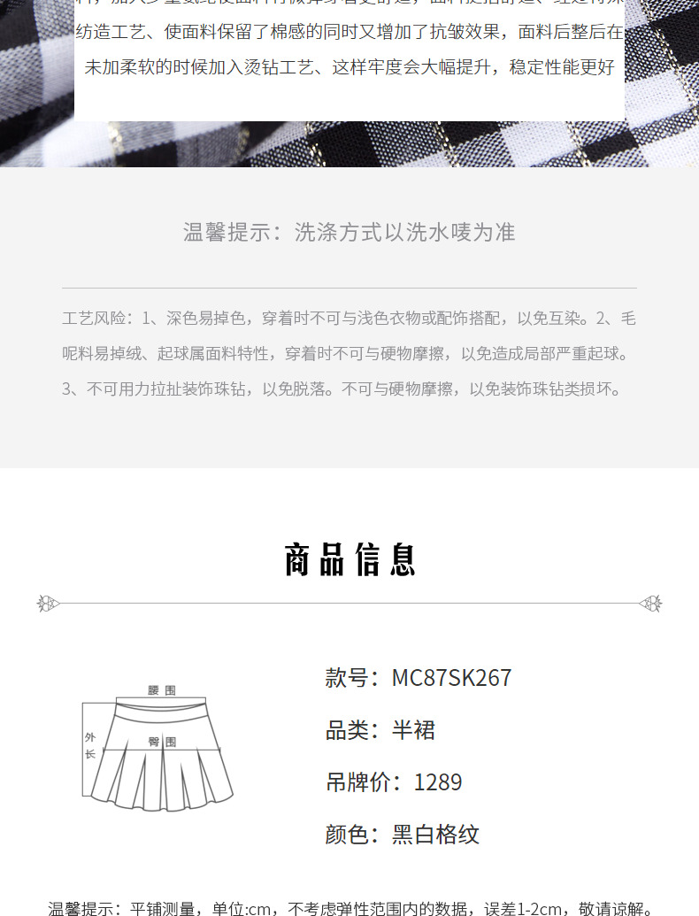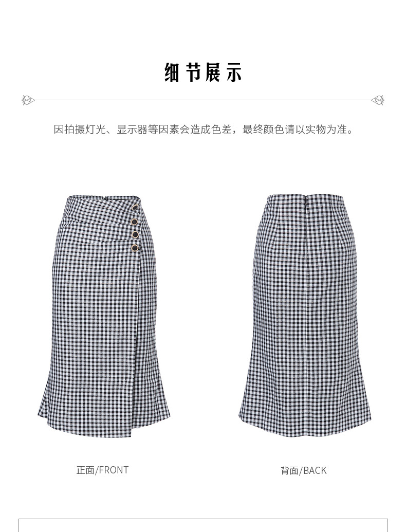 MAXRIENY格纹抽褶半身裙女春款复古通勤包臀短裙(货号:MC87SK267)