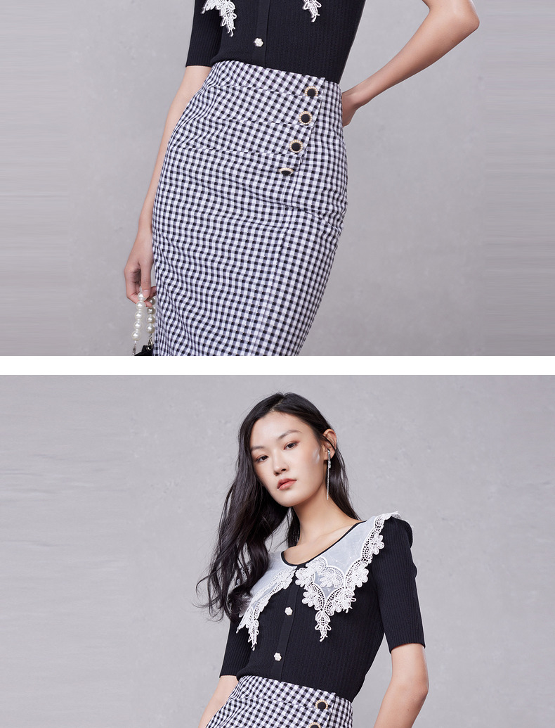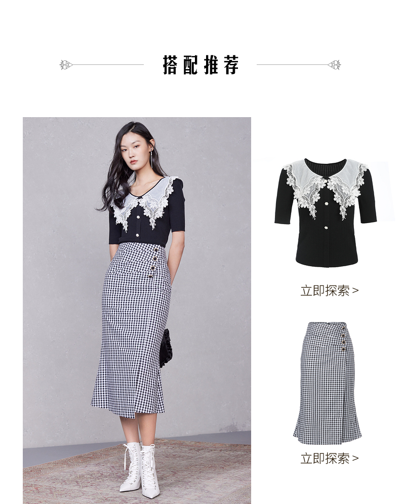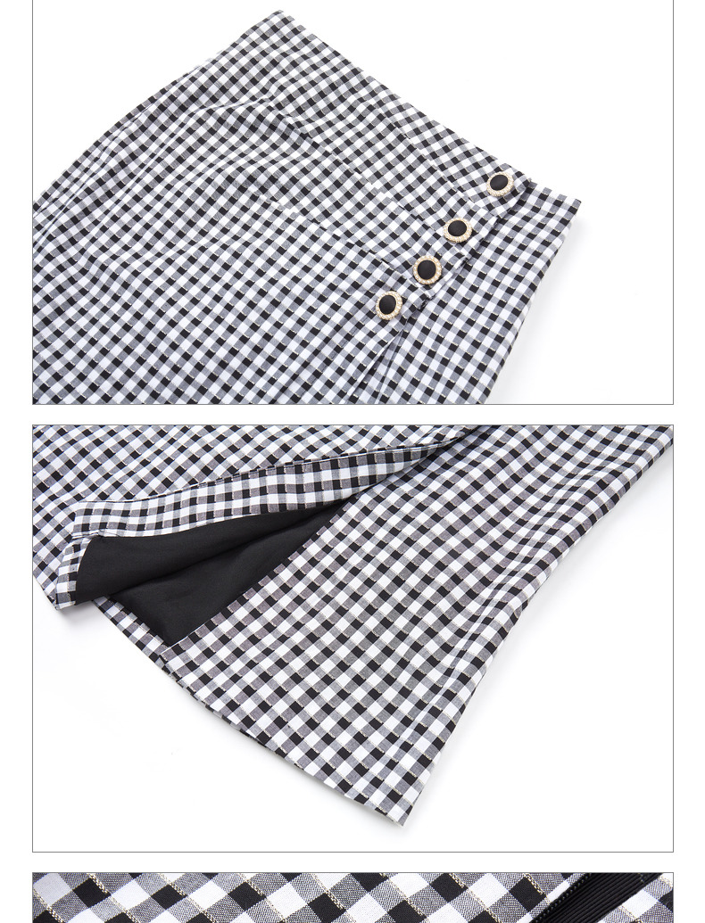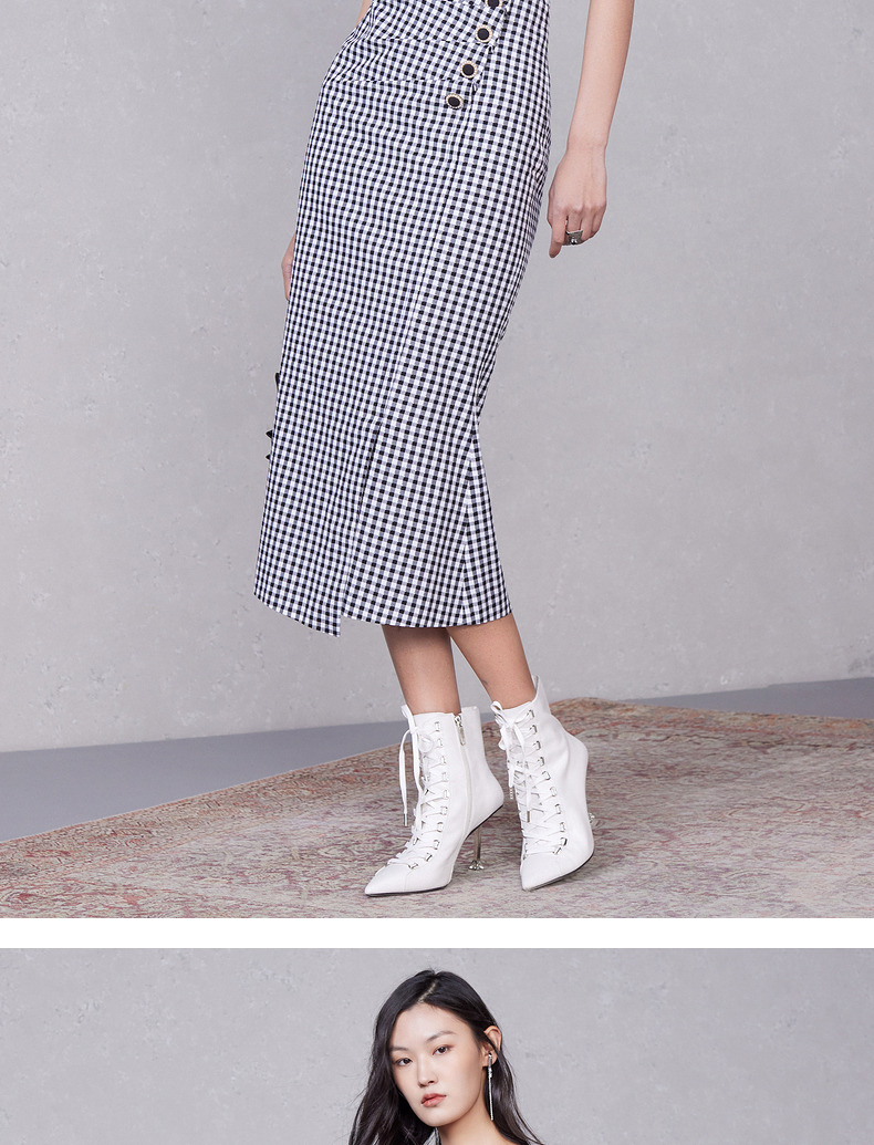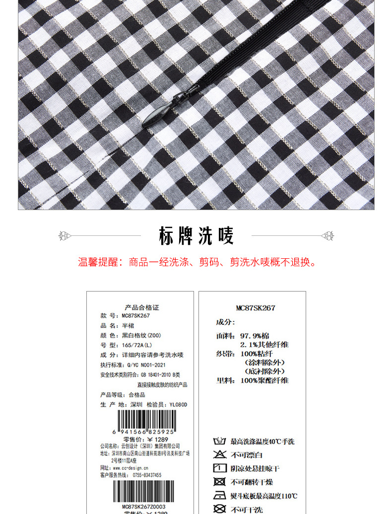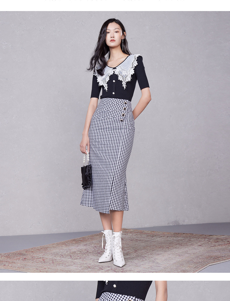 MAXRIENY格纹抽褶半身裙女春款复古通勤包臀短裙(货号:MC87SK267)