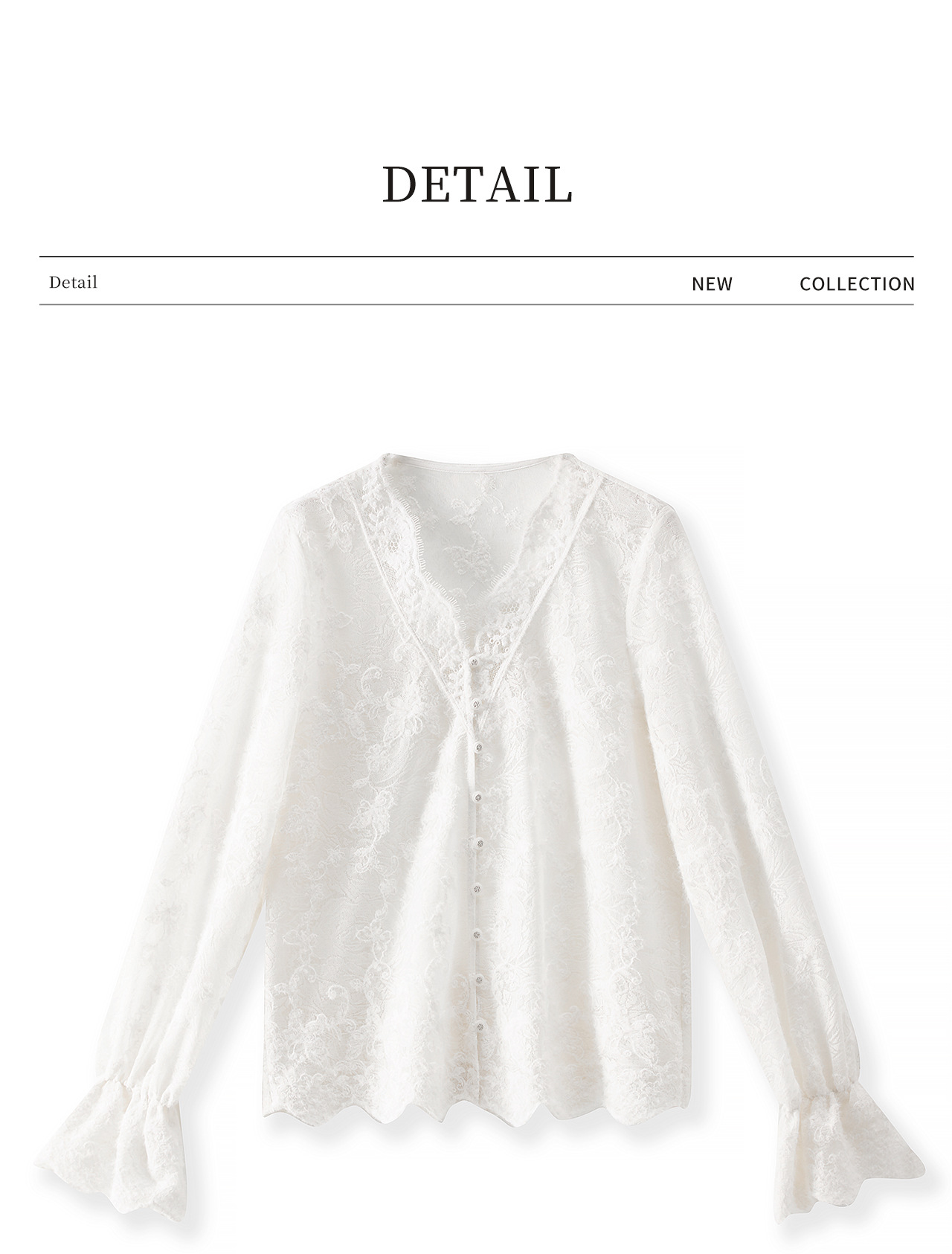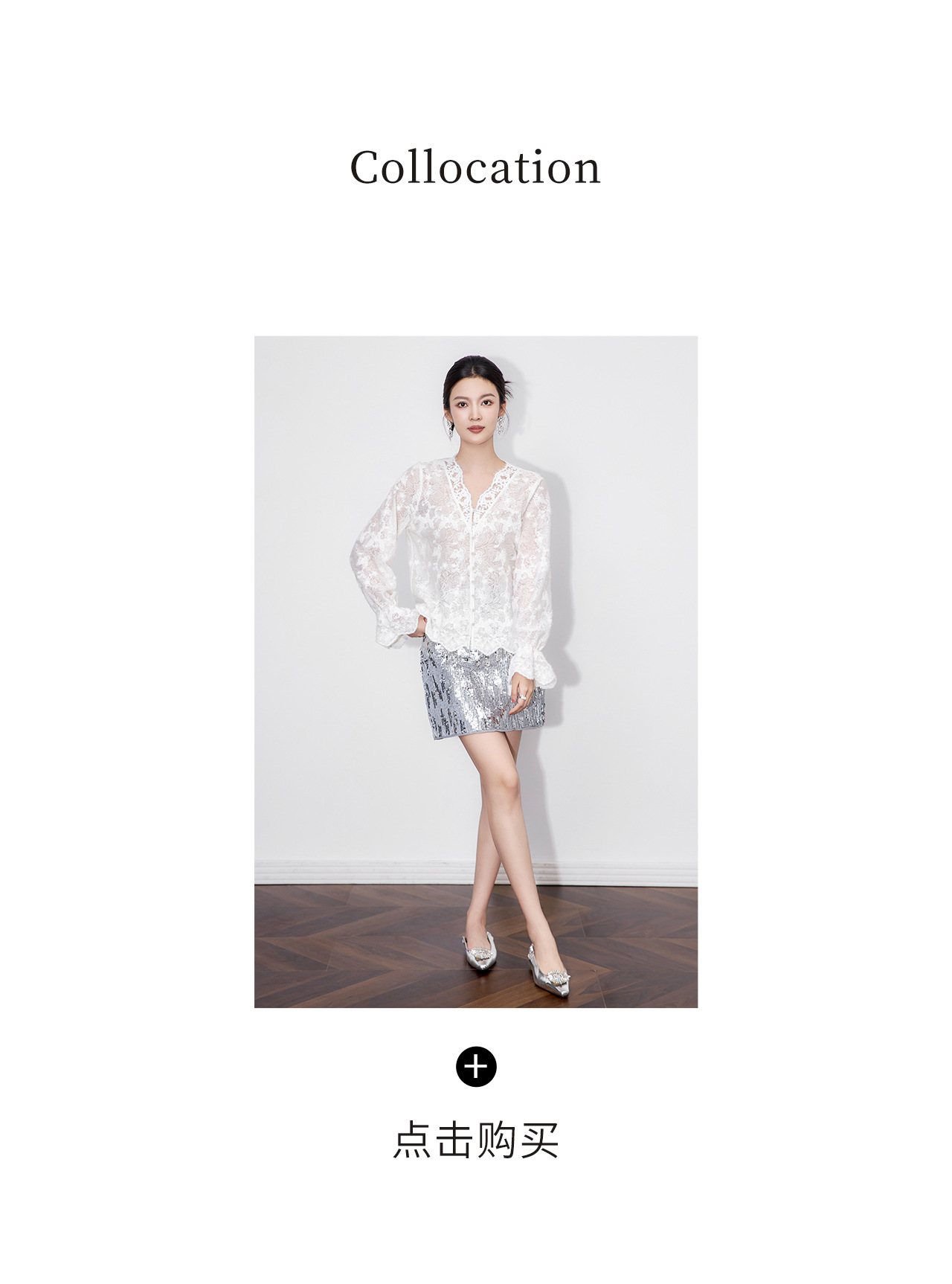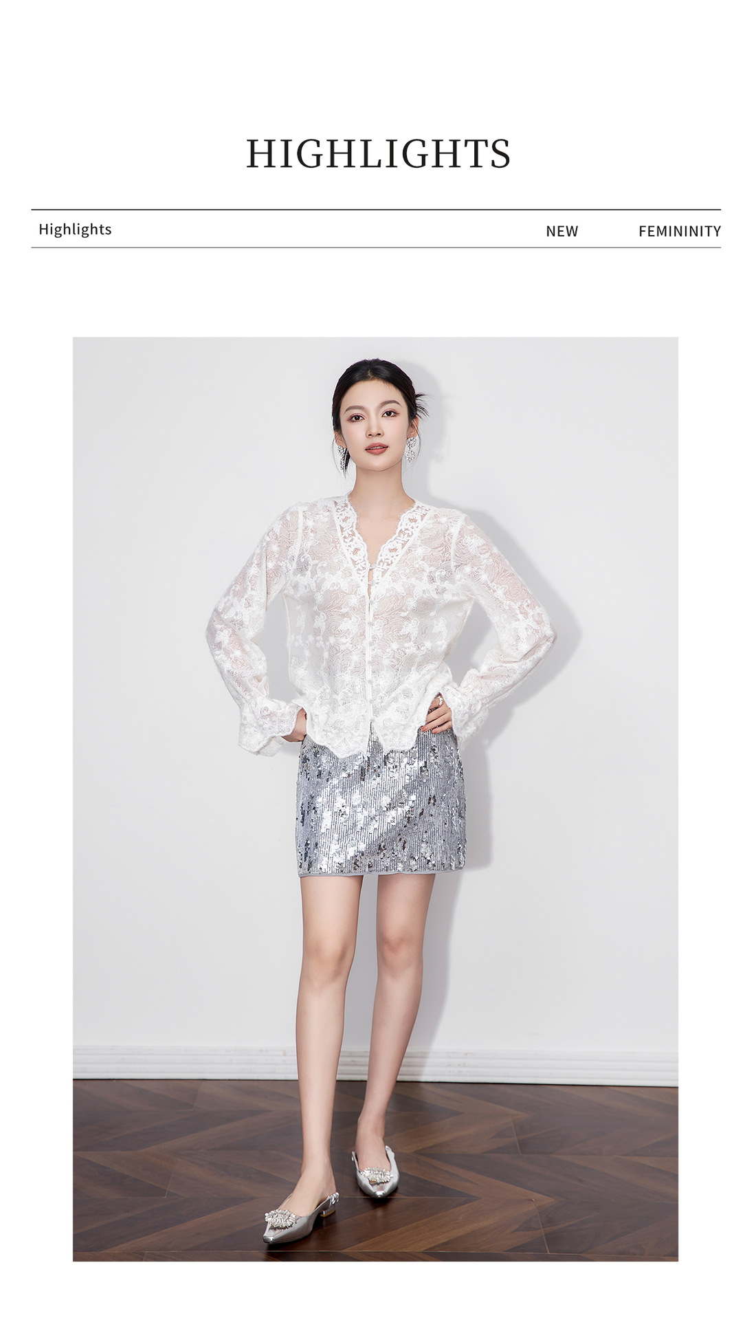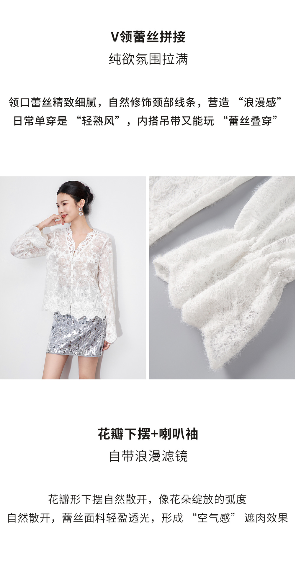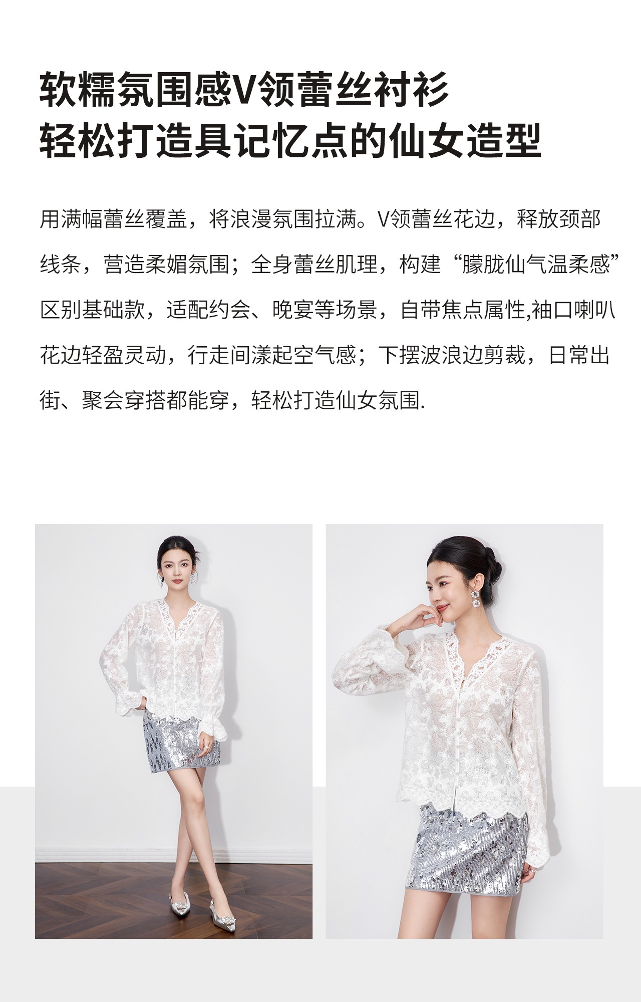 「高货wl」全新升级【铂金会员275/天猫369/差价94】(02308)洛诗琳重工立体浮雕刺绣蕾丝衫2025秋季气质V领显瘦衬衫