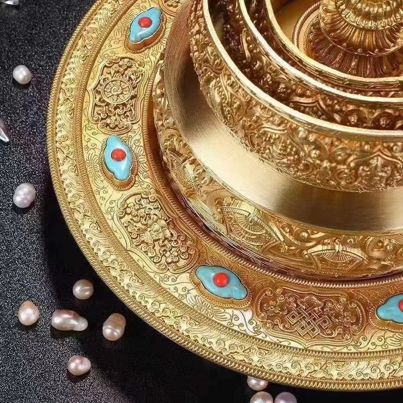 纯铜曼茶盘配托小号款如法37堆供曼扎 送天然玛瑙宝石