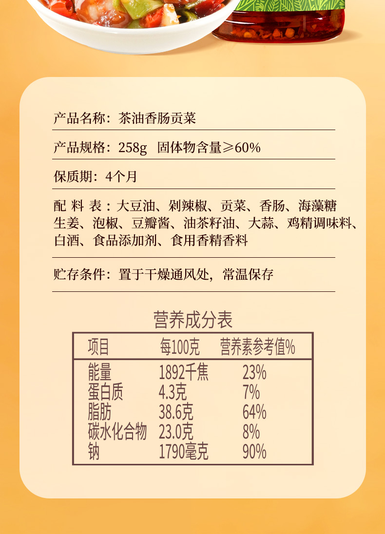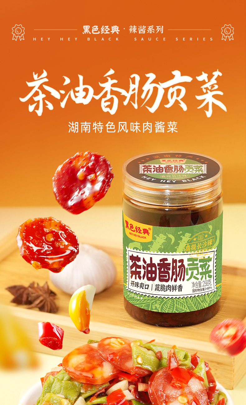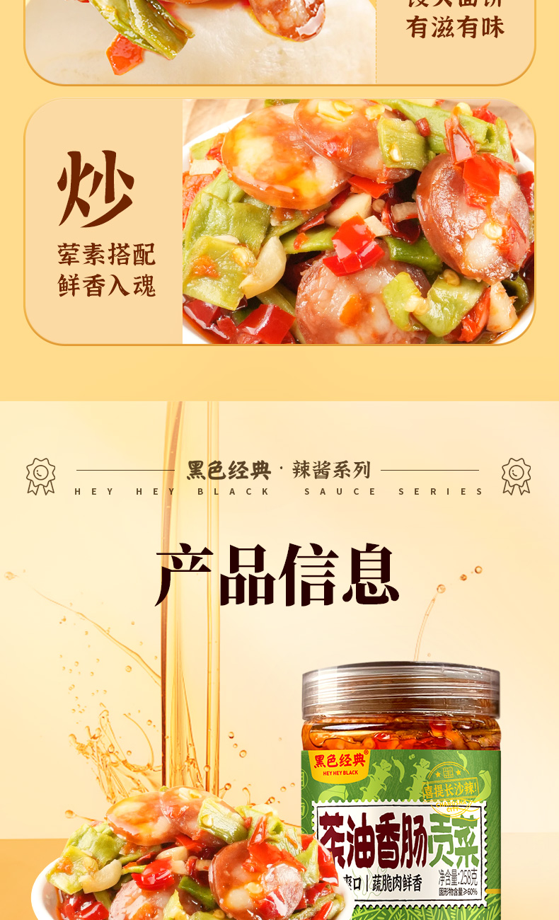【57.6元任选3件】黑色经典茶油香肠贡菜 258g