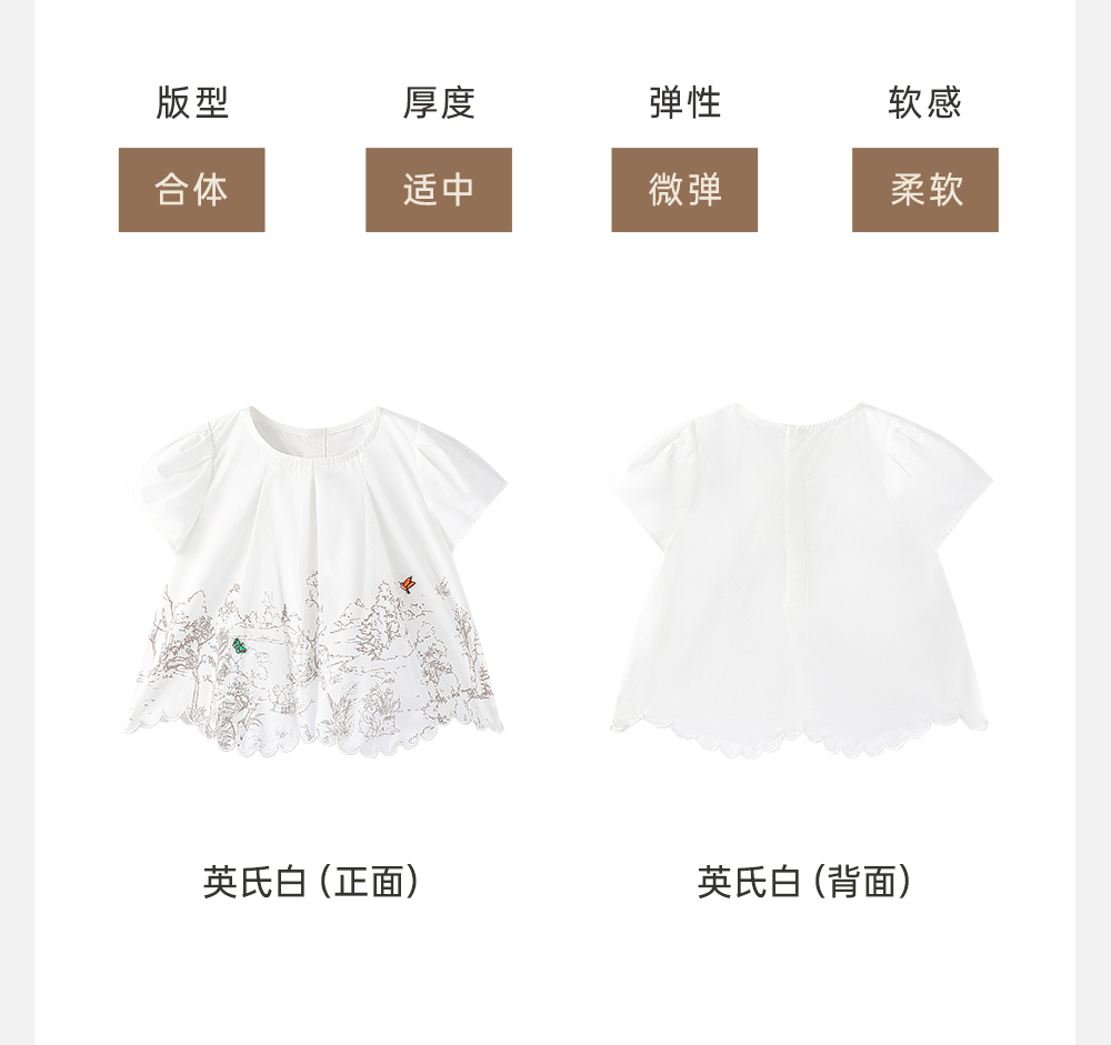 【商场同款】英氏儿童T恤纯棉女宝短袖上衣夏季透气衣服新款