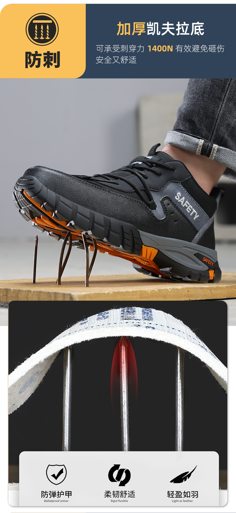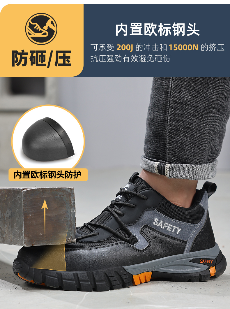 劳保鞋男防砸防刺防静电四季款爆款钢包头橡胶底