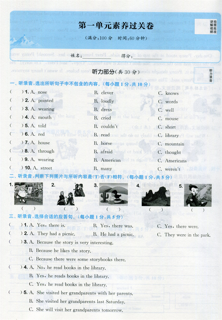 2025秋 非常大试卷 英语 六年级上册 译林版 小学教辅 测试卷 同步训练 6上 含答案讲解视频 通成学典