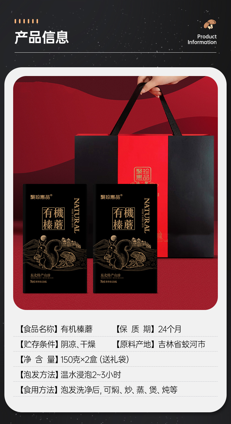 聚珍惠品长白山特有有机榛蘑礼盒(150g*2)JL