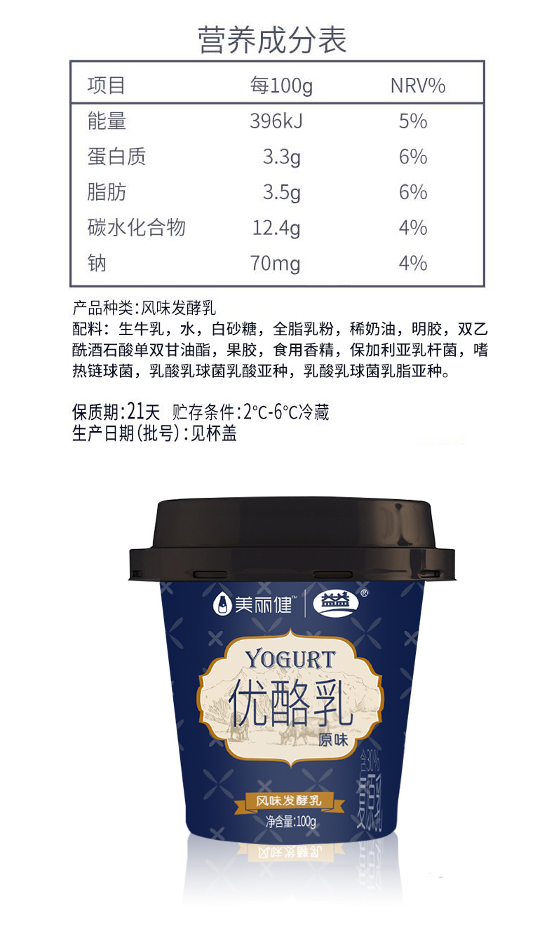 (限时9折社区团购)美丽健优酪乳风味发酵乳酸奶低温奶100g*3杯(一次性自提)