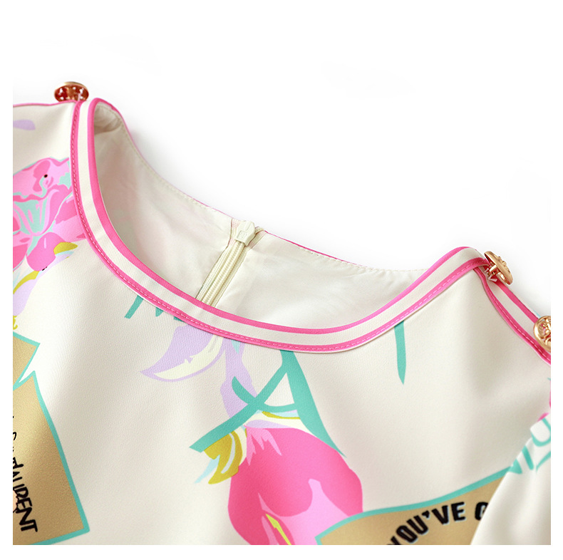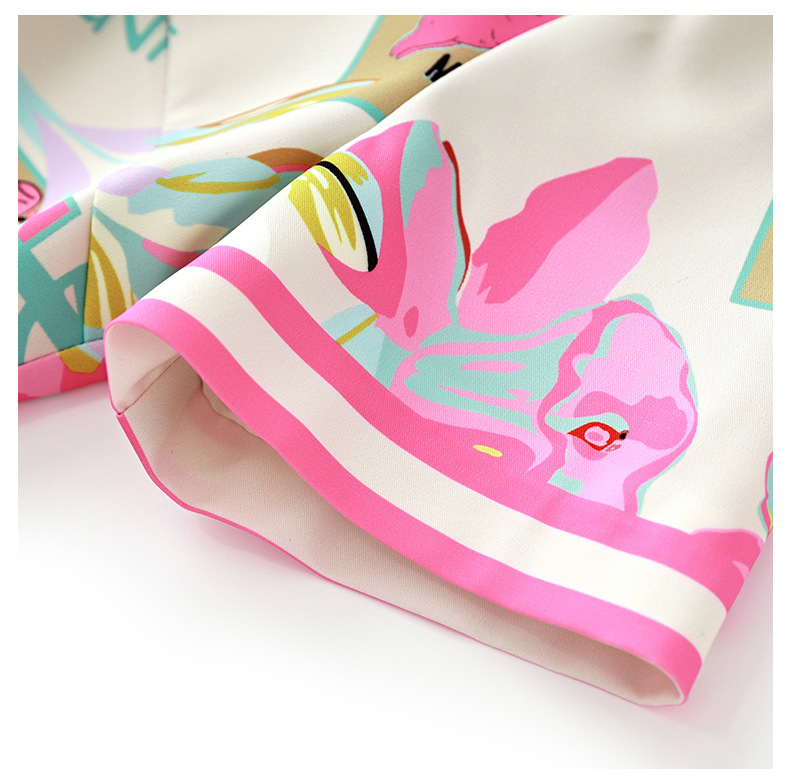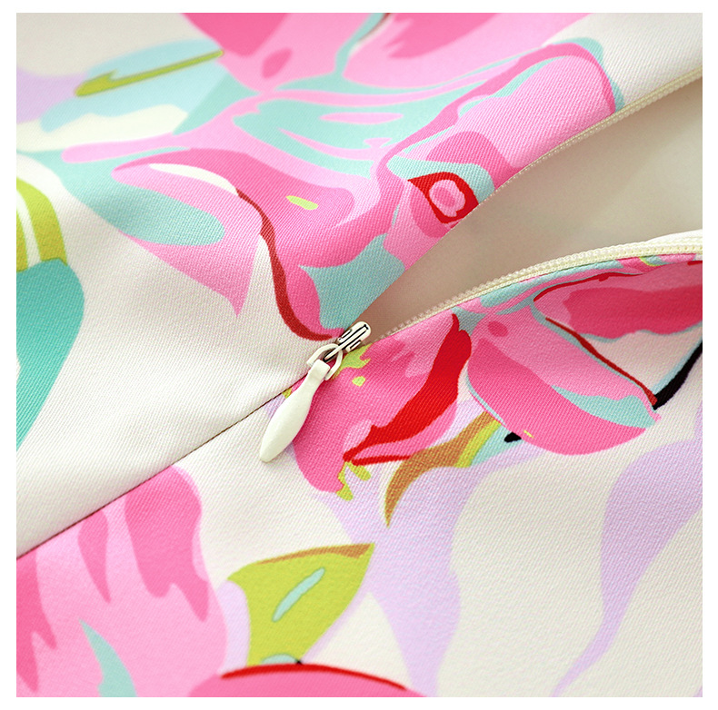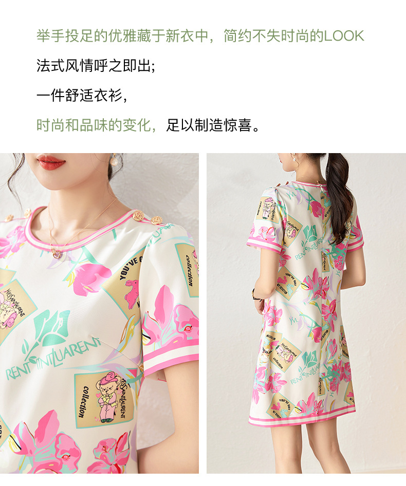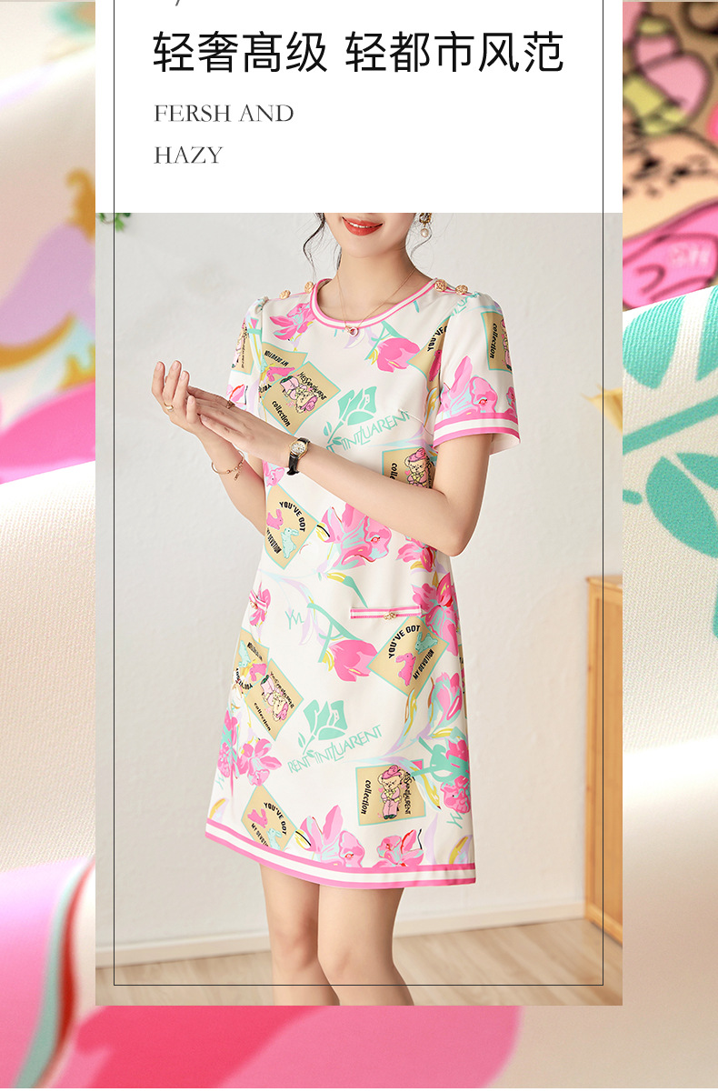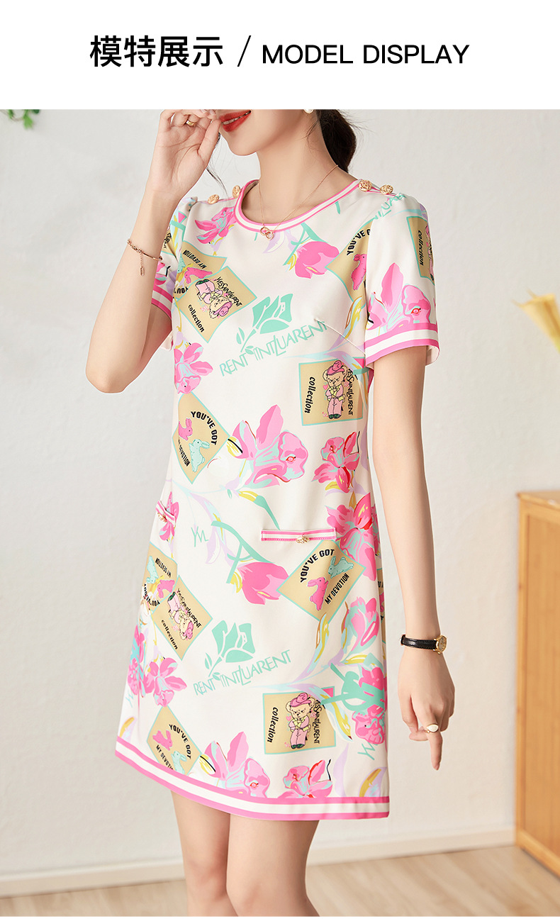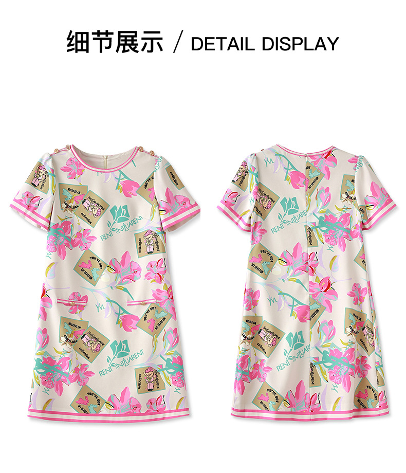 优雅复古,气质名媛感粉色花瓣印花圆领重工艺连衣裙WLZD-2306409