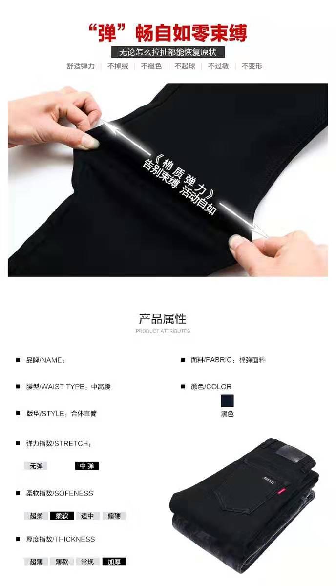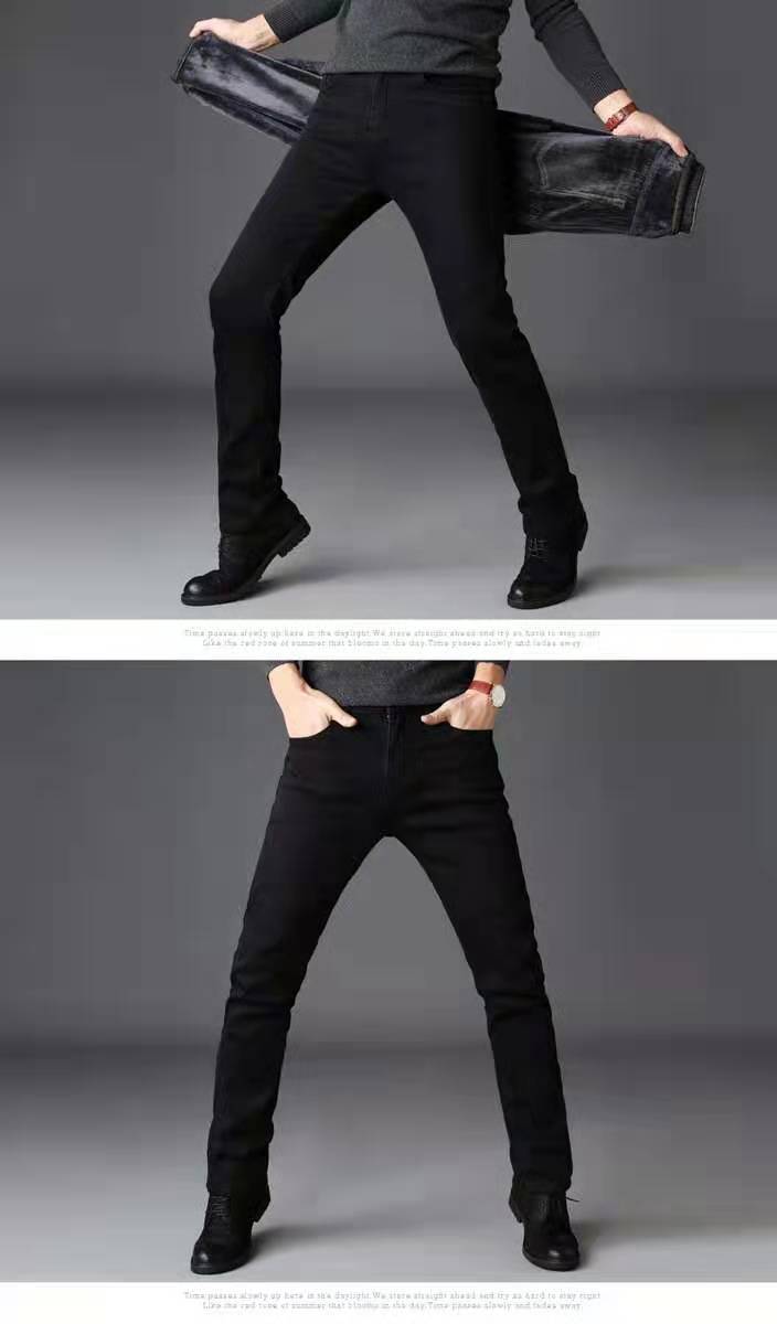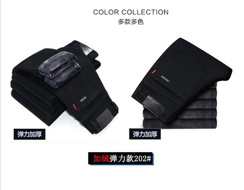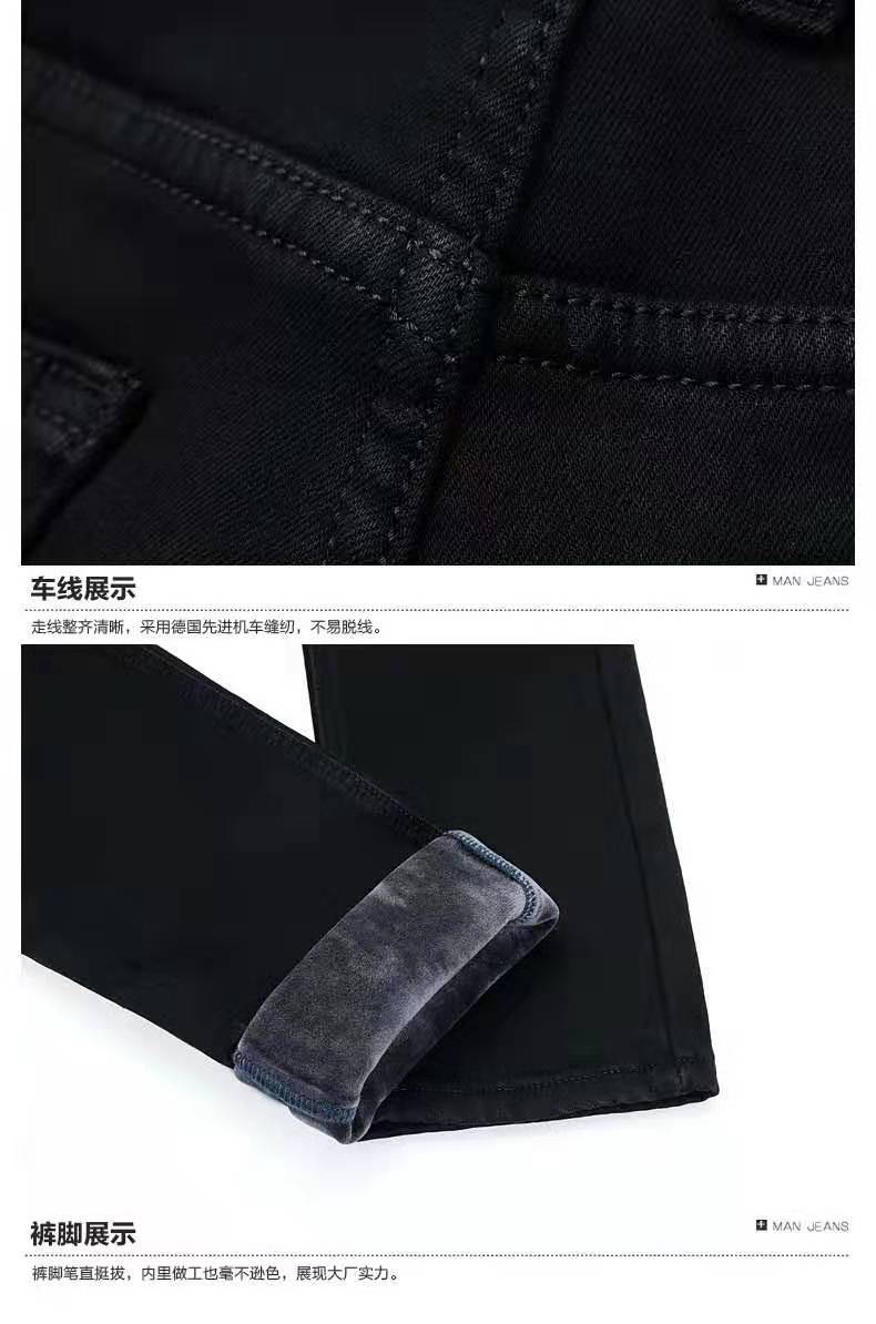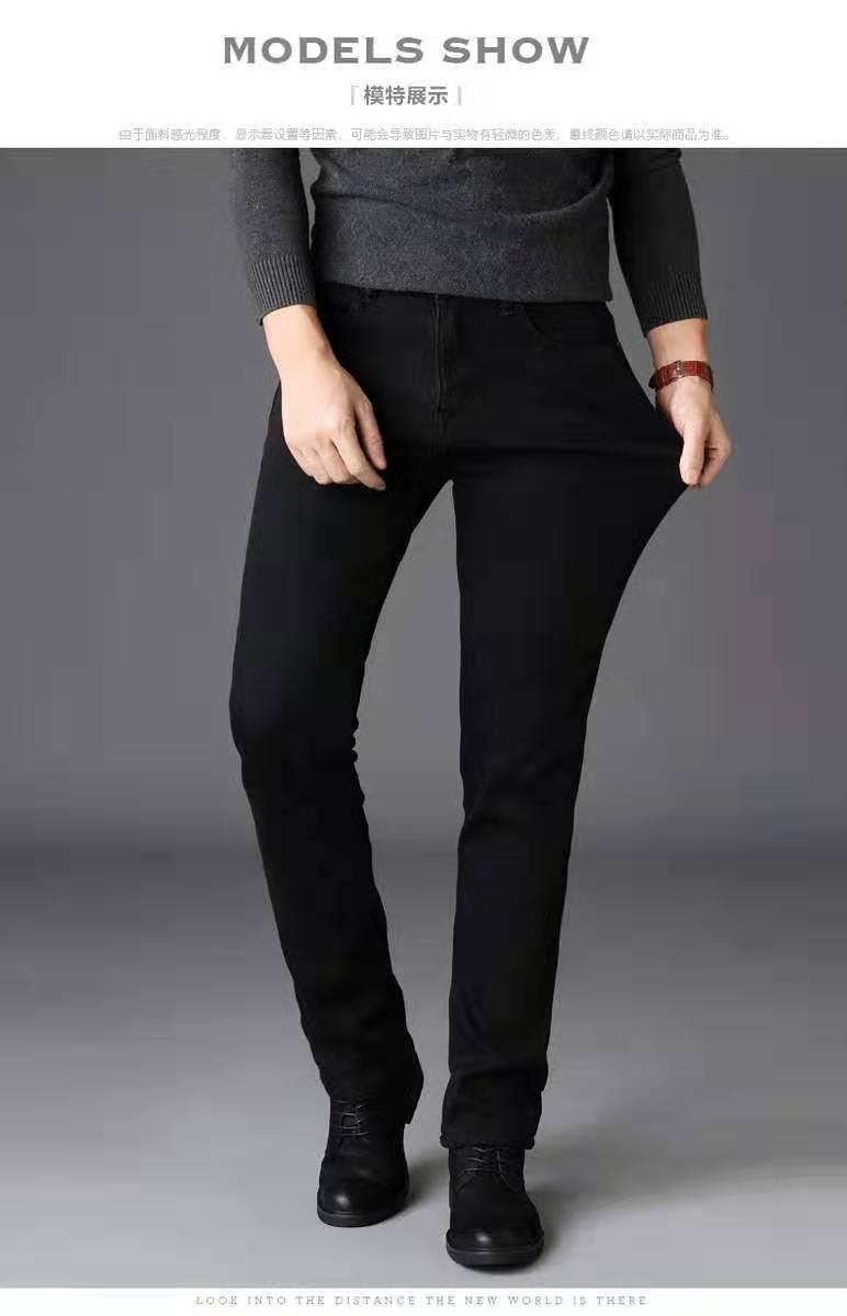SX-202秋冬男士加绒纯黑牛仔裤弹力宽松直筒百搭休闲长裤
