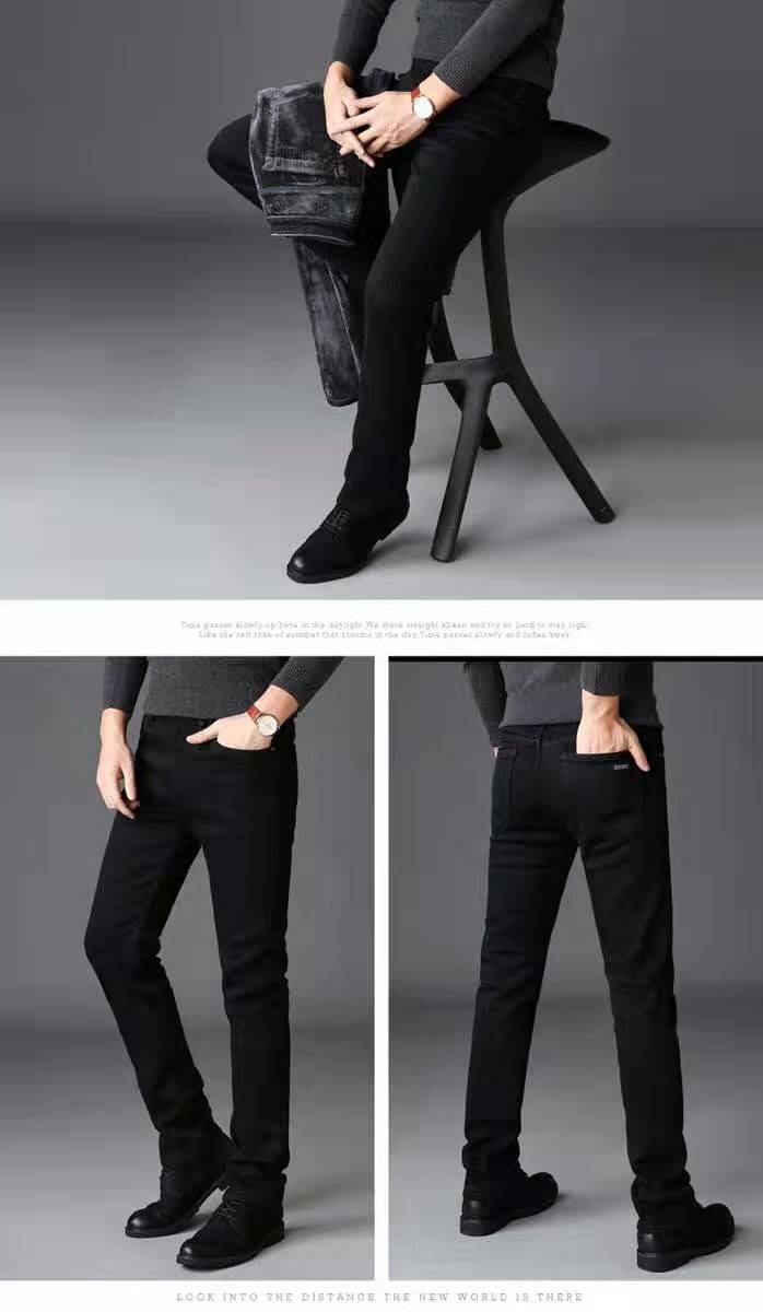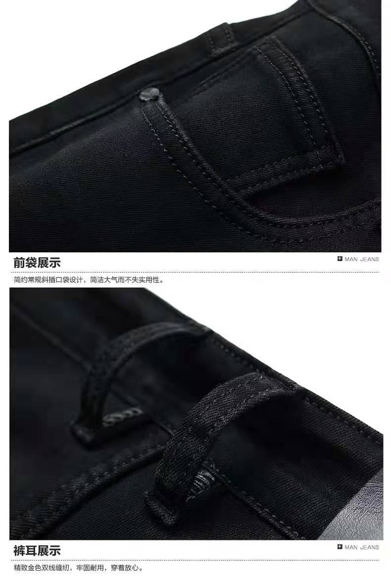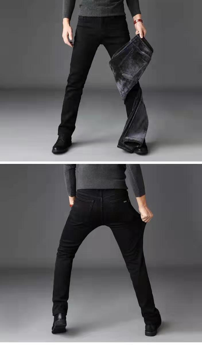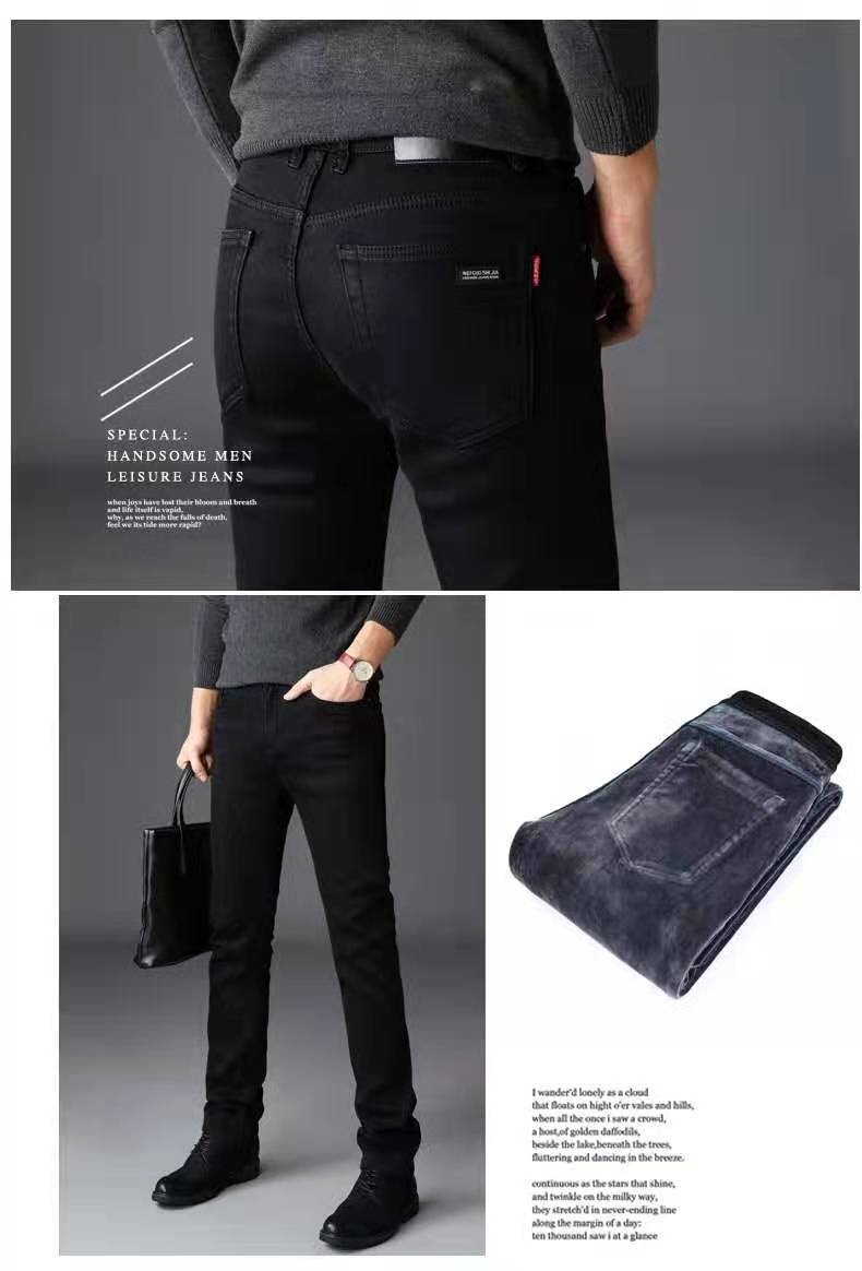 SX-202秋冬男士加绒纯黑牛仔裤弹力宽松直筒百搭休闲长裤