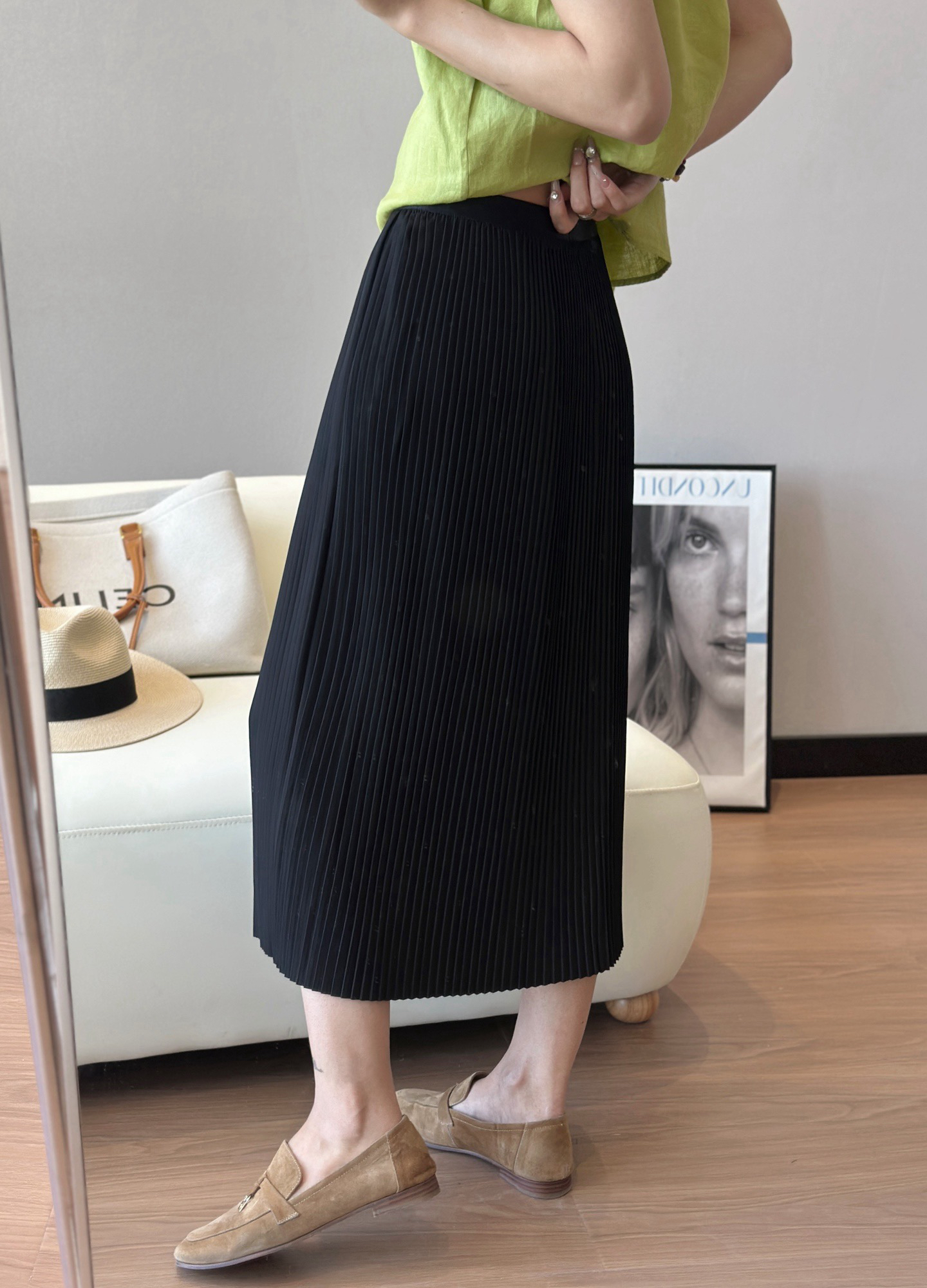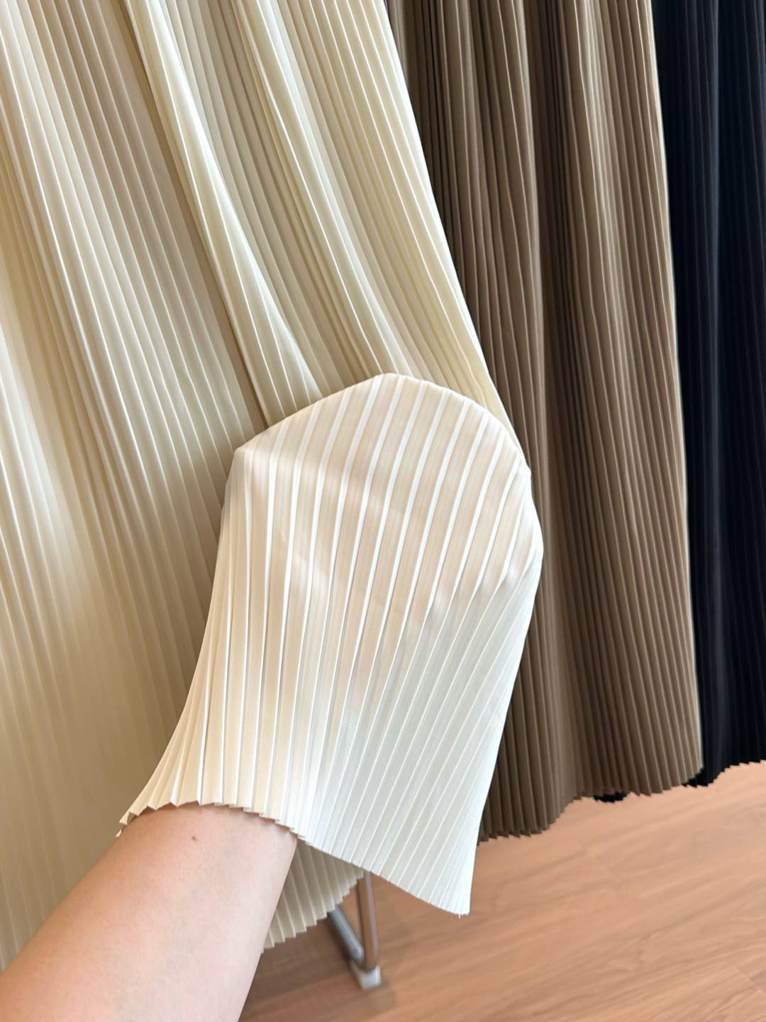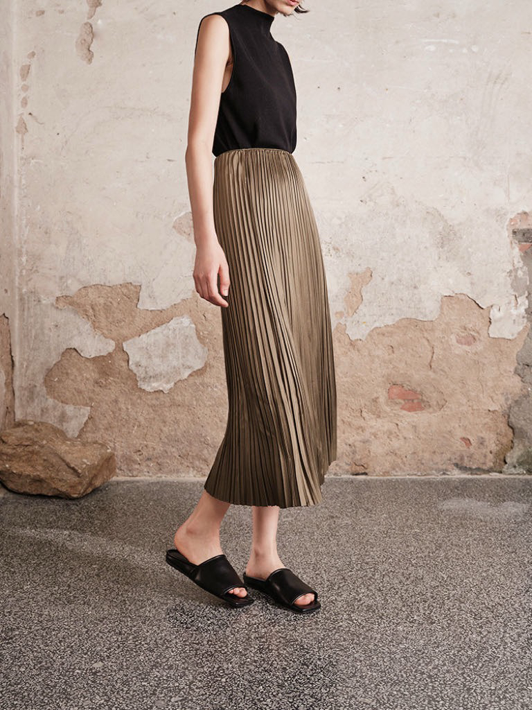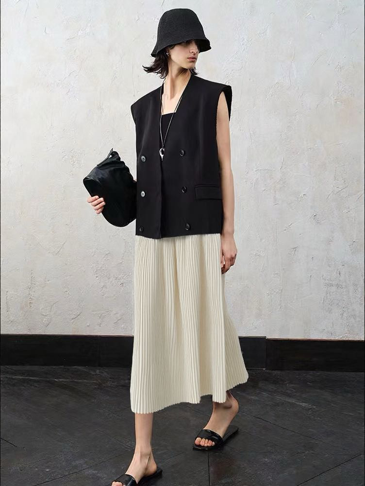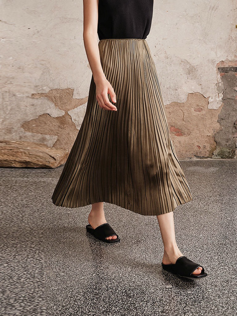 每一道均匀的压褶强化纵向延伸感,巨遮肉显瘦,梨形bb可放心冲!整件裙子用料很足,给人的感受就是平顺垂挺,这其实很考验工艺,走起来自带行云流水的美感,日常通勤也能拥有浪漫优雅气质💃
