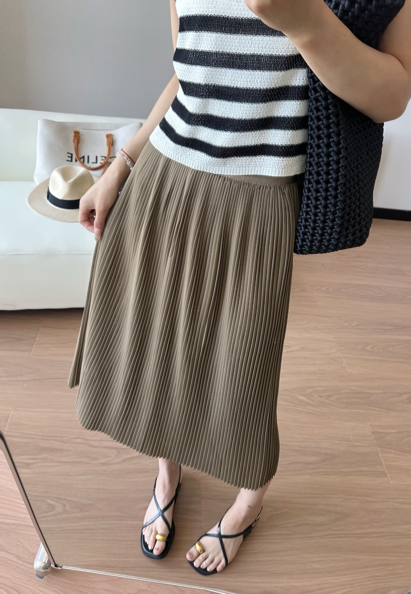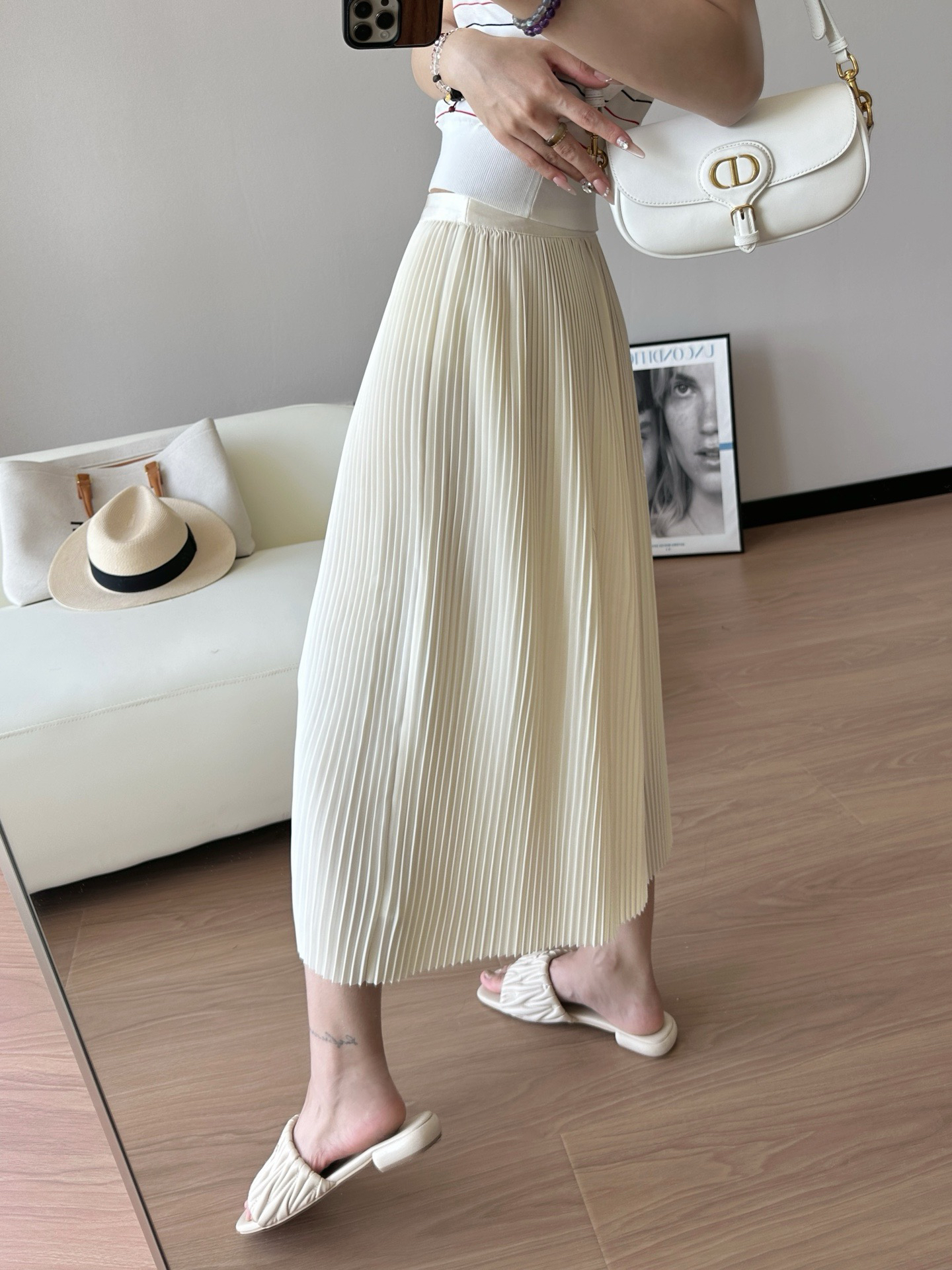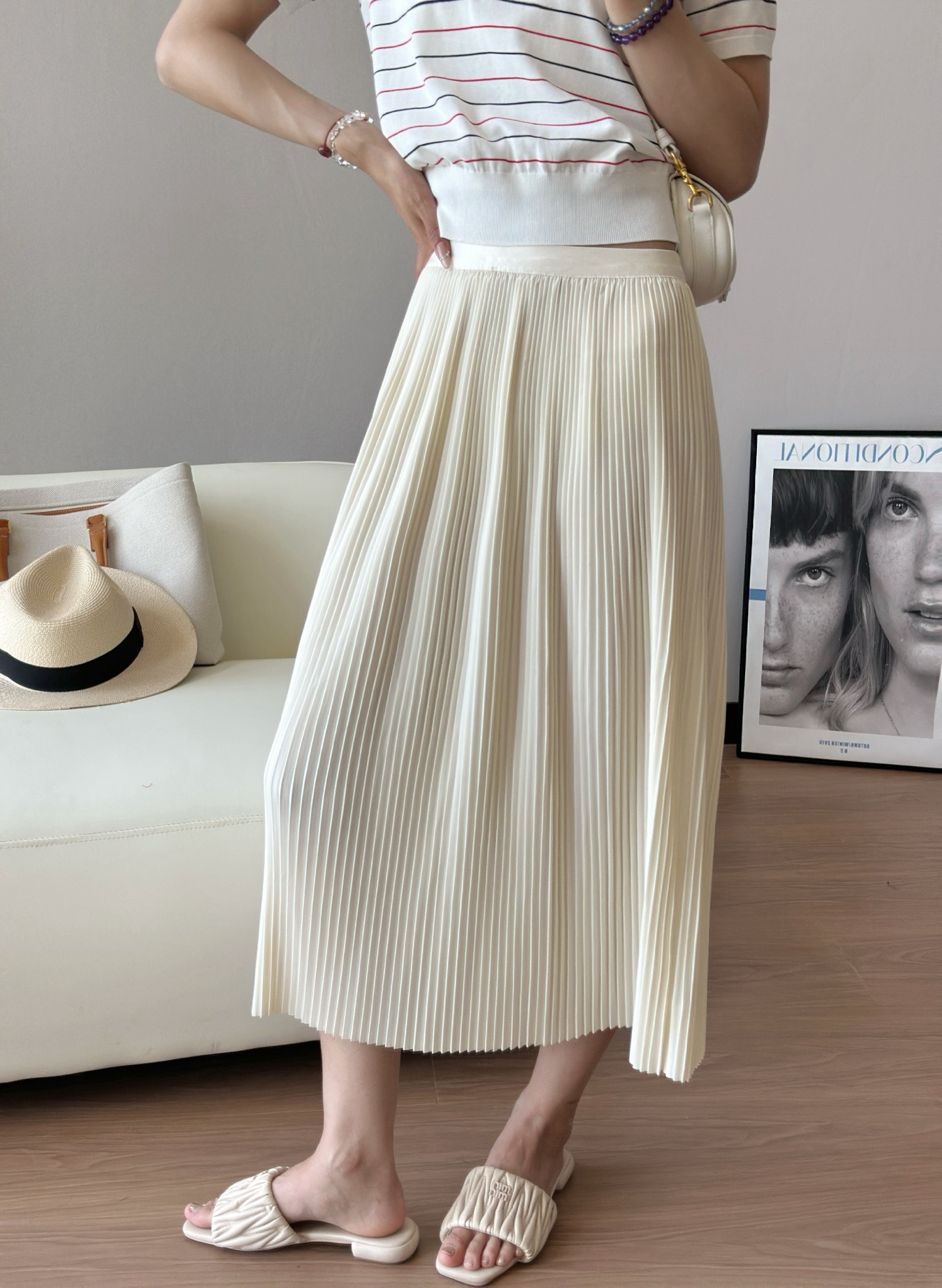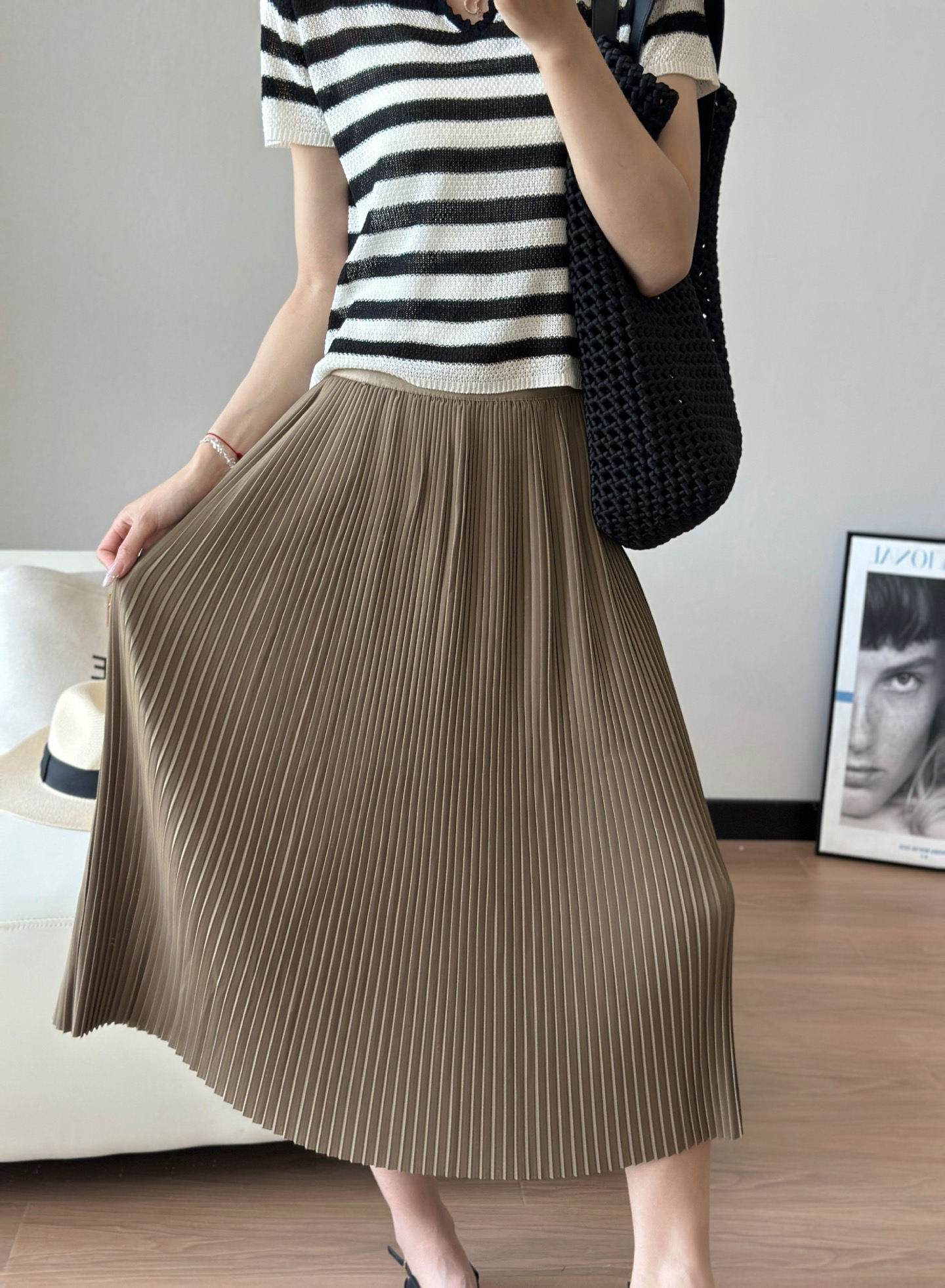 每一道均匀的压褶强化纵向延伸感,巨遮肉显瘦,梨形bb可放心冲!整件裙子用料很足,给人的感受就是平顺垂挺,这其实很考验工艺,走起来自带行云流水的美感,日常通勤也能拥有浪漫优雅气质💃