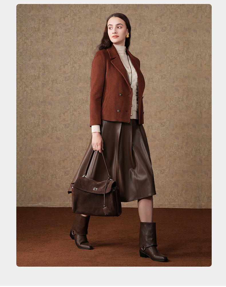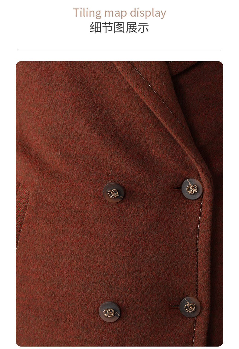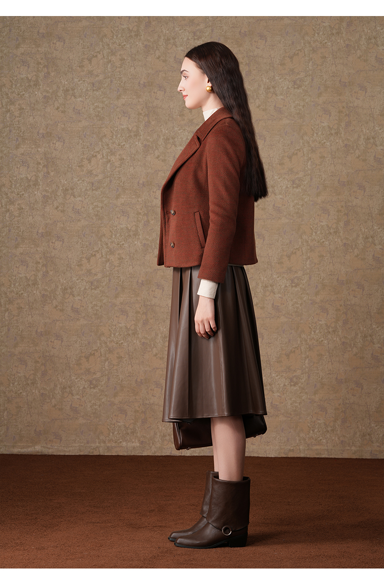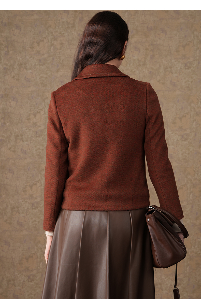 乔万尼100%绵羊毛短款翻领双排扣正肩利落感羊毛外套短大衣EF4B178