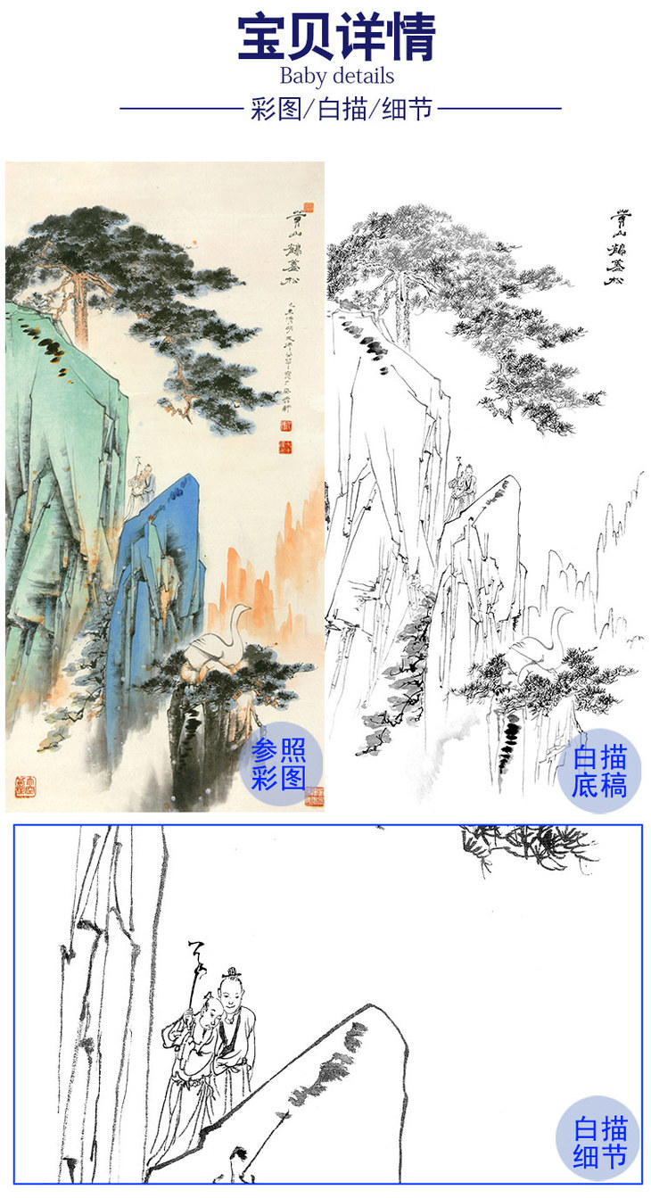 胡也佛竖幅工笔山水白描底稿-《黄山鹤蓋松》-多种白描尺寸可选-HY44
