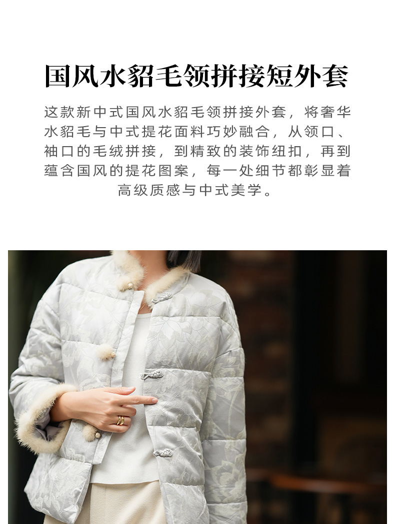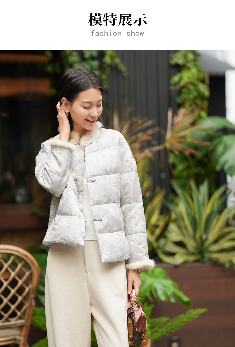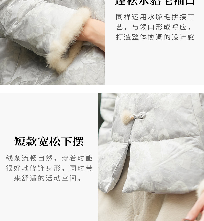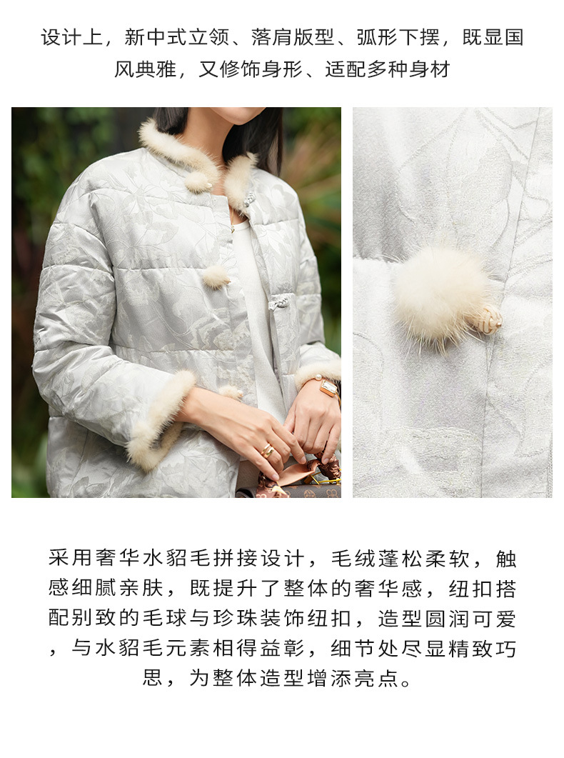 OPH XZ678新中式国风真丝羊毛90白鸭绒羽绒服国风加厚水貂短外套