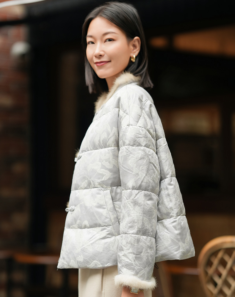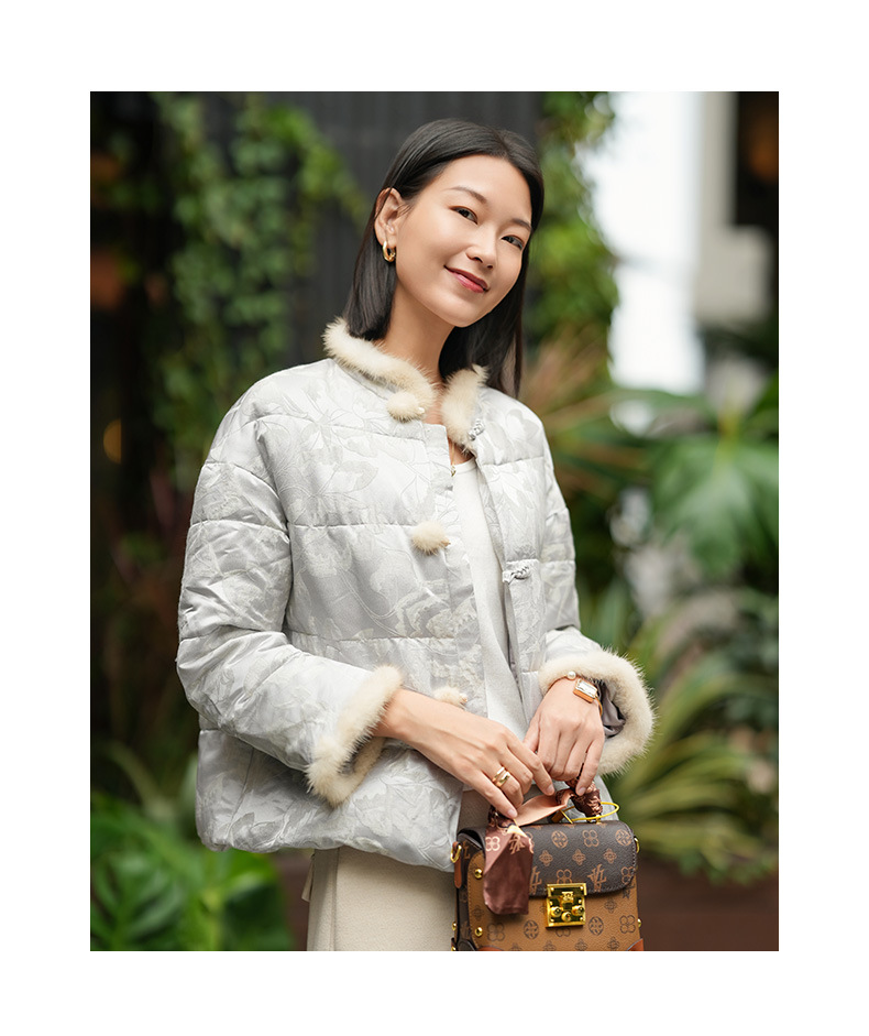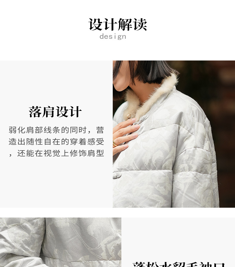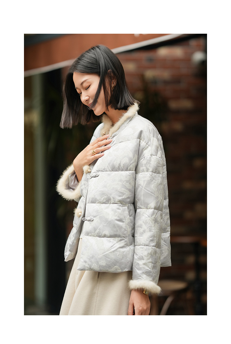 OPH XZ678新中式国风真丝羊毛90白鸭绒羽绒服国风加厚水貂短外套