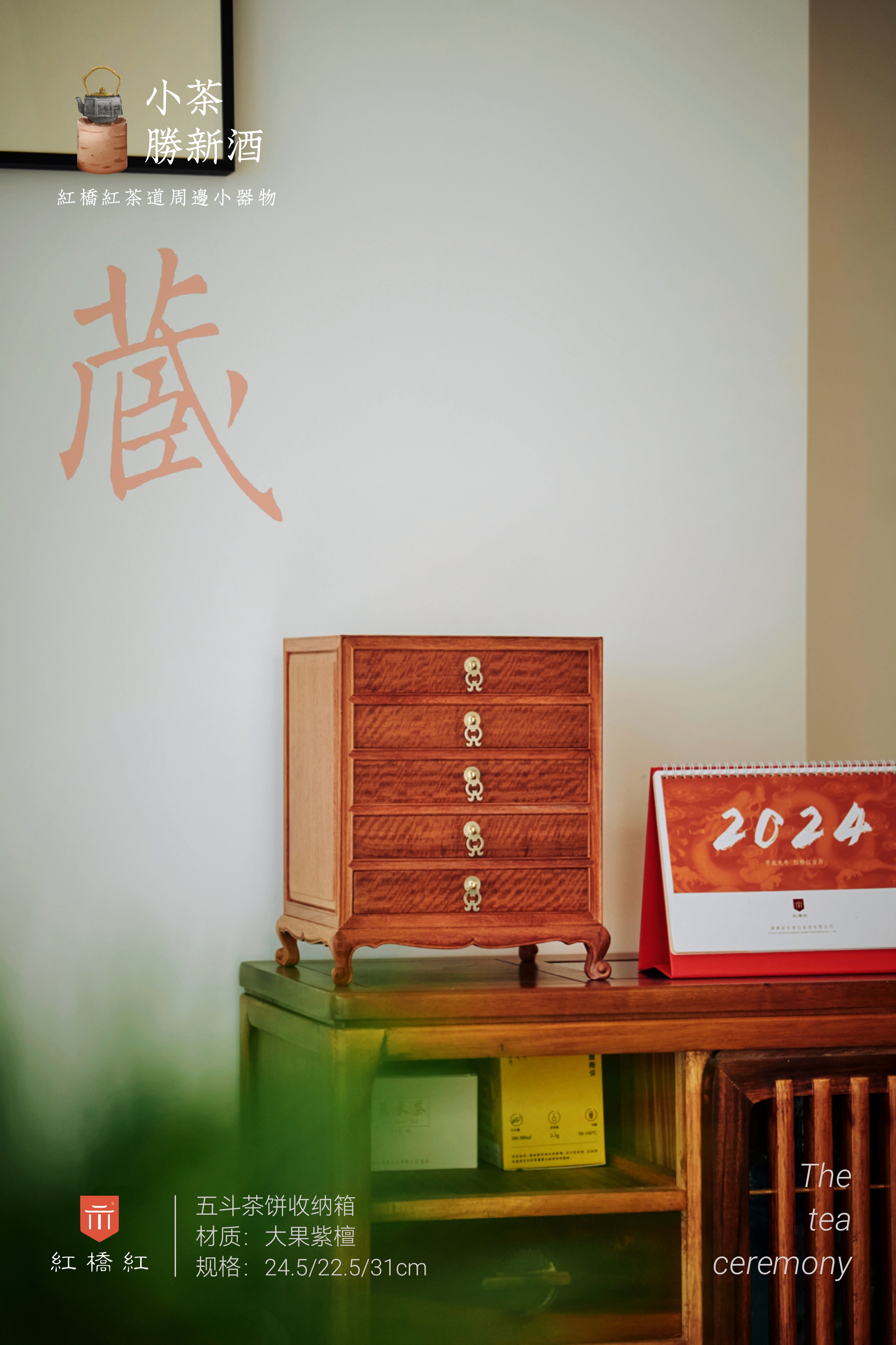 此款缅花普洱茶柜,全器分上部柜体和下部底座。上部长方框架内打造抽屉架,其间平列五具抽屉,实用性强;抽屉脸木纹美观,正中安护眼和镂空吊牌,抽拉便利,抽屉框沿边的横竖框均起阳线,细节讲究。底承做壸门样式,三弯式卷珠腿几座。此柜可置于案上古雅清逸,用于存放茶饼等,可做茶叶盒、储物盒使用。