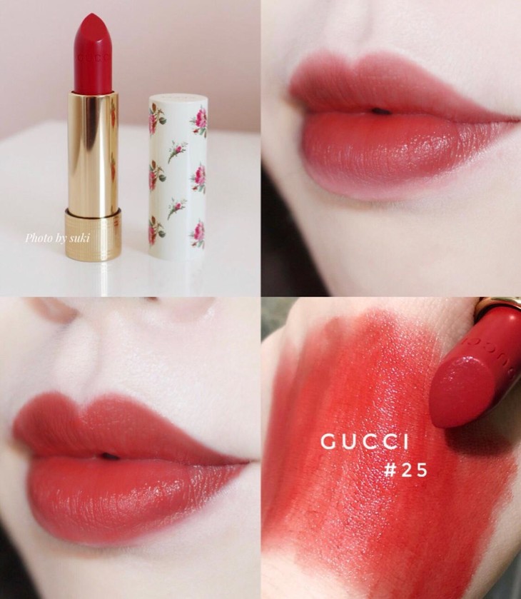 Gucci 倾色丝润唇膏(碎花)#25👍小碎花25号Goldie Red是海报色🕶,水润的蕃茄红🍅吼吼看!有存在感,但是不轻佻不艳俗,很适合夏天☀搭配复古风的风格。质地很顺滑💧,轻轻涂一两下是不显色的,很滋润💧,润唇膏的感觉,可以作为有色润唇膏💄哦。黄皮驾驭无压力,白皮也不会显得很苍白,确实很妙的一个色号get✔