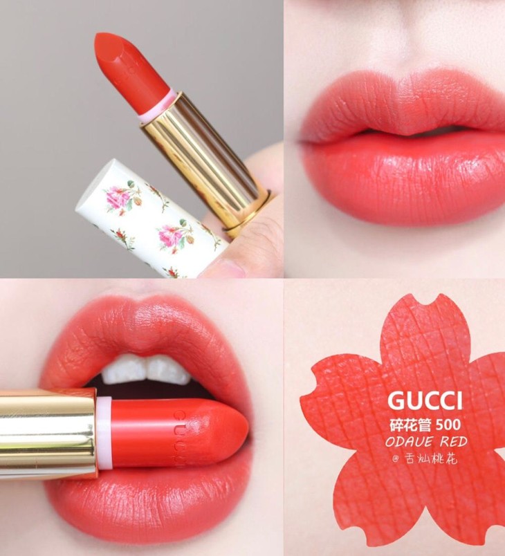 Gucci 倾色丝润唇膏(碎花)#500👍水汪汪的嫩到爆~碎花管真的是少女必备☑!无论口红的颜值🎀还是颜色都超级适合可爱又元气的小姑娘👧!非常嫩的红心蜜柚色,不荧光,甜滋滋的💓!属于约会以及逛街都适合的日常色,涂起来显白又元气!整体看任何光线都是浅橘红🍊色系,超级适合夏天哦