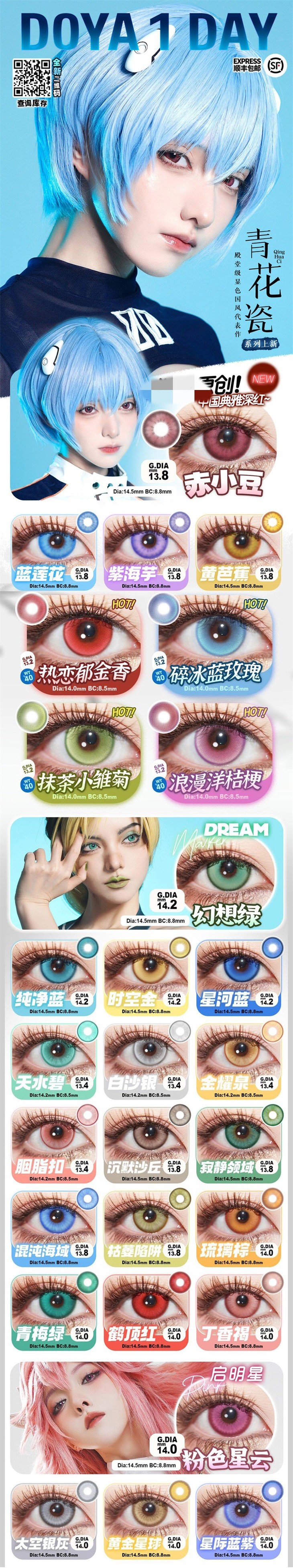 DoYaColor日抛隐形眼镜 丁香褐/鹤顶红/琉璃棕/青梅绿 1盒/10片