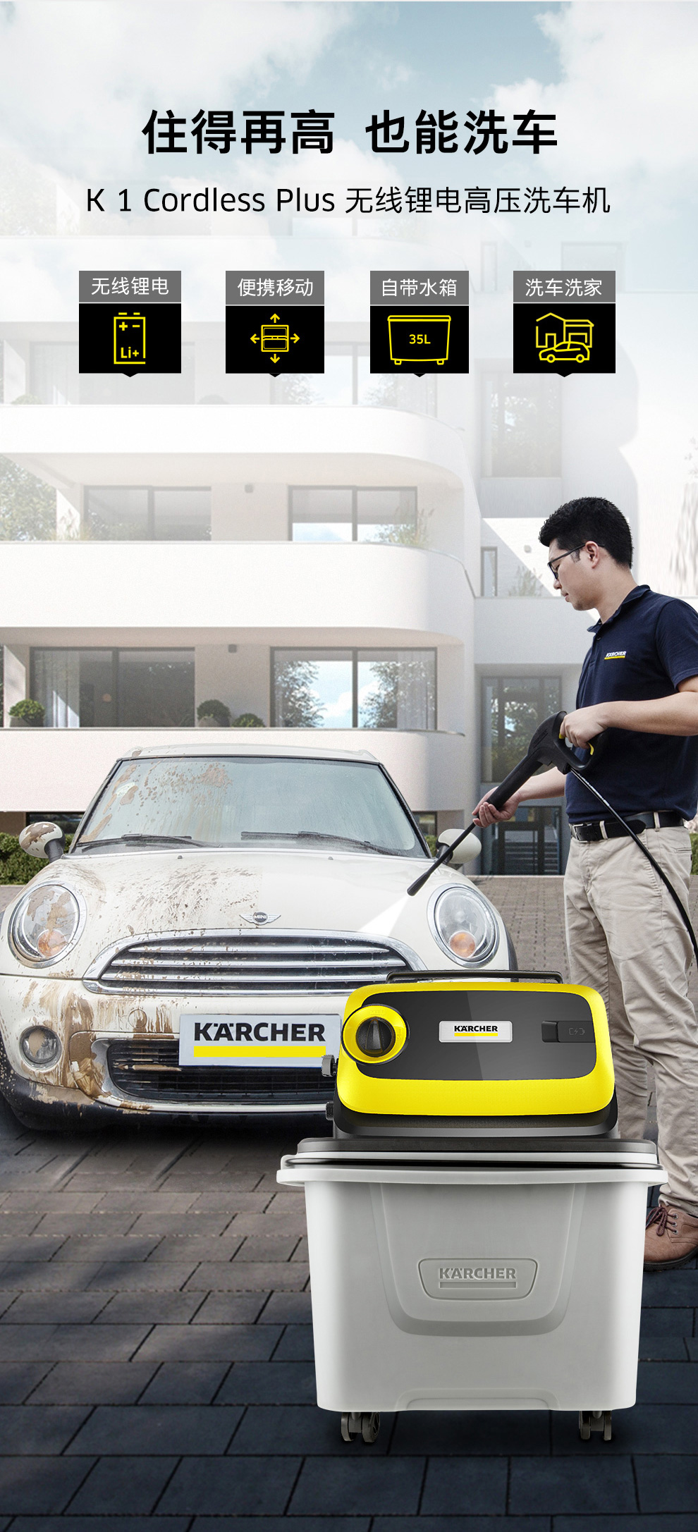 【官翻样机】 德国卡赫K1水箱版无线洗车机高压水泵家用充电便携锂电水枪清洗车工具 15992210
