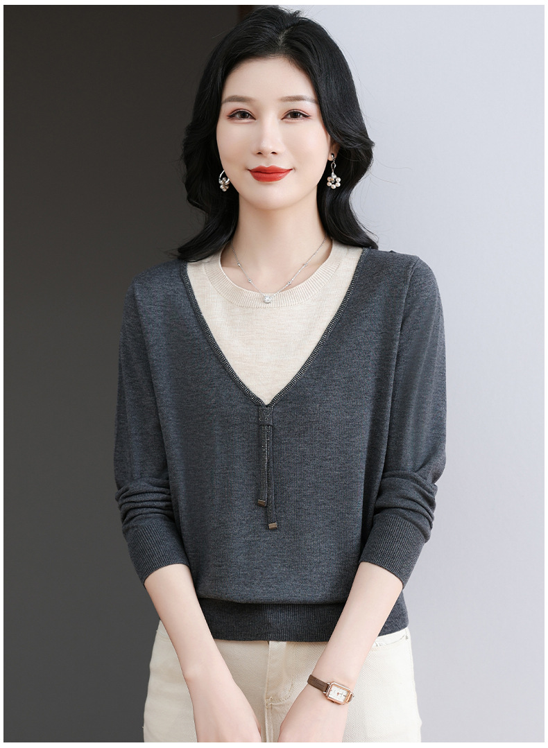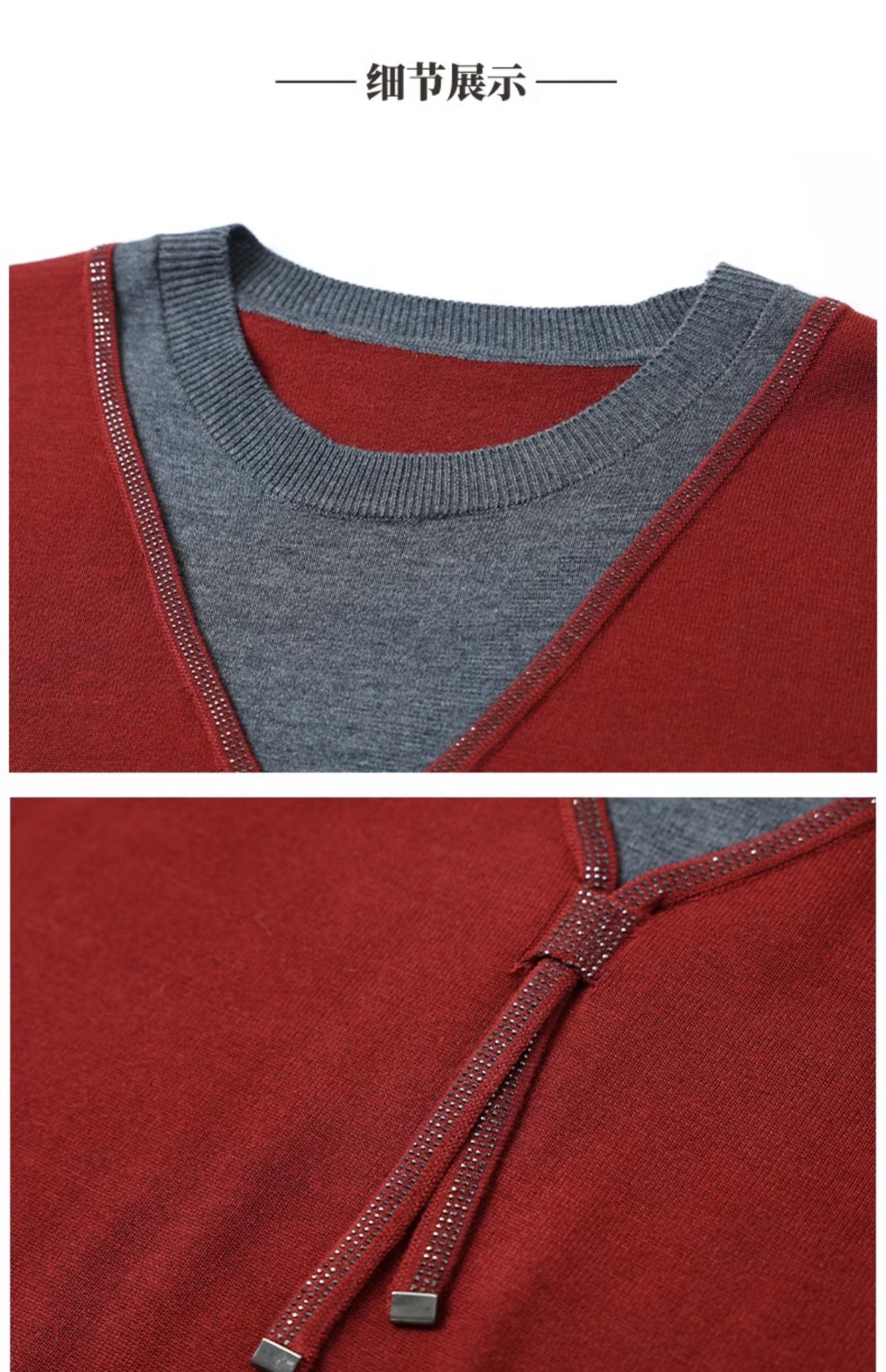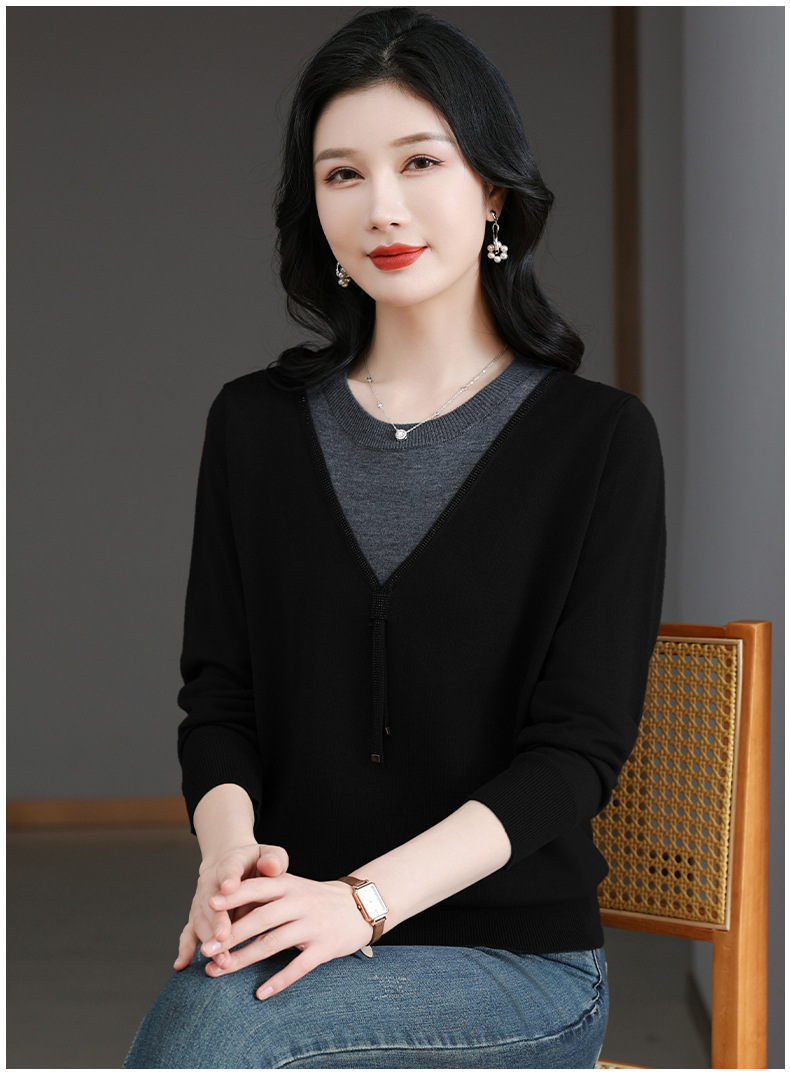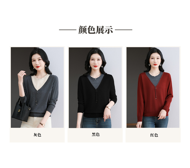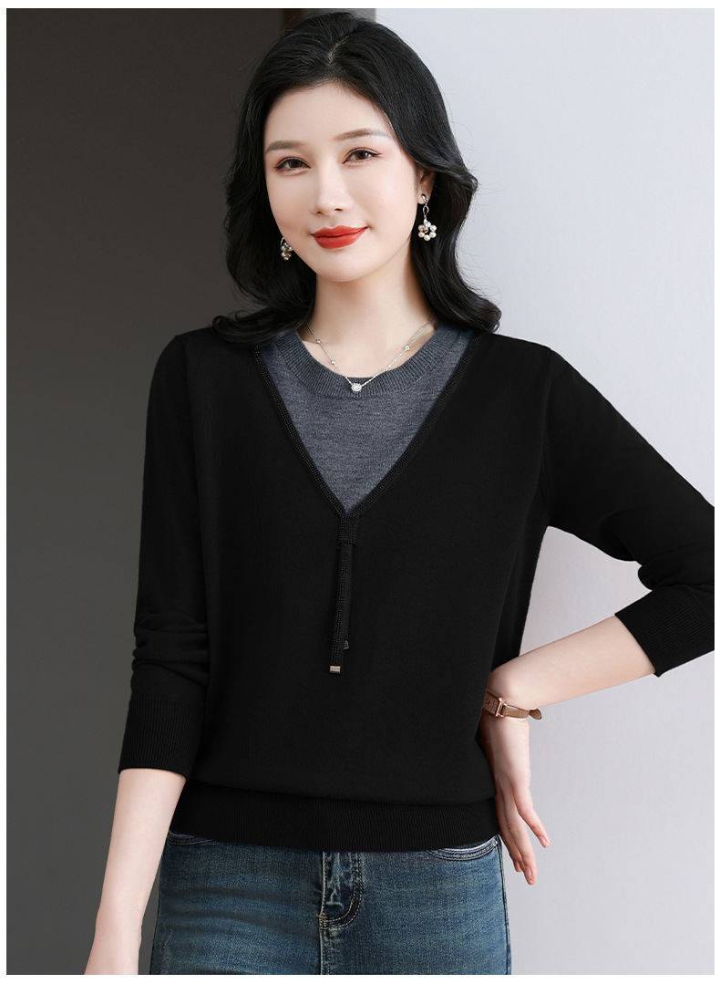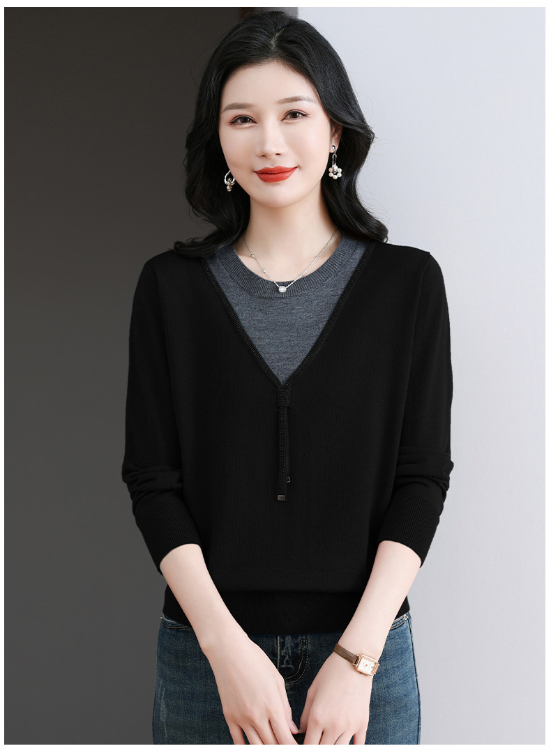 CC-BSM-718假两件针织衫t恤女士遮肚显瘦上衣2025新款春秋拼色打底