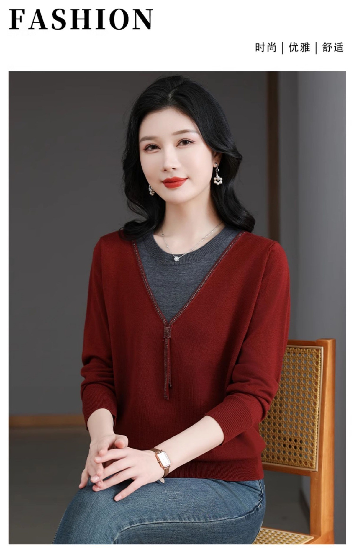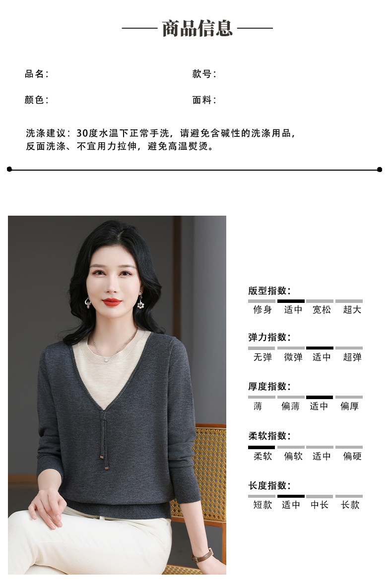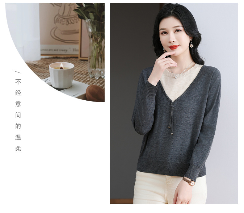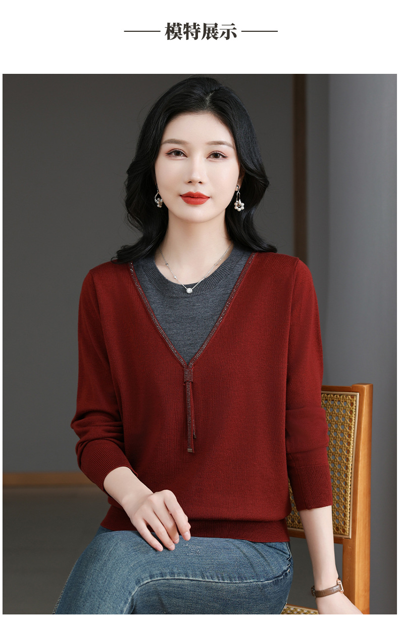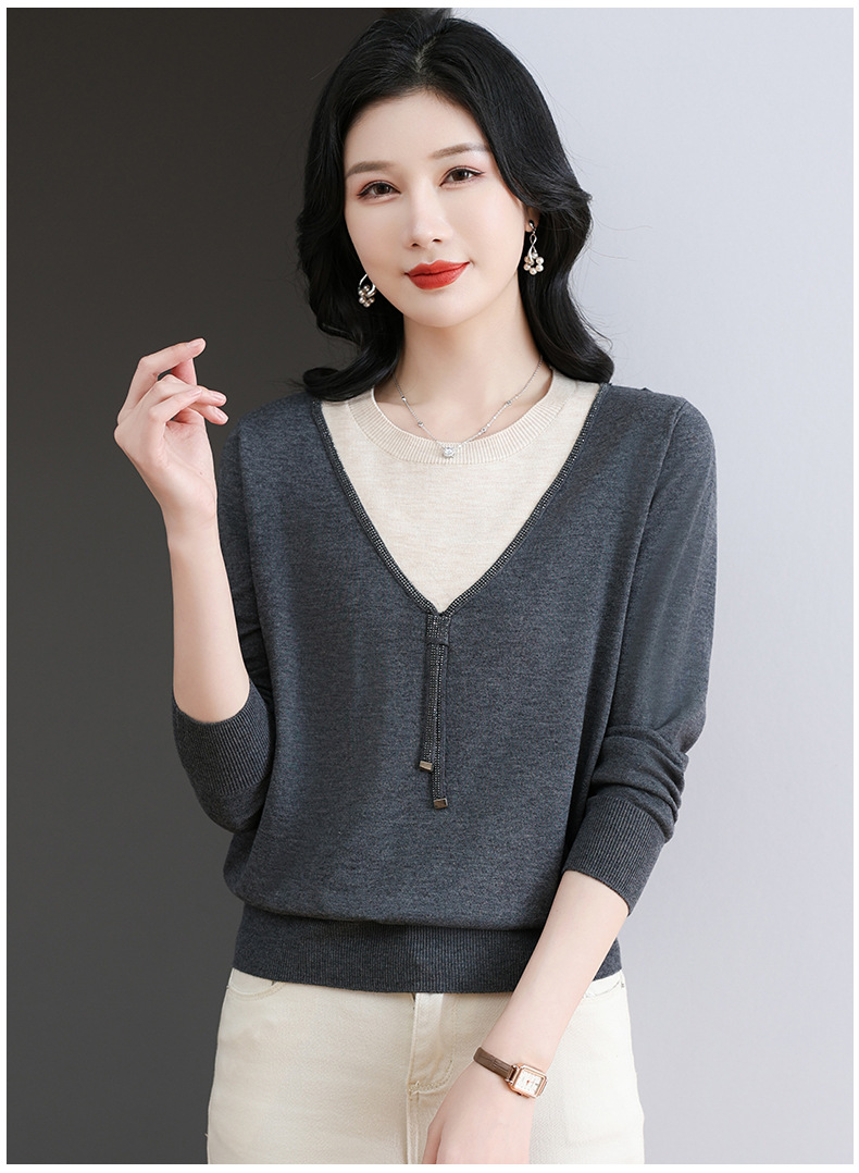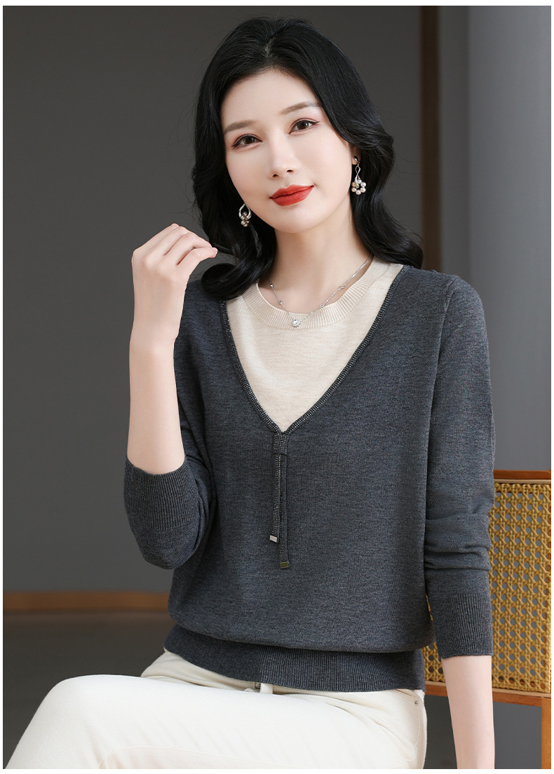 CC-BSM-718假两件针织衫t恤女士遮肚显瘦上衣2025新款春秋拼色打底