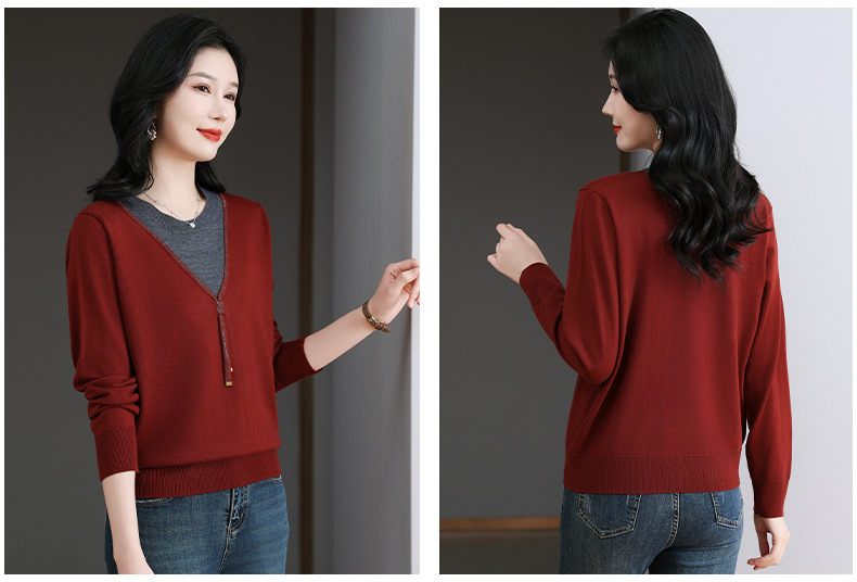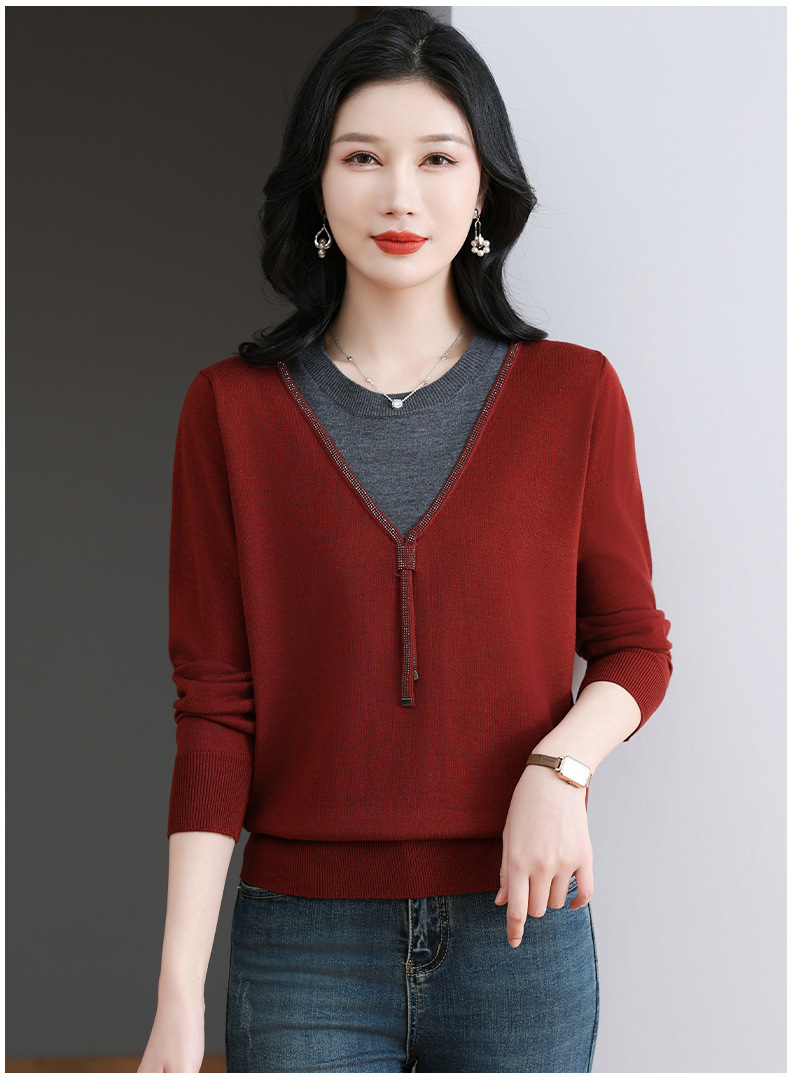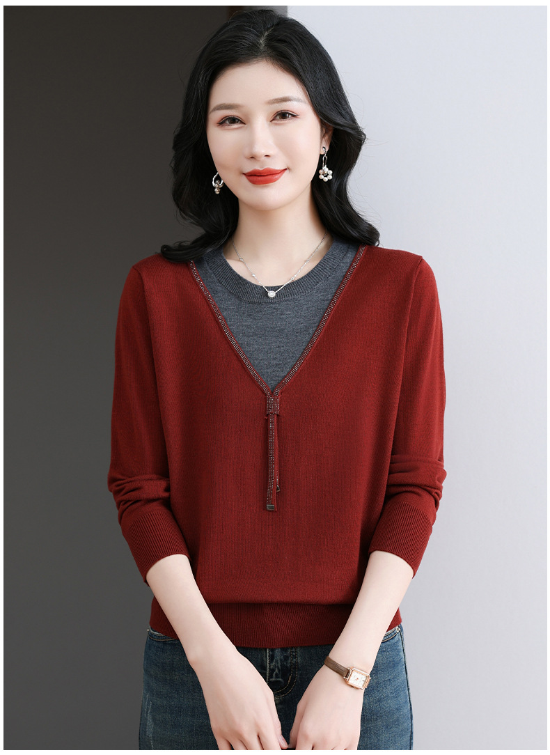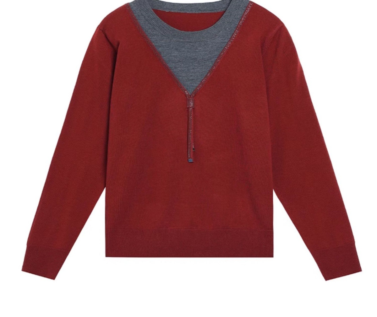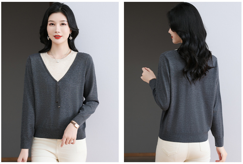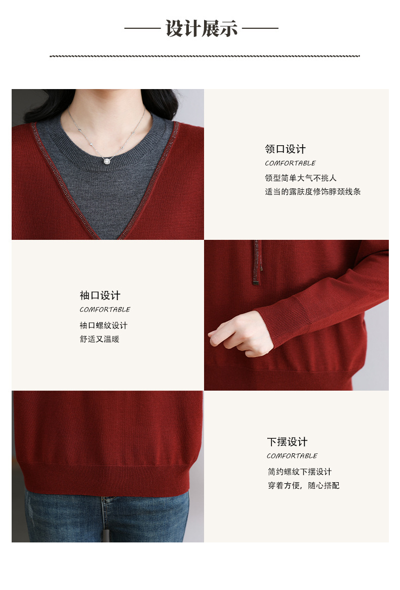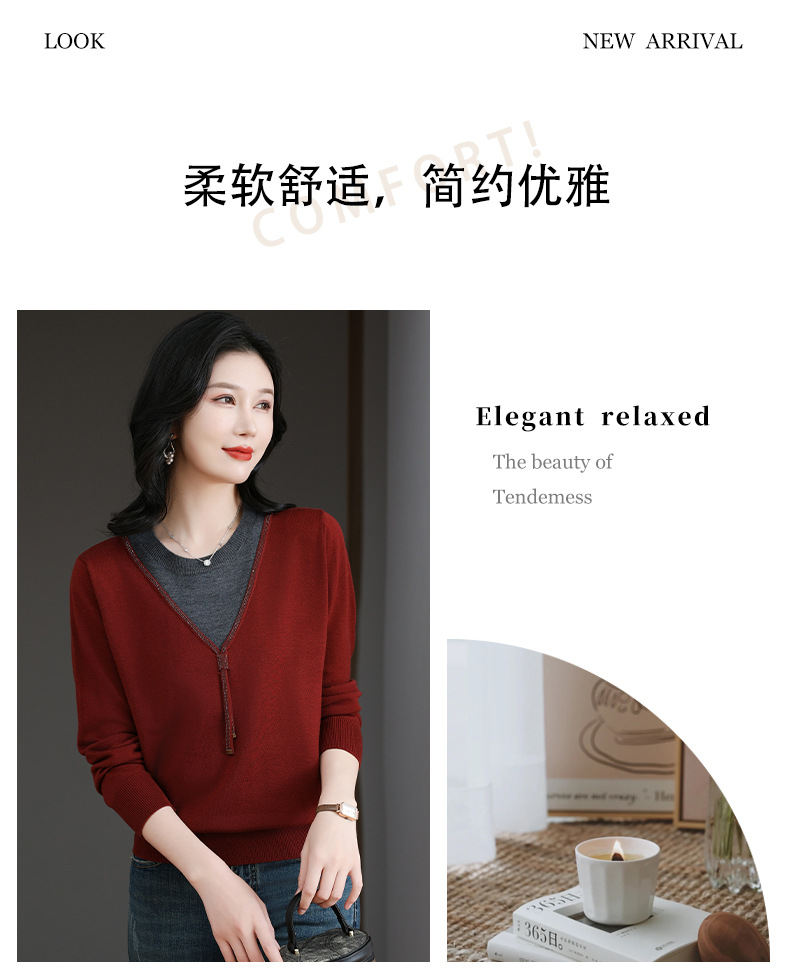 CC-BSM-718假两件针织衫t恤女士遮肚显瘦上衣2025新款春秋拼色打底