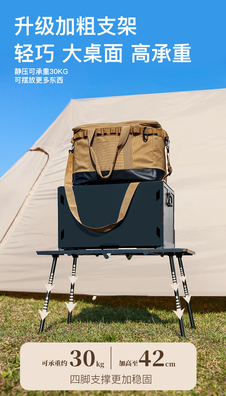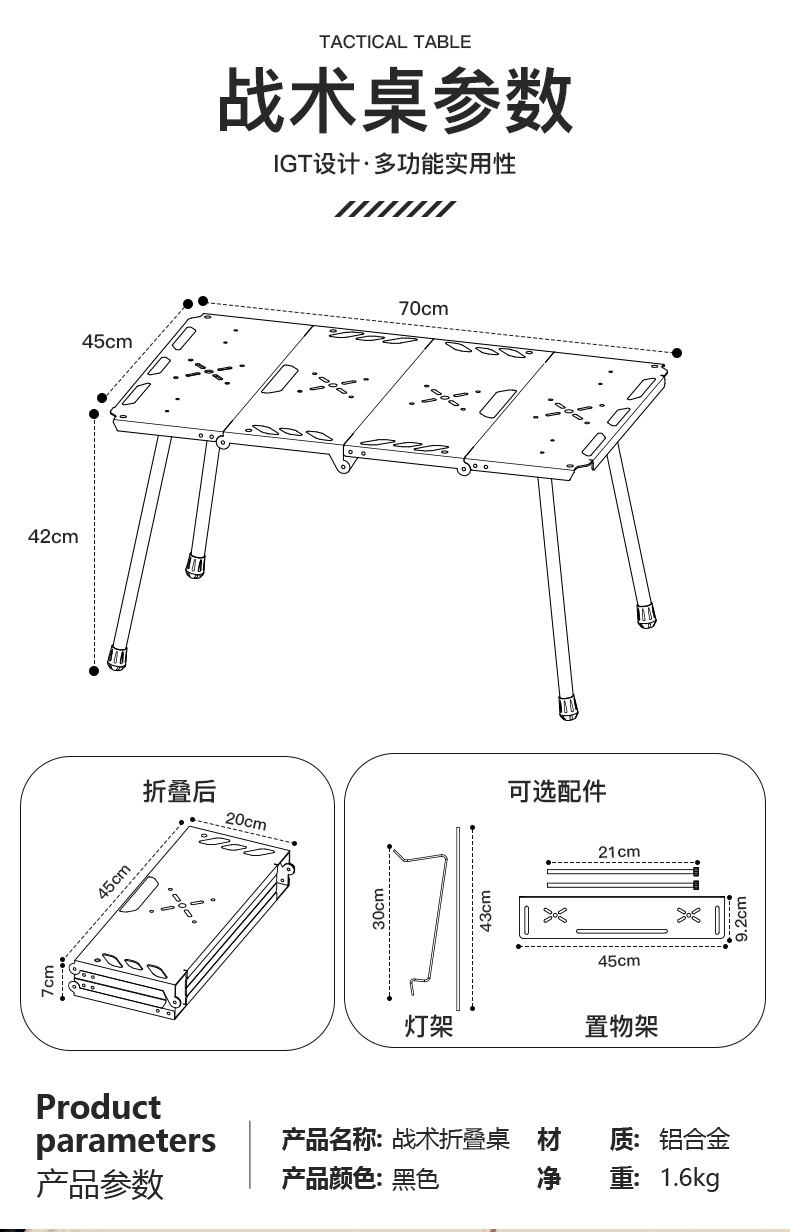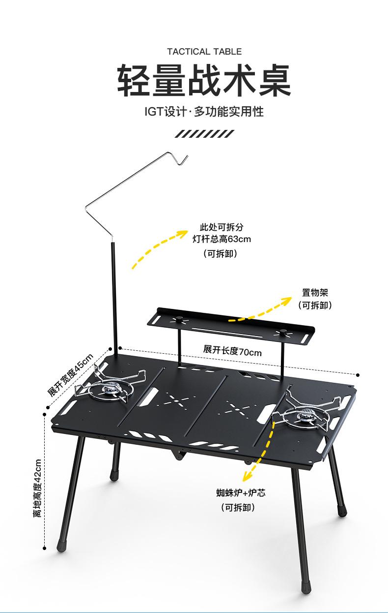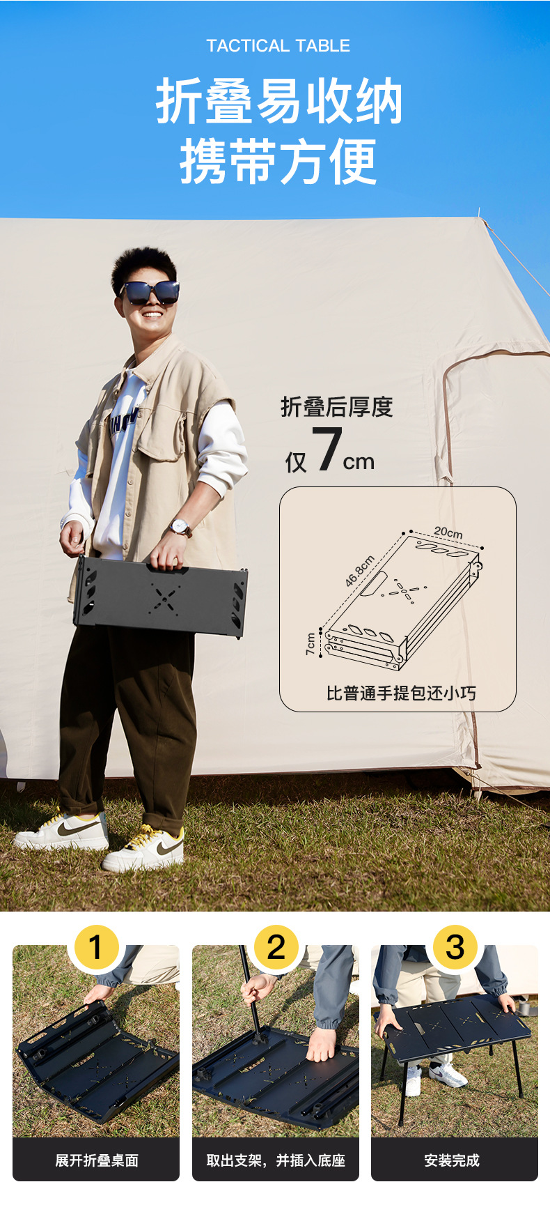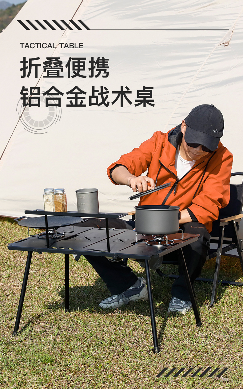 【户外露营折叠便携!铝合金战术桌】户外四折桌折叠桌子igt对折铝合金便携式露营超轻量黑化风战术桌。ry