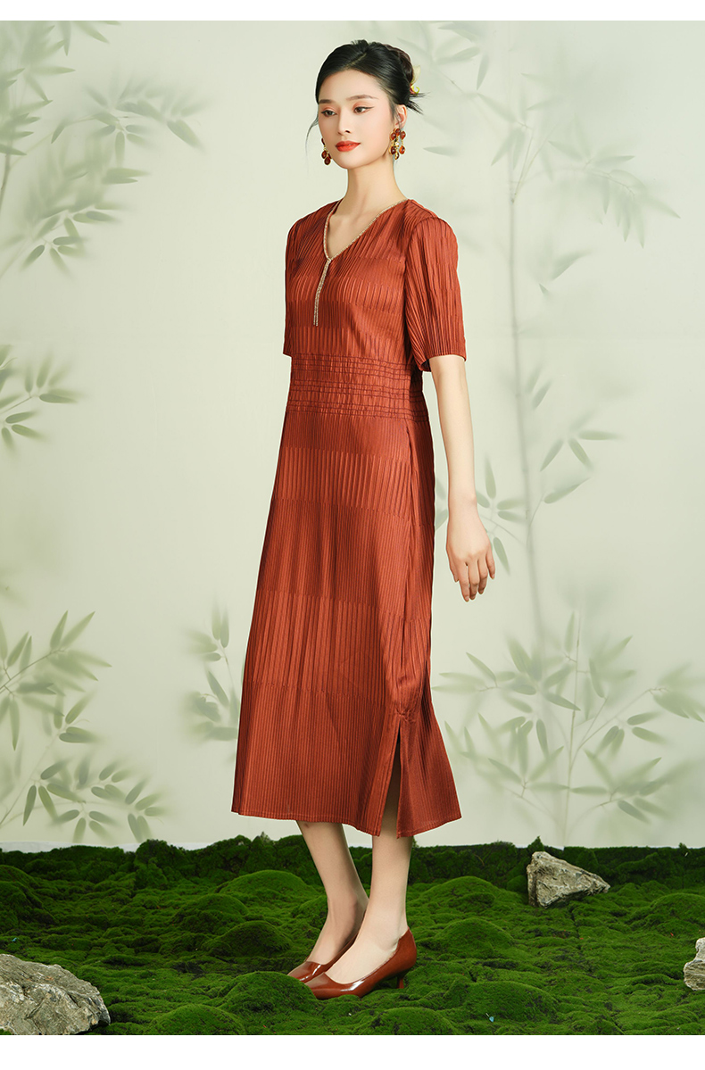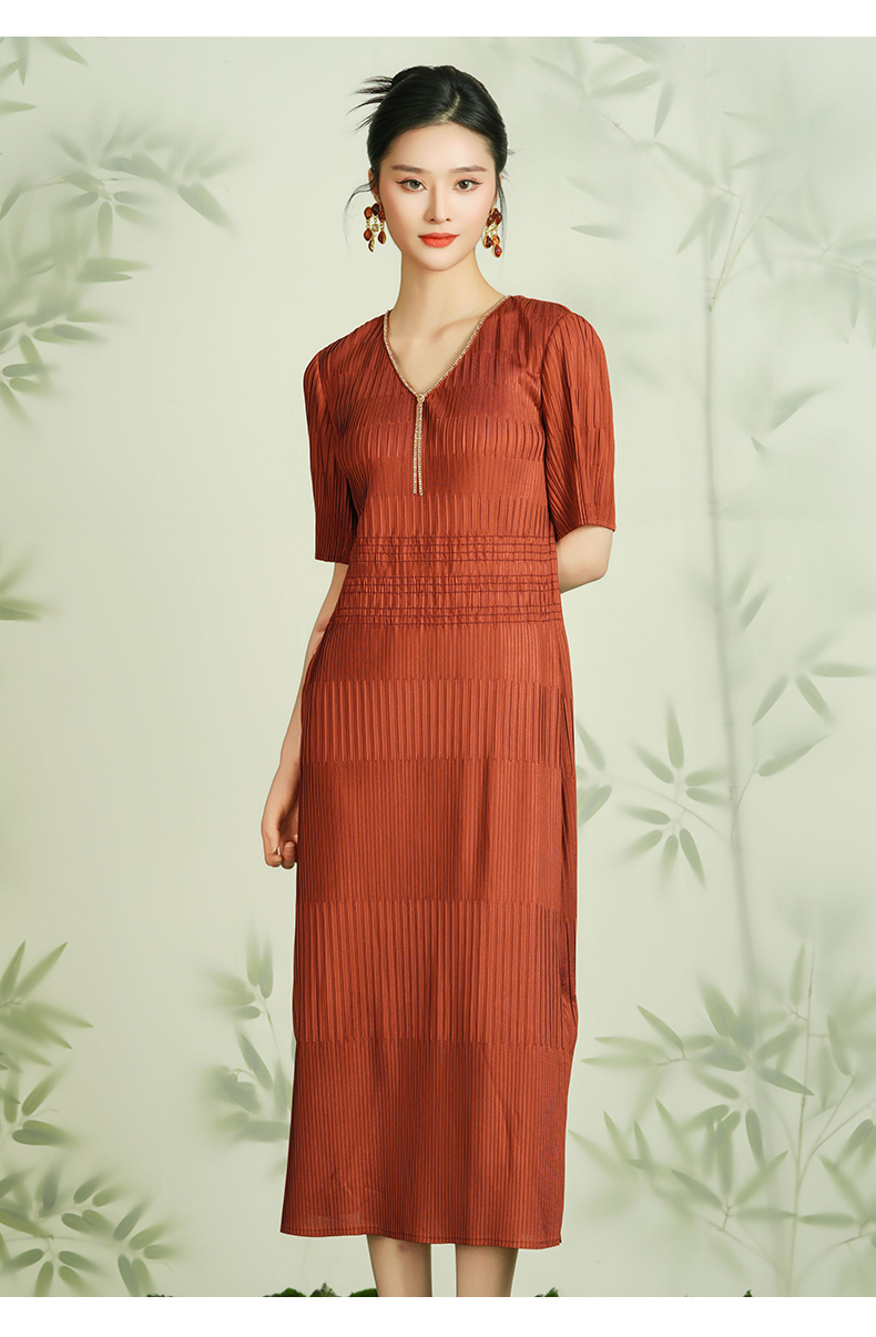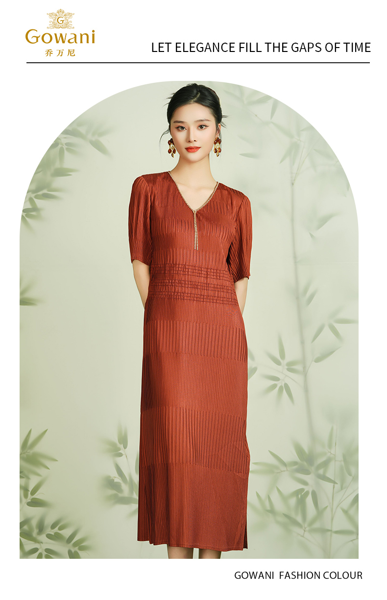 乔万尼新款连衣裙重工压褶设计收腰显瘦EM2E727