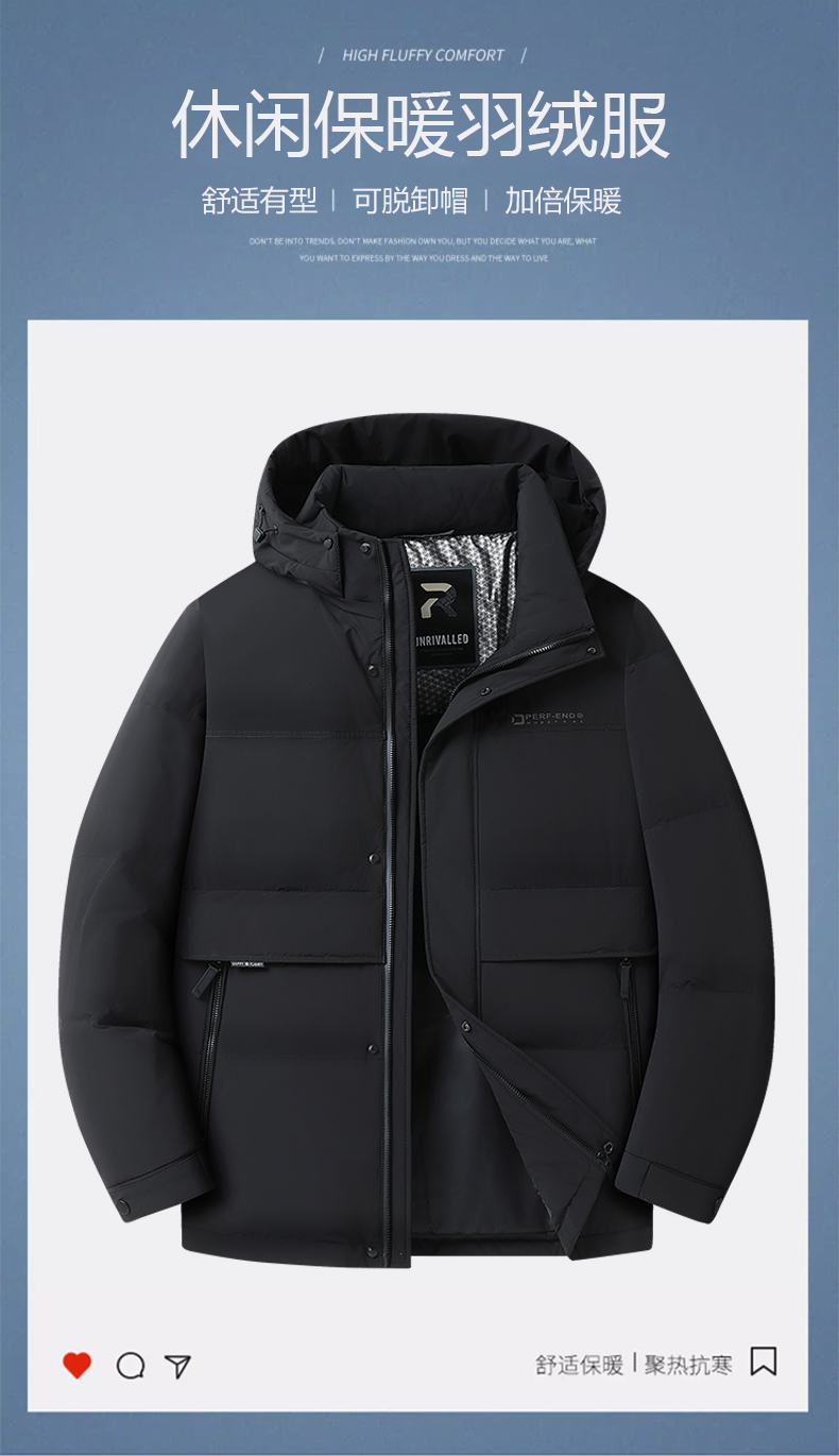 【可拆卸帽】【90白鸭绒】【新款DWY】大依优型大码羽绒服可拆卸帽连帽外套加肥加大上衣男士外套胖子