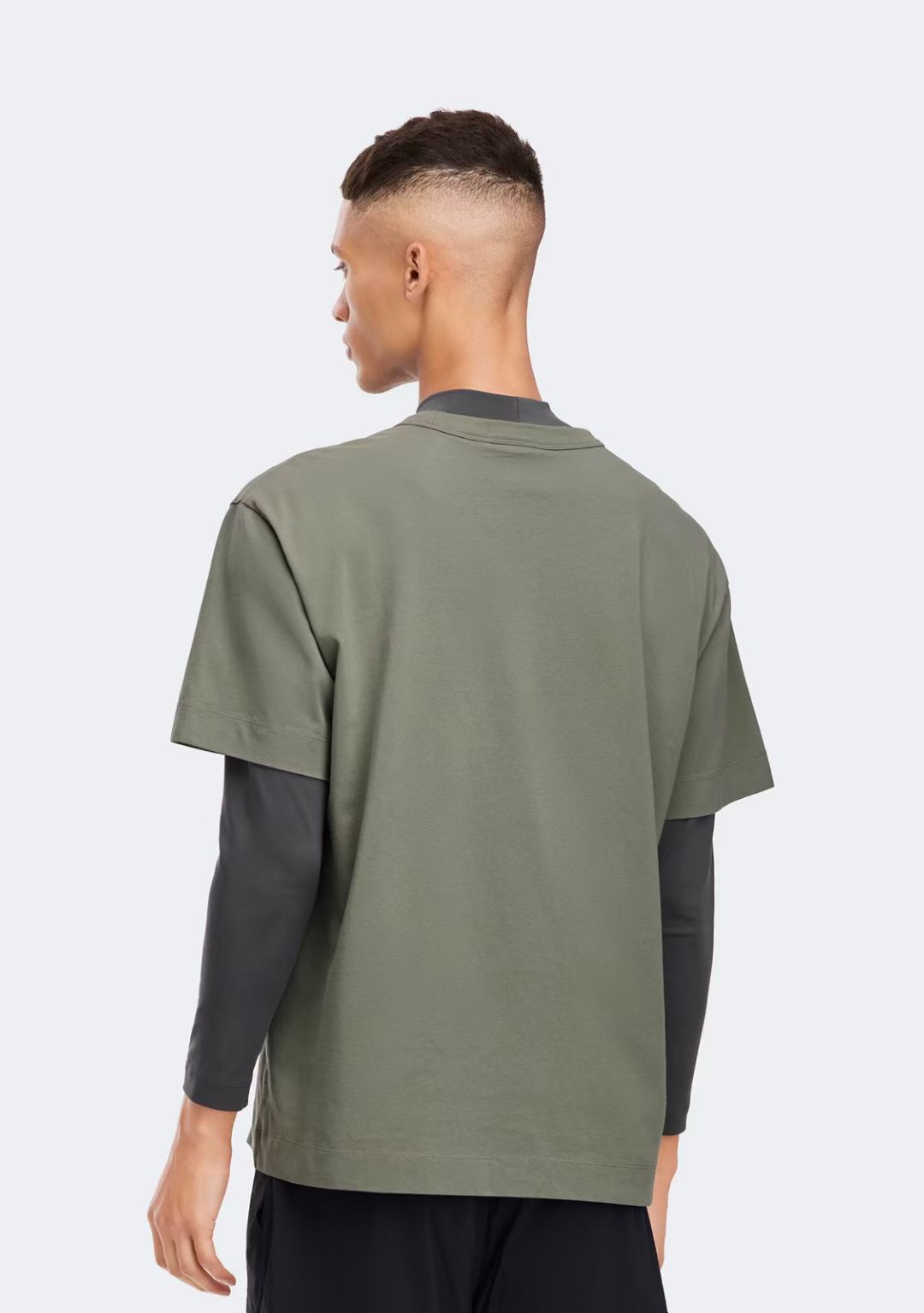 很有休闲潮流范。罗纹衣领,双针缝线