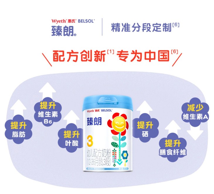 惠氏臻朗婴儿配方牛奶粉3段 800g