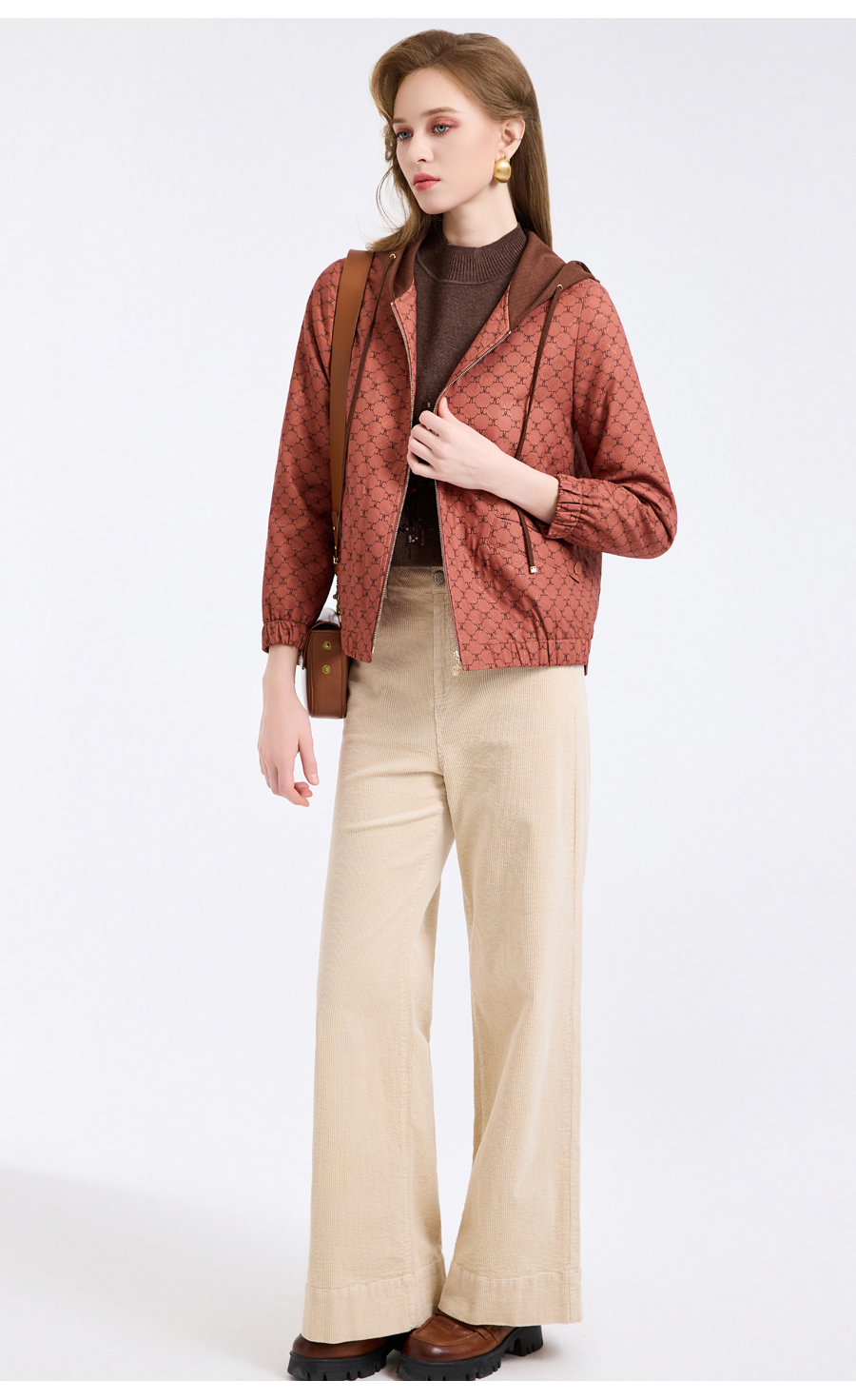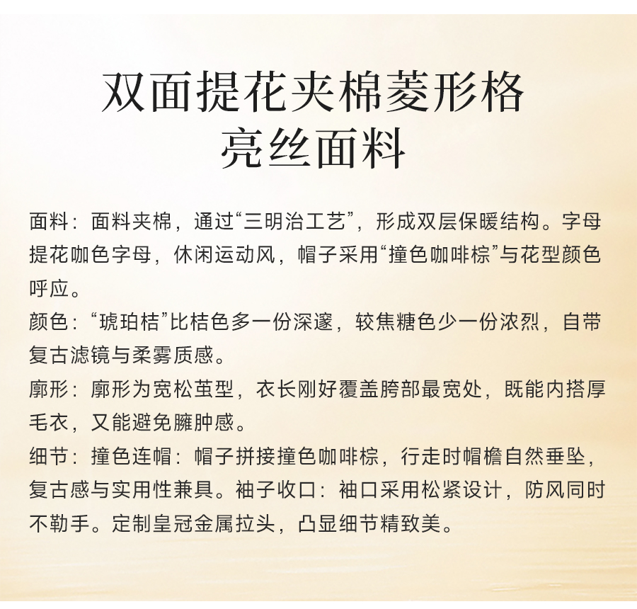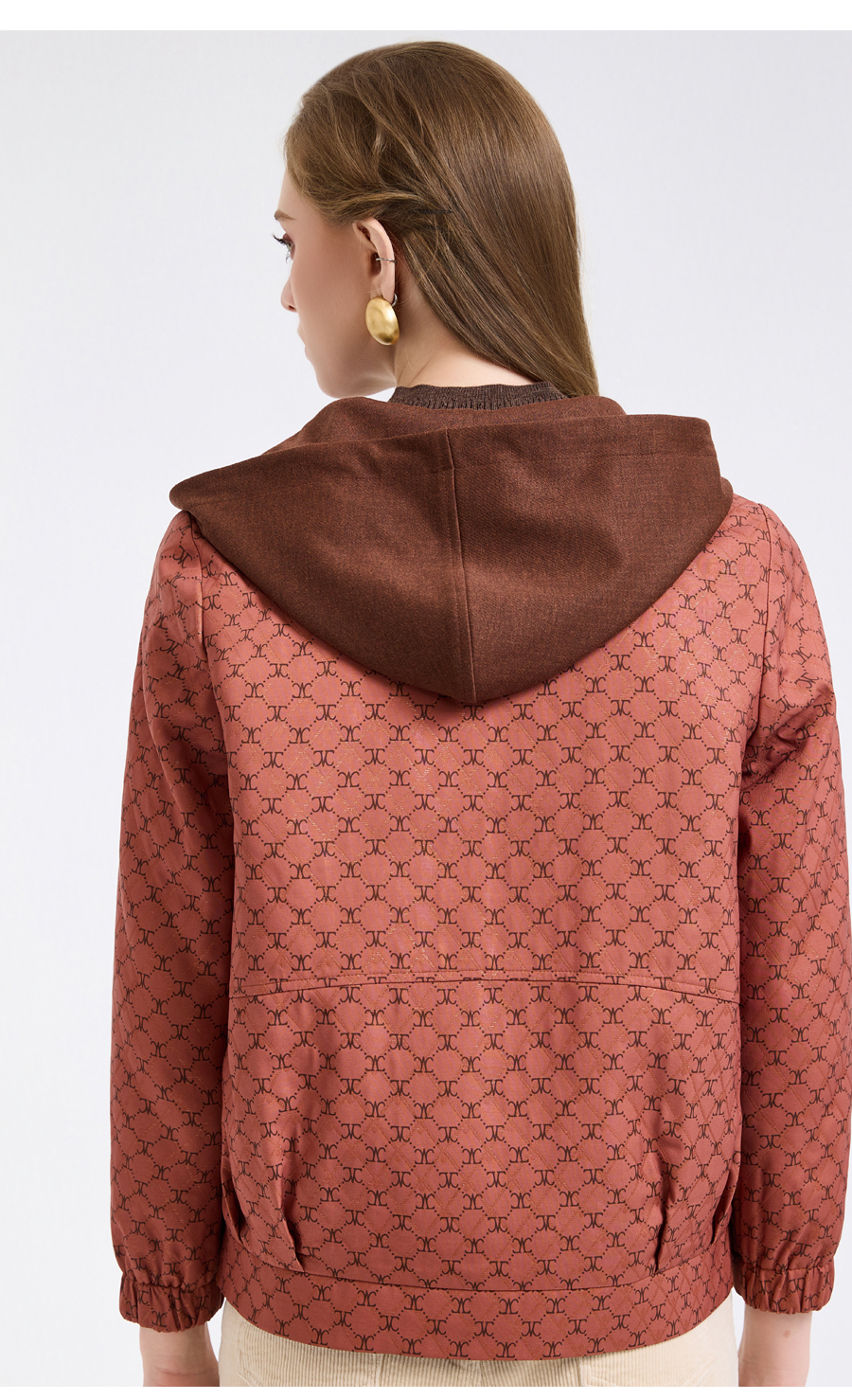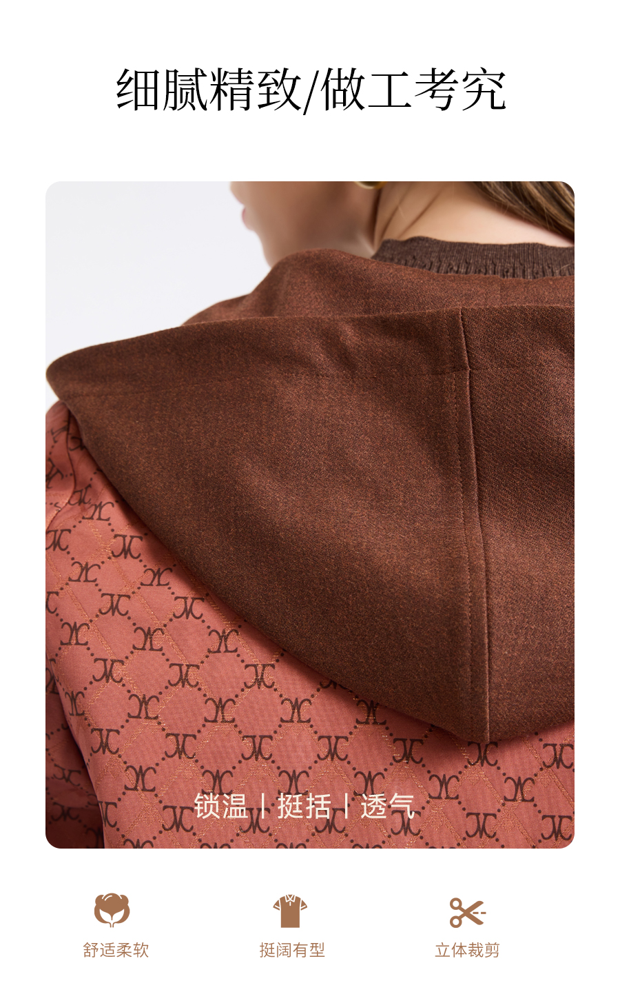 乔万尼休闲连帽撞色设计夹棉宽松字母提花短外套棉服ED4K735
