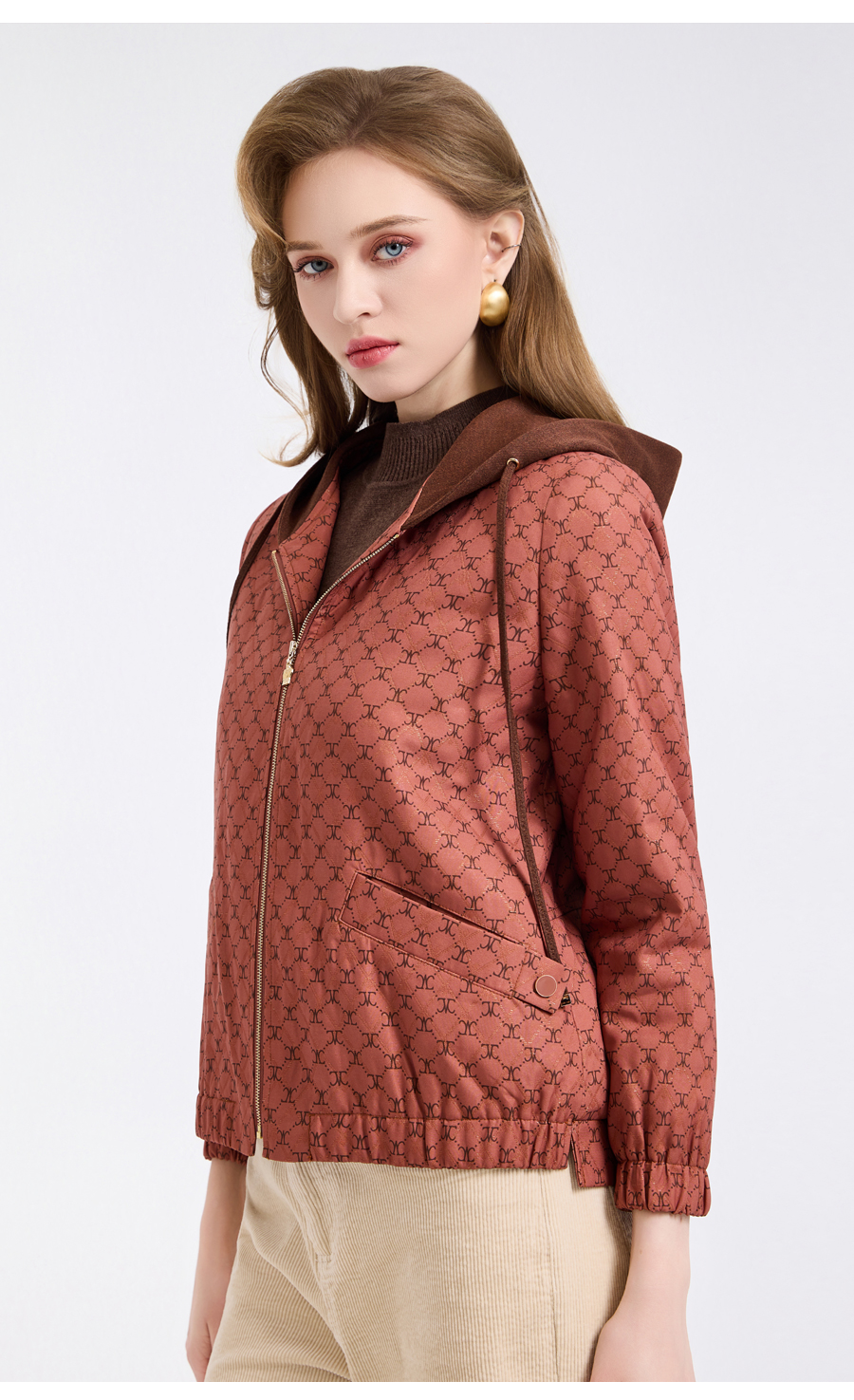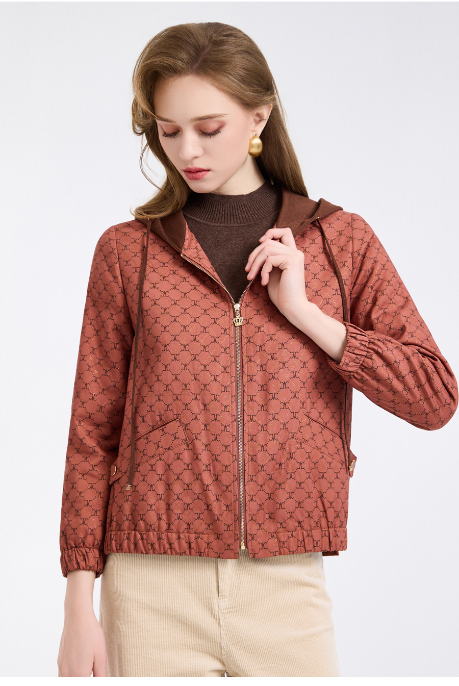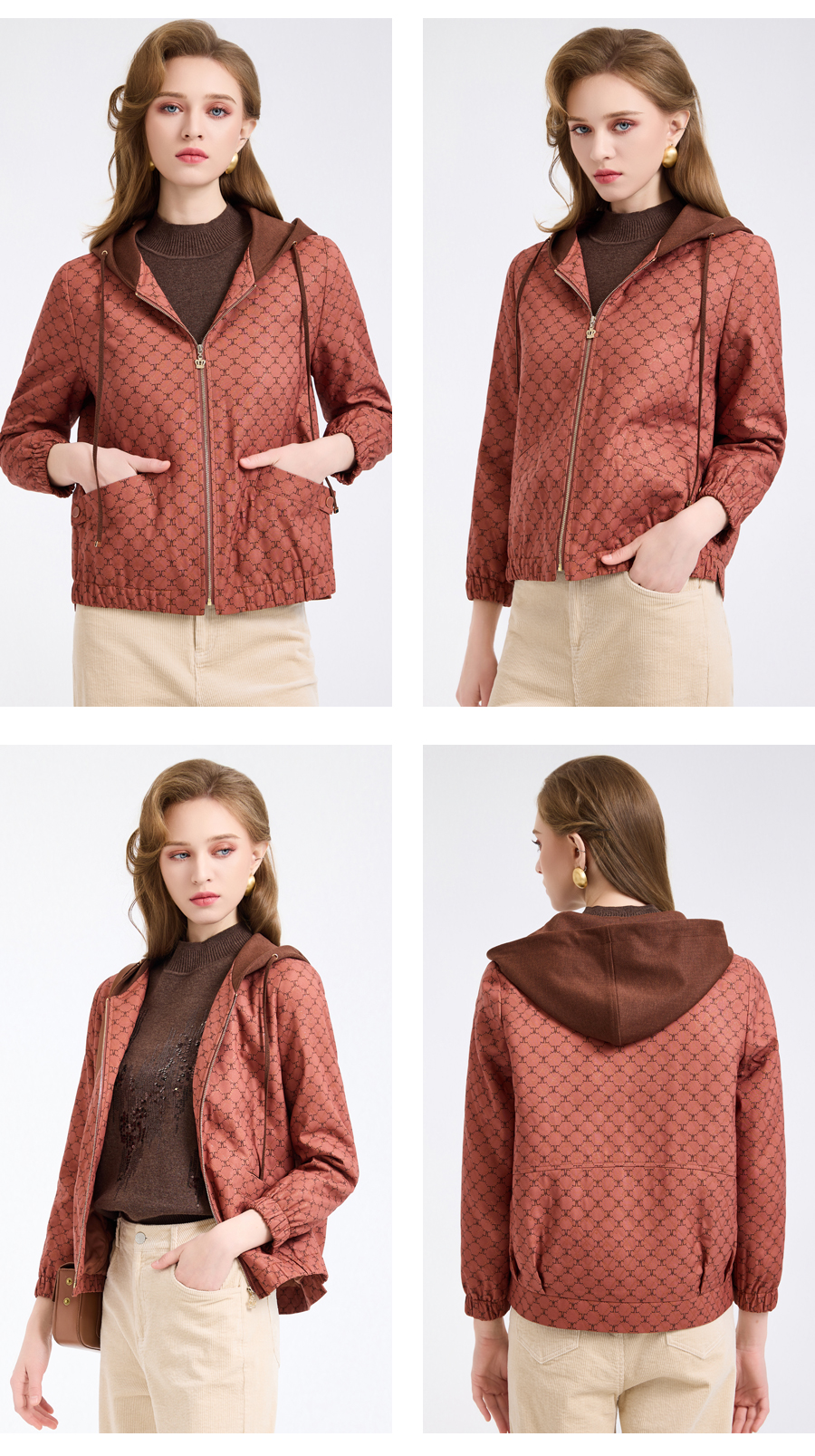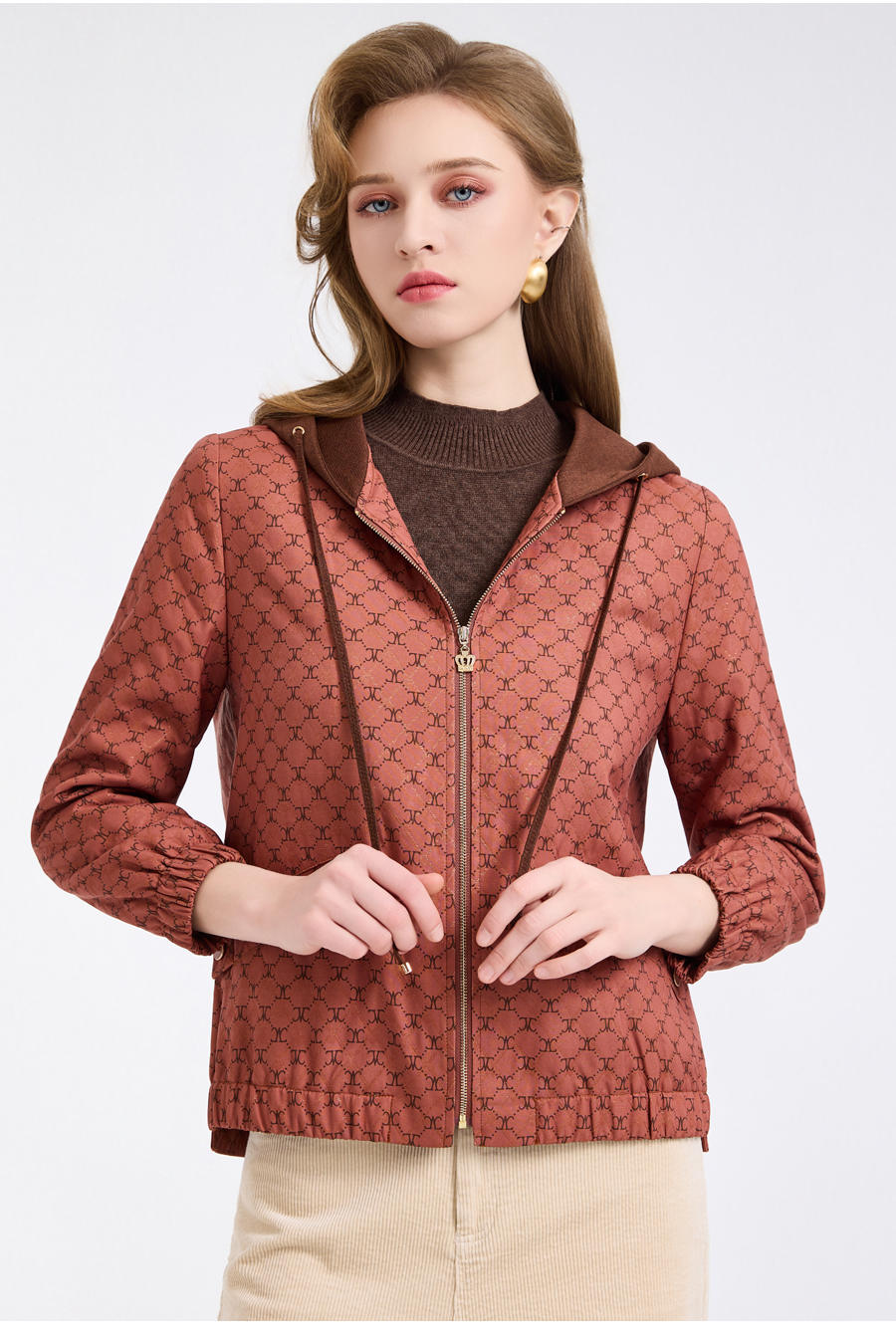 乔万尼休闲连帽撞色设计夹棉宽松字母提花短外套棉服ED4K735