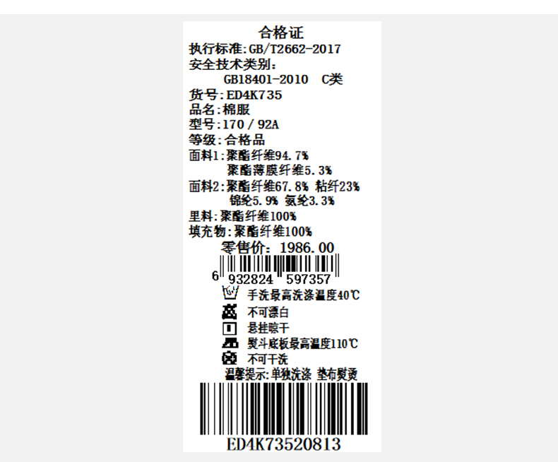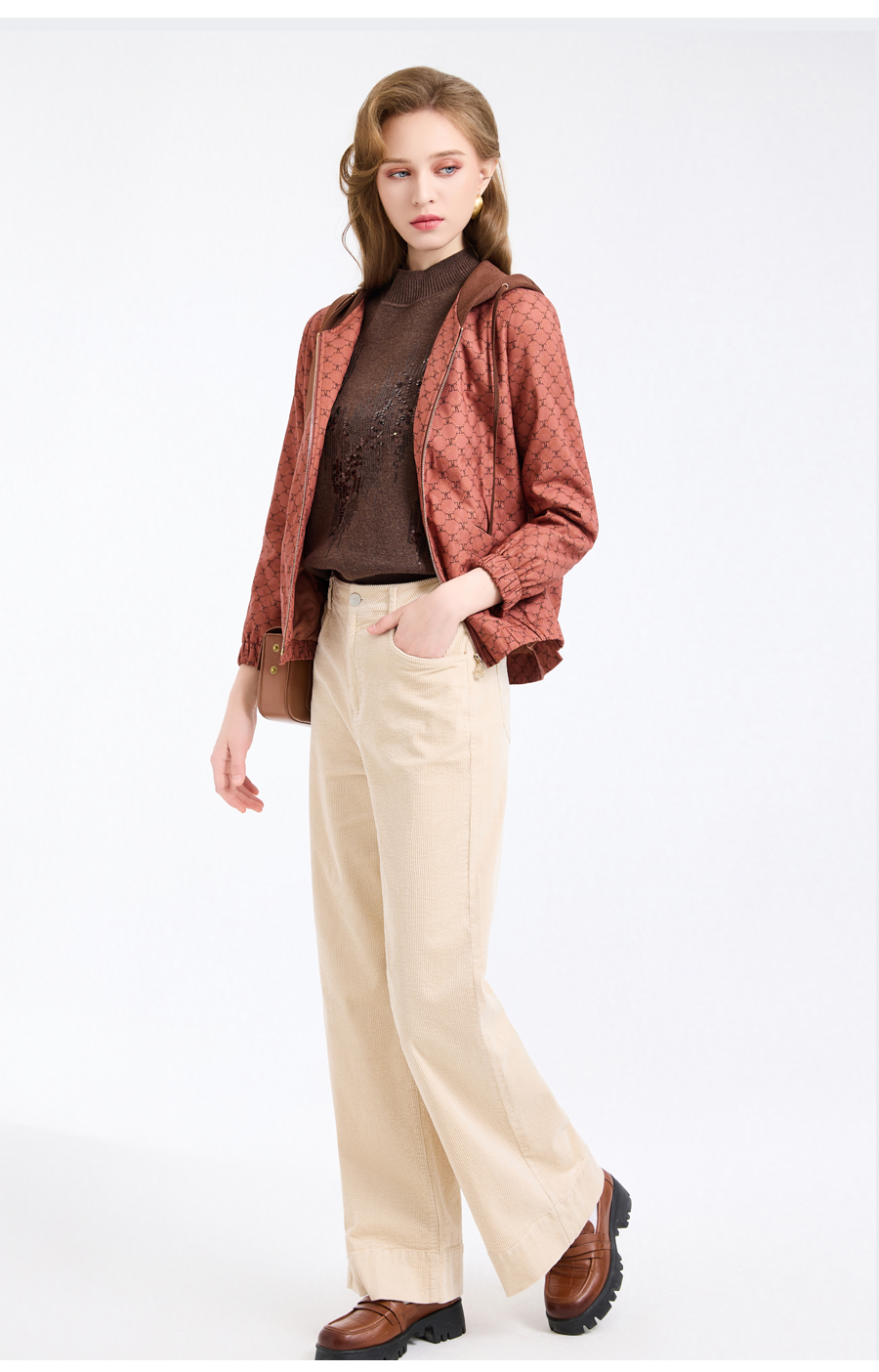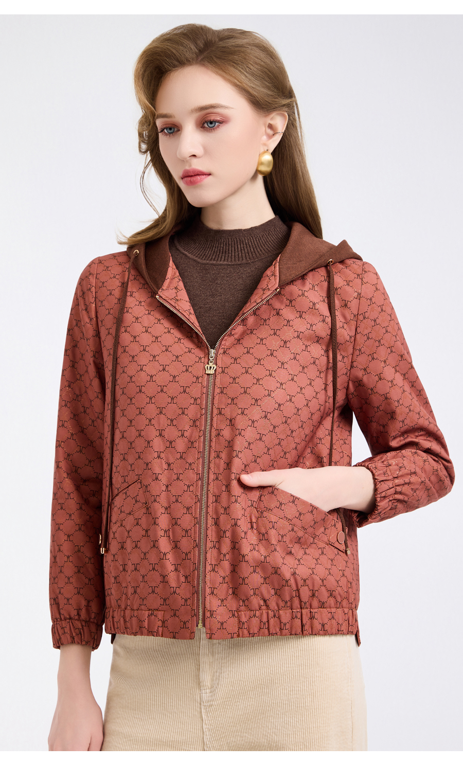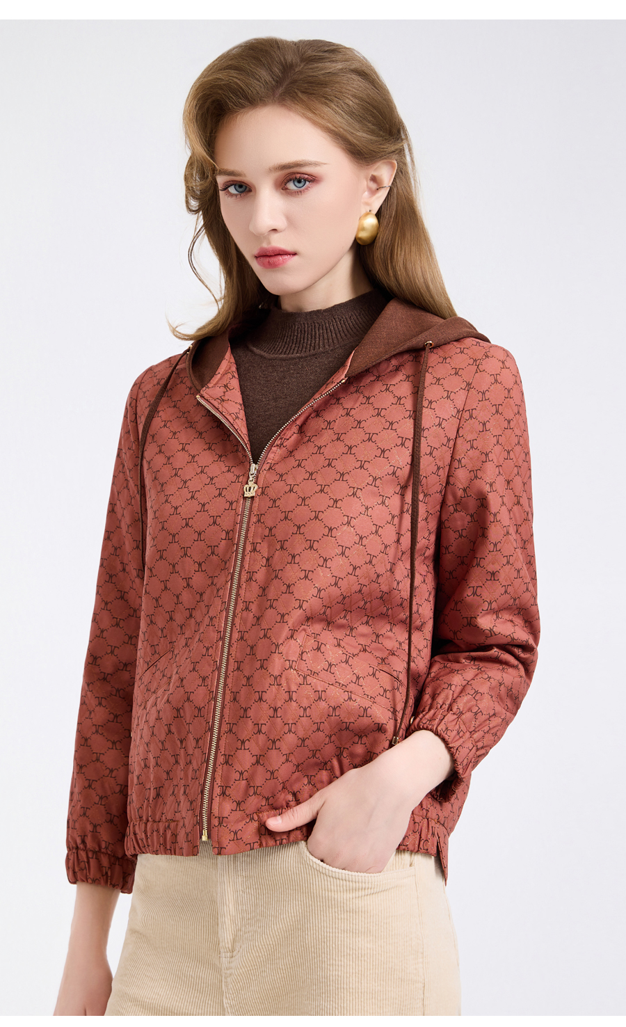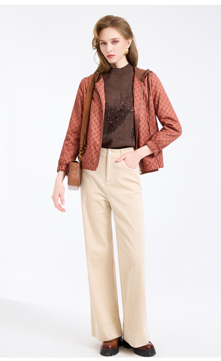 乔万尼休闲连帽撞色设计夹棉宽松字母提花短外套棉服ED4K735