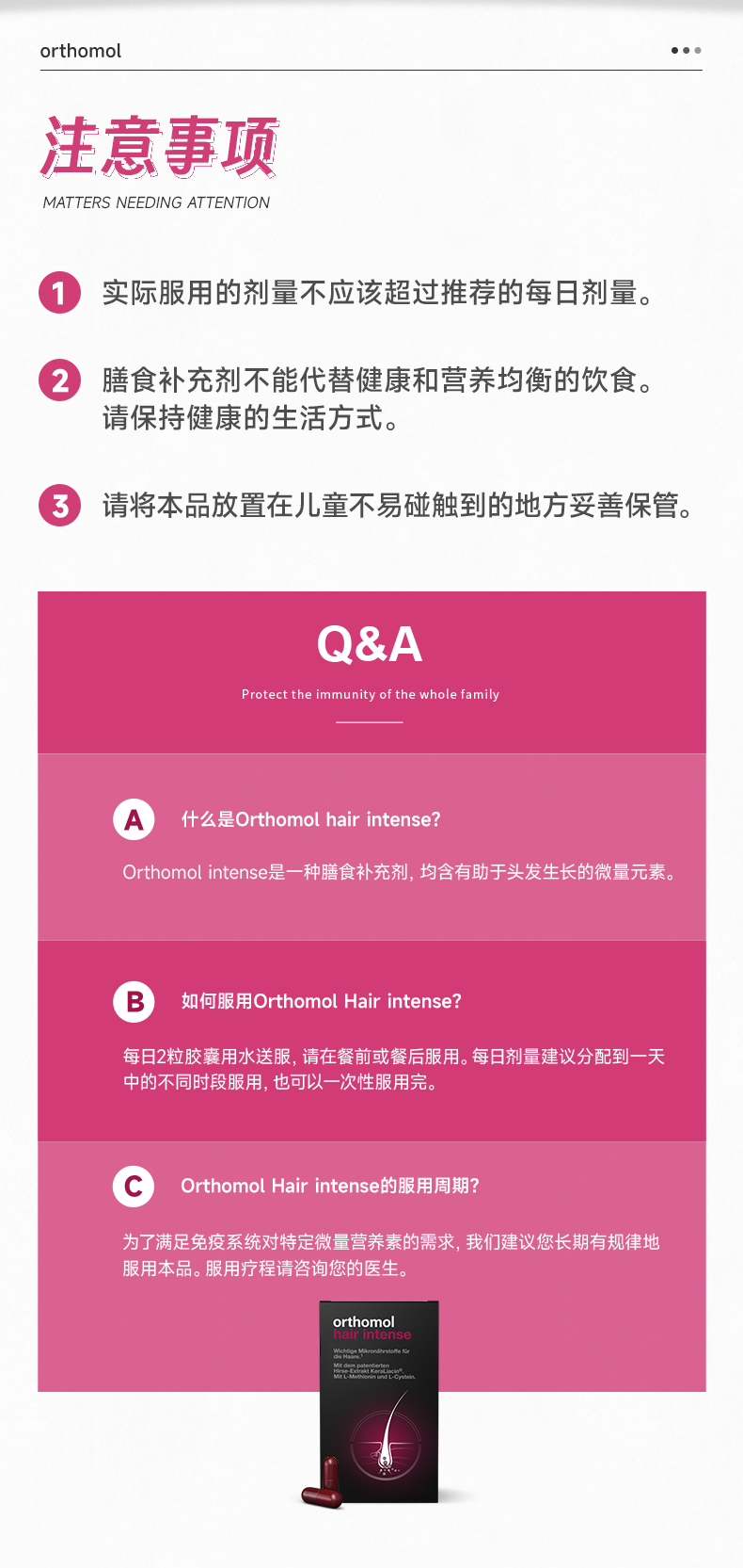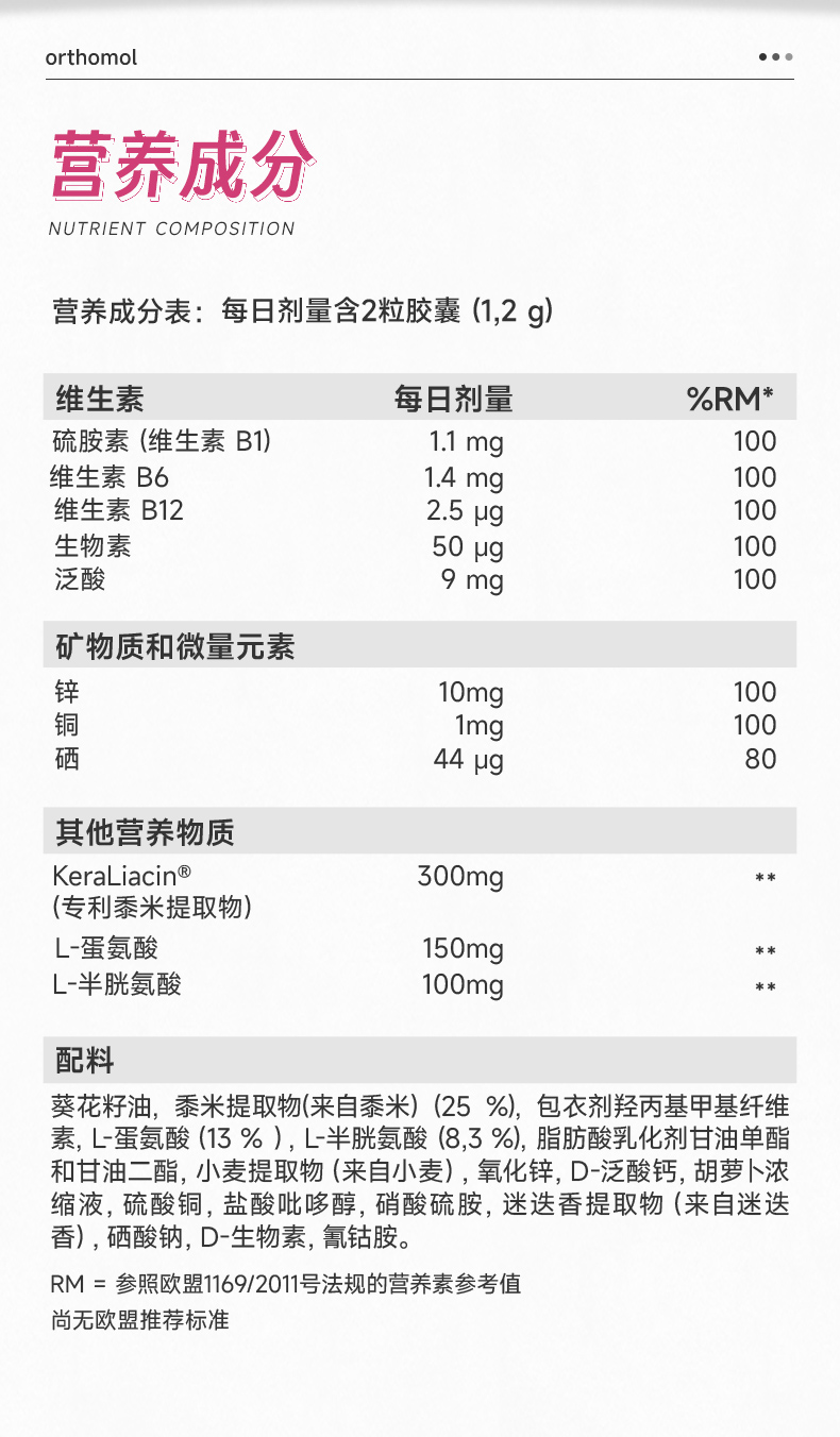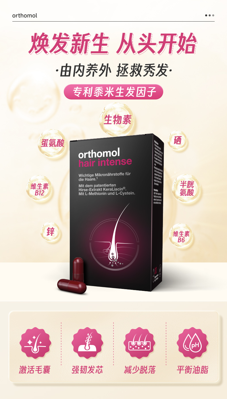 德国进口奥适宝orthomol护发养发头发胱氨酸维生素b族b6b7生物素营养【保税仓放货】