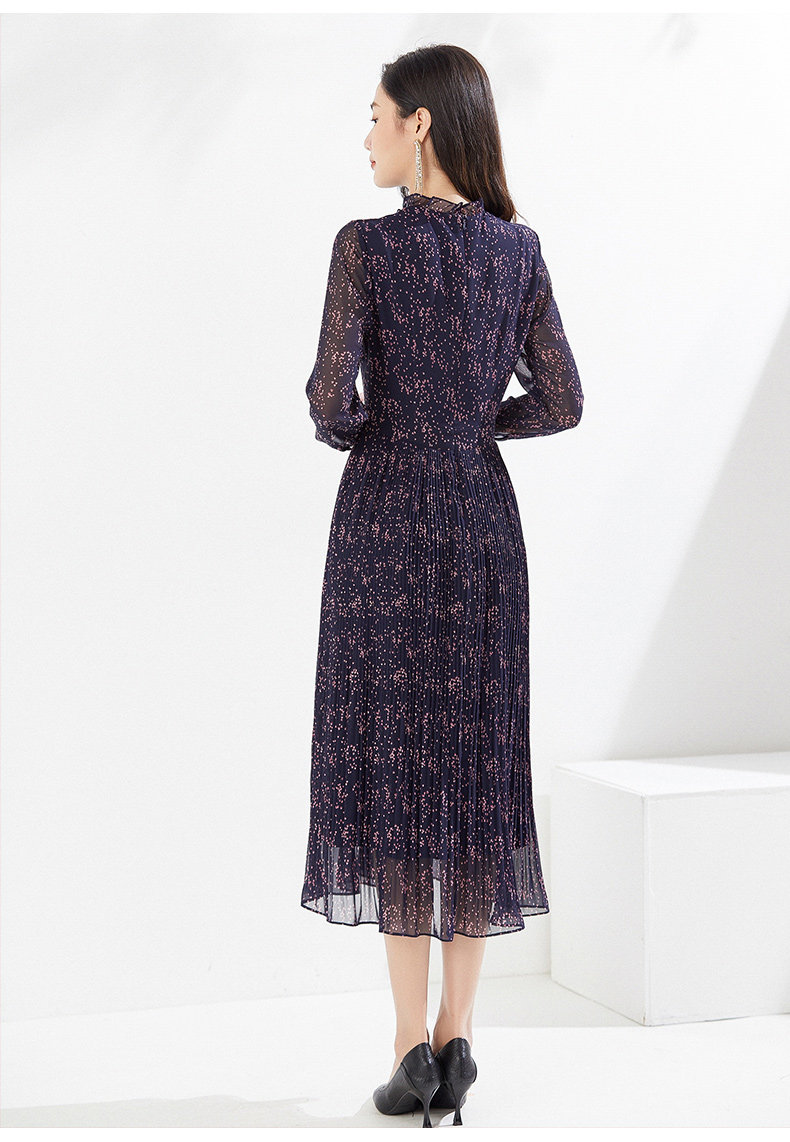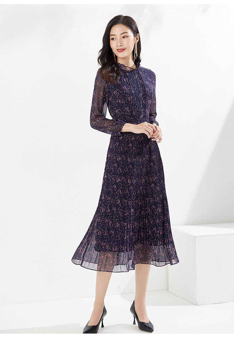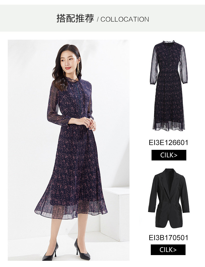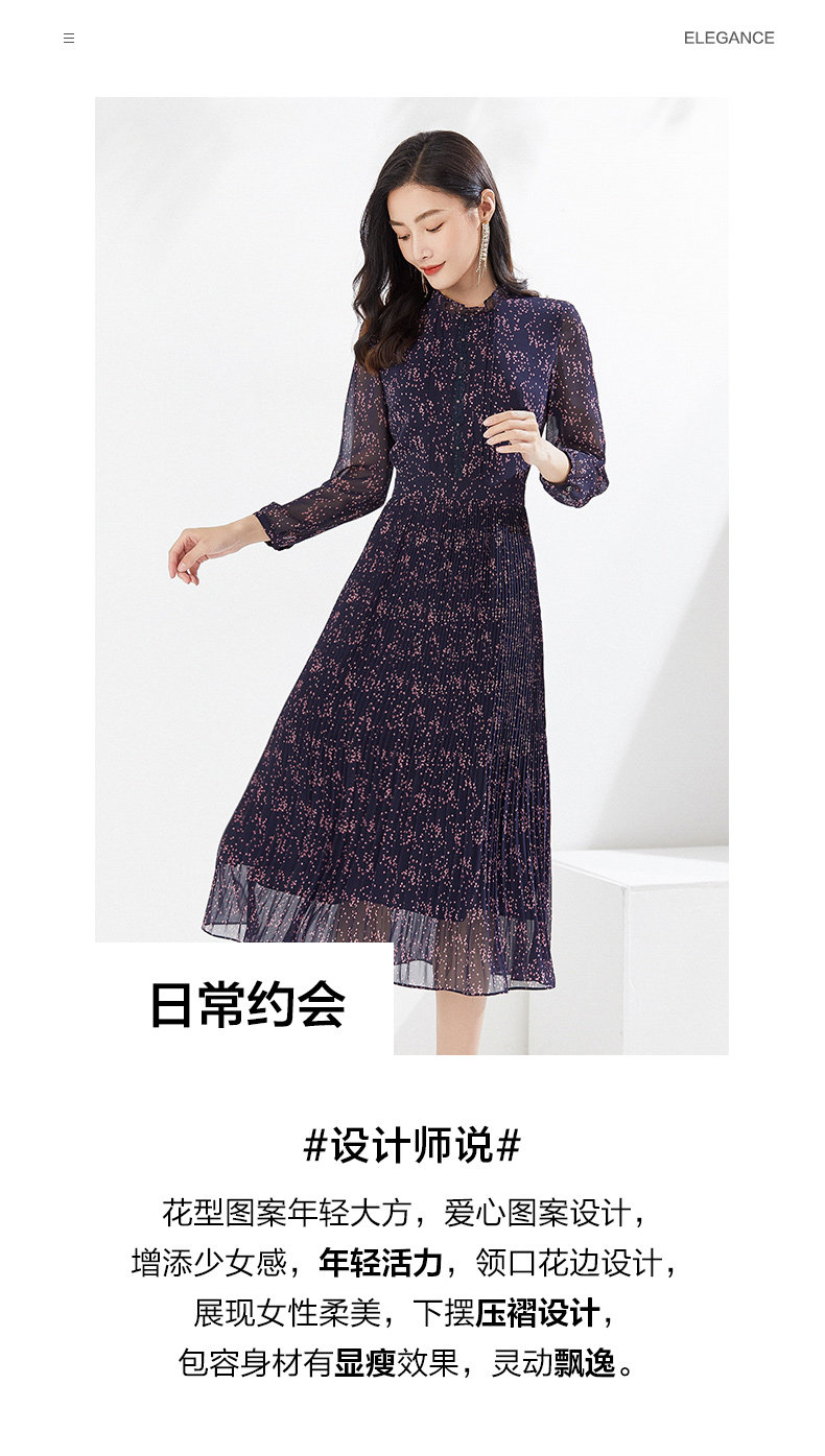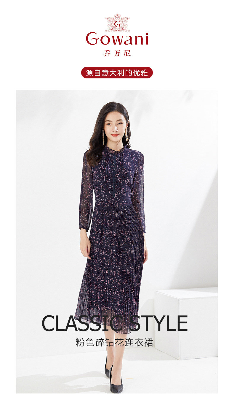 乔万尼早春新款连衣裙气质百褶显瘦长裙EI3E126